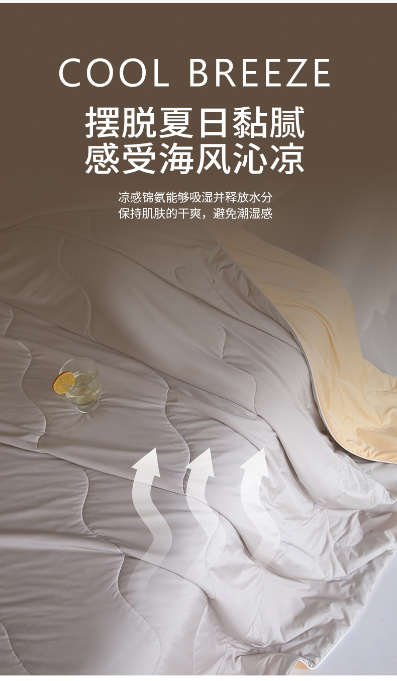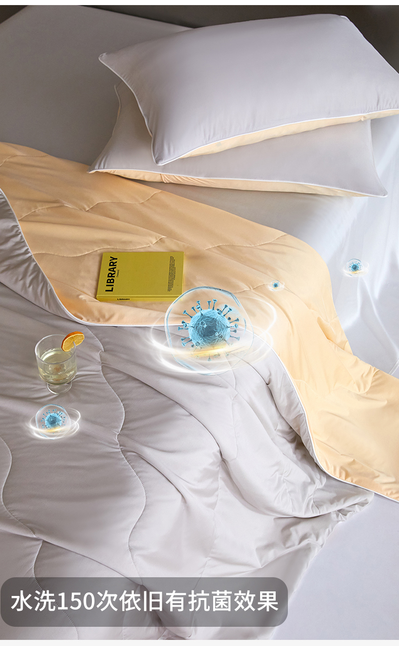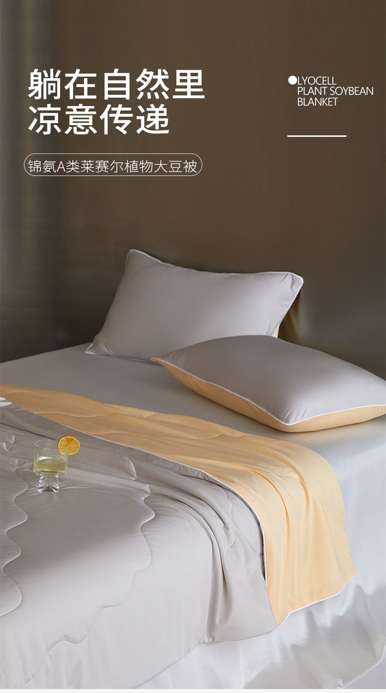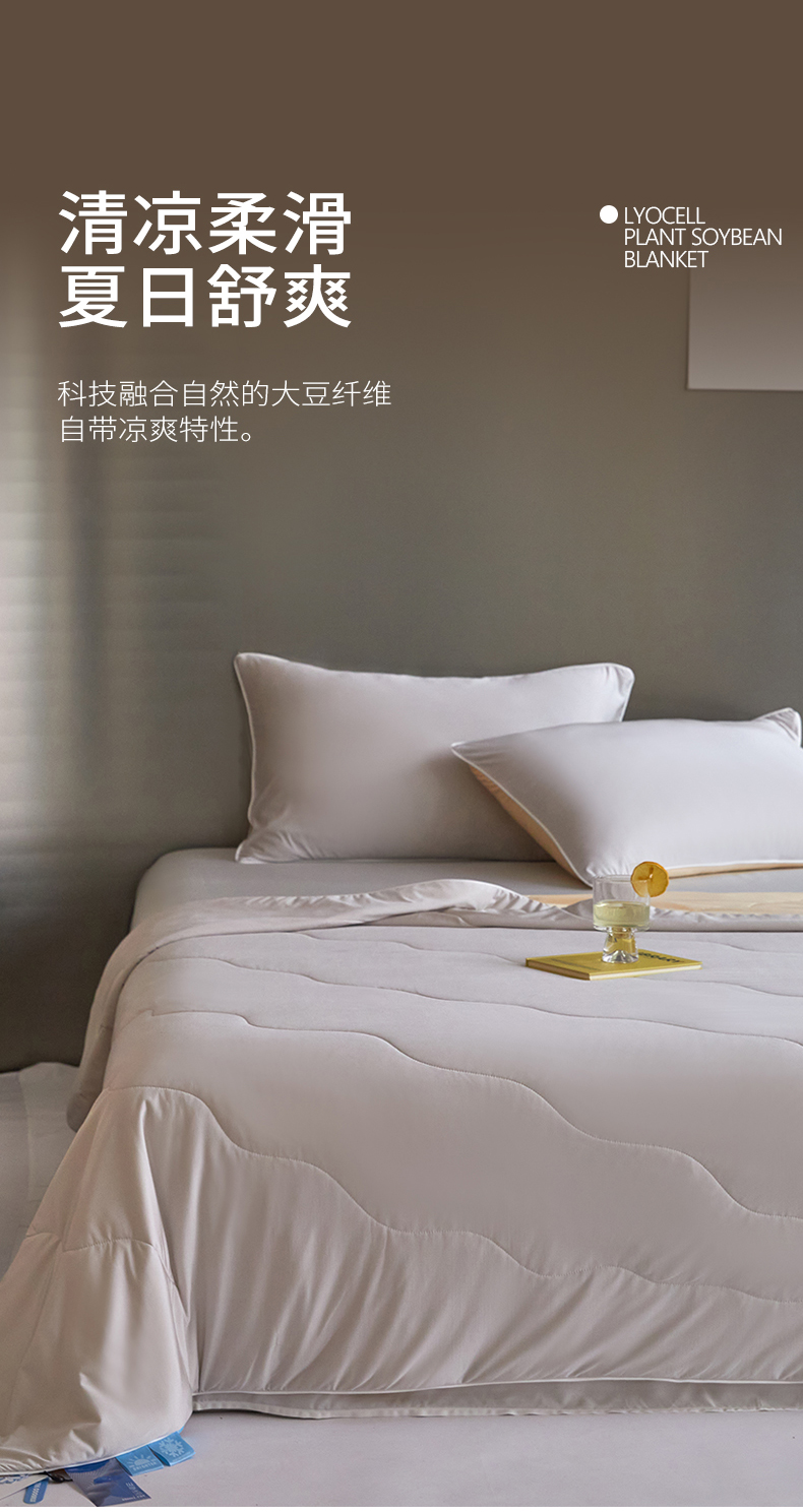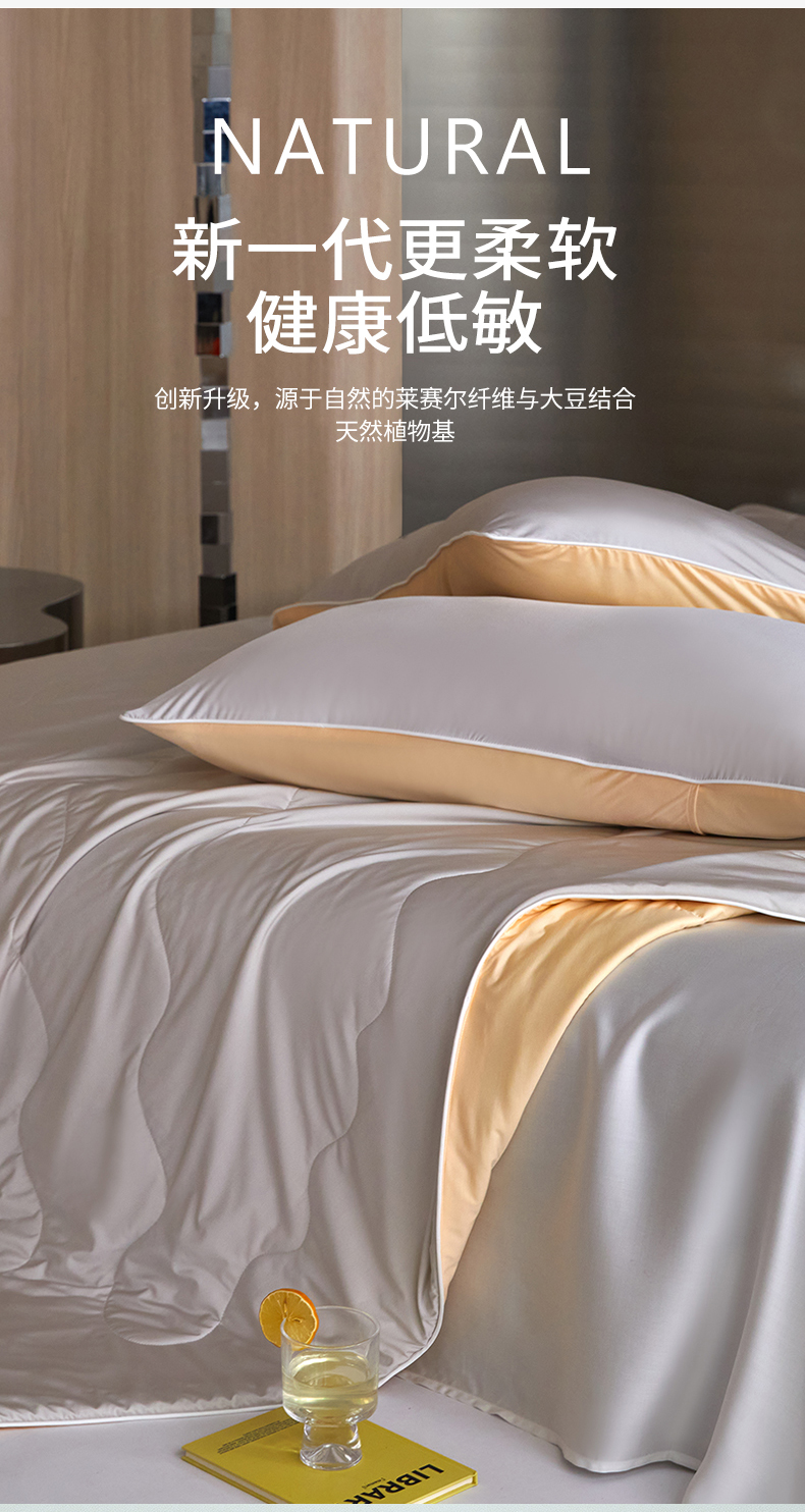 商品名称:头等舱 2025新款锦氨(165克)水光亮面锦A类55莱赛尔植物大豆7A抗菌夏凉被夏被-配礼盒(空镜图) 银灰+暖黄