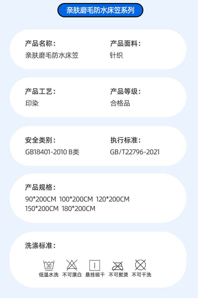 商品名称:乐家欣 乐家欣 2025新款亲肤磨毛针织防水床笠 珍珠白