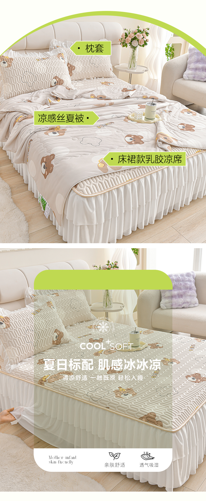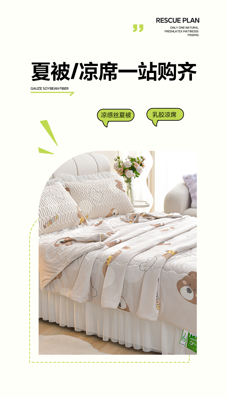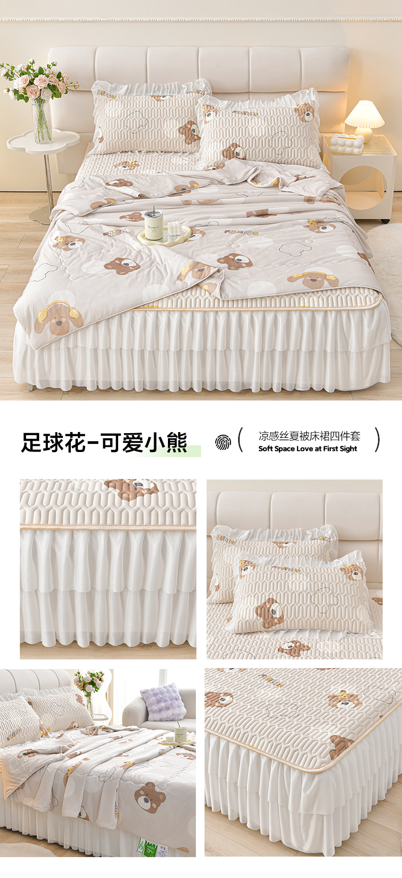 当前位置: 91家纺网 > 商品网购 > 床上用品 > 凉席 > 乳胶凉席 > 民新家纺 2025新款凉感丝床裙款乳胶凉席夏被四件套凉席三件套 足球花-可爱小熊