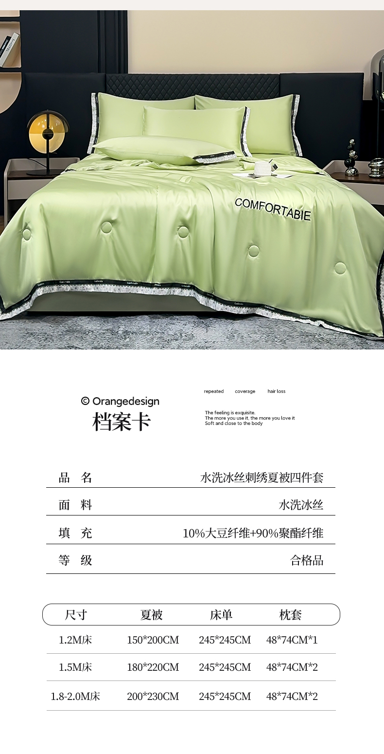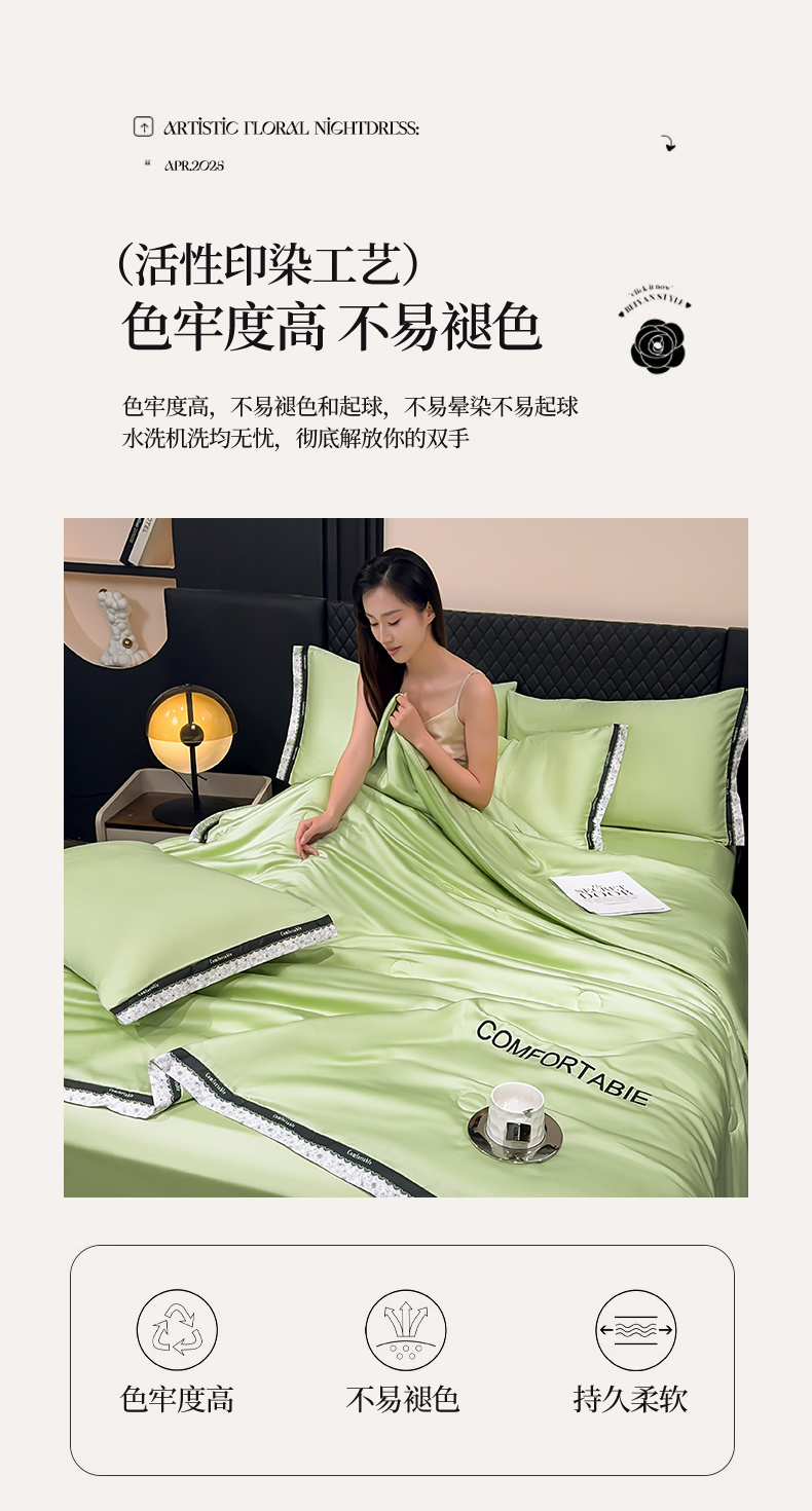 商品名称:(总)雨洋家纺 2025新款清凉舒适水洗冰丝刺绣夏被四件套-迷境