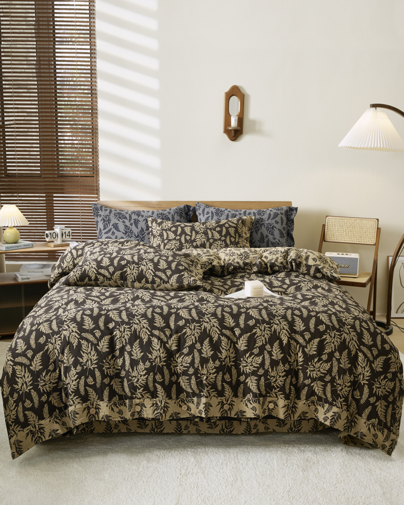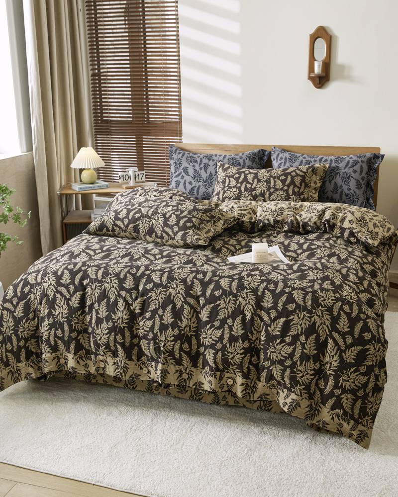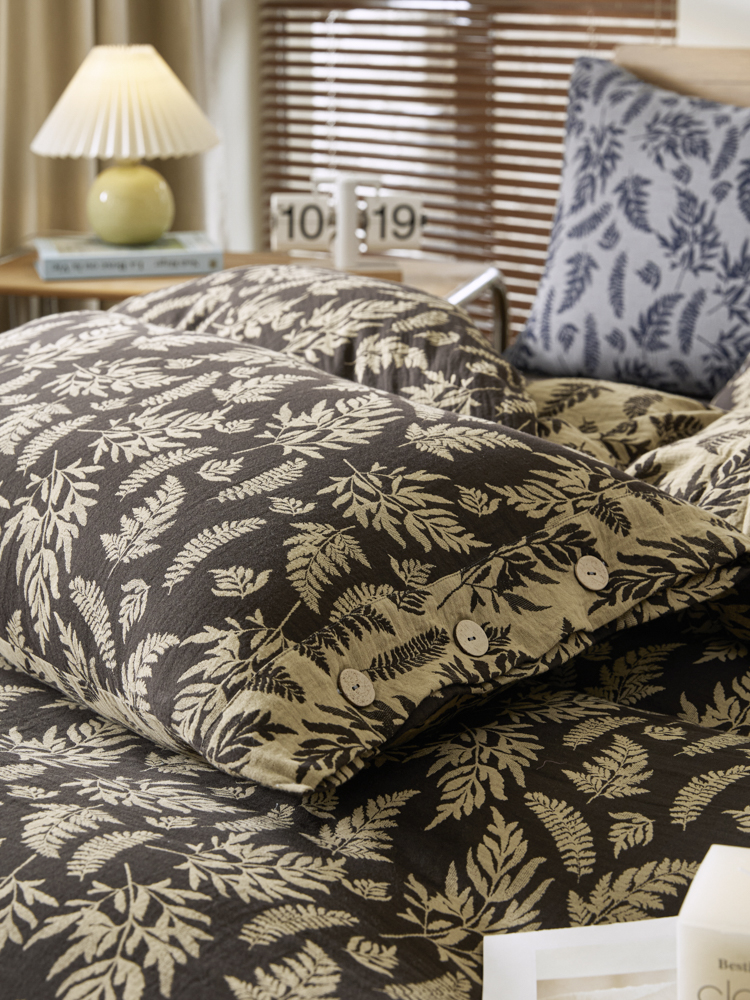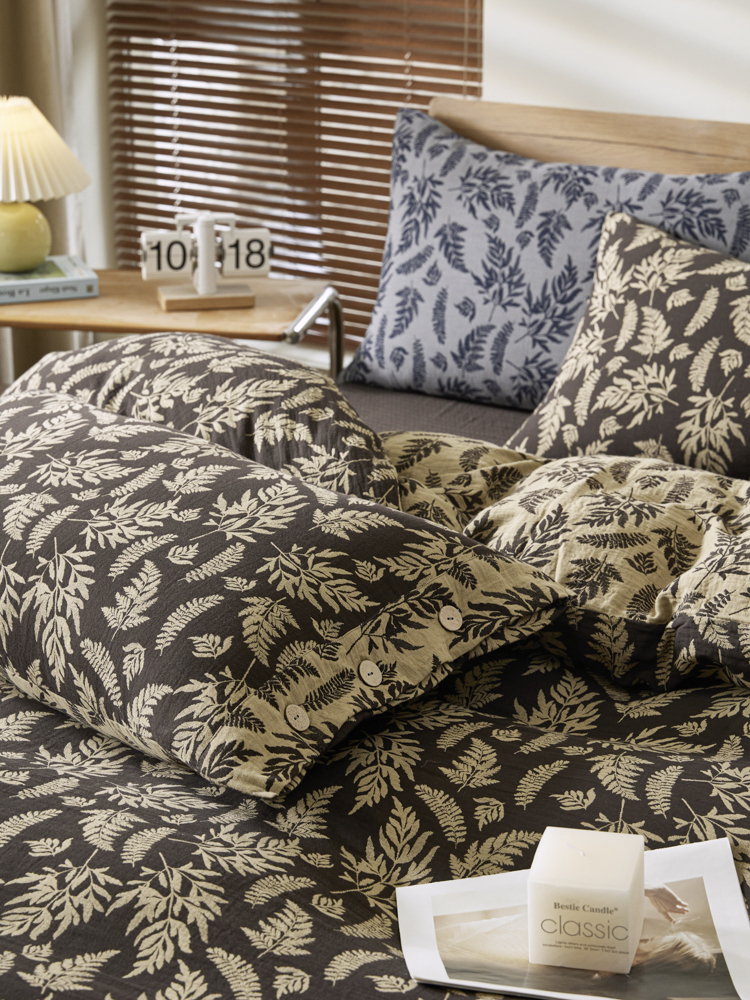 2025新款全棉色织双层纱纽扣款四件套 扶苏-深咖