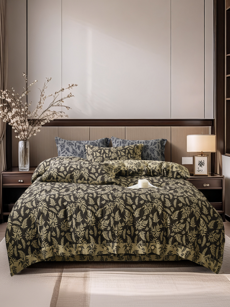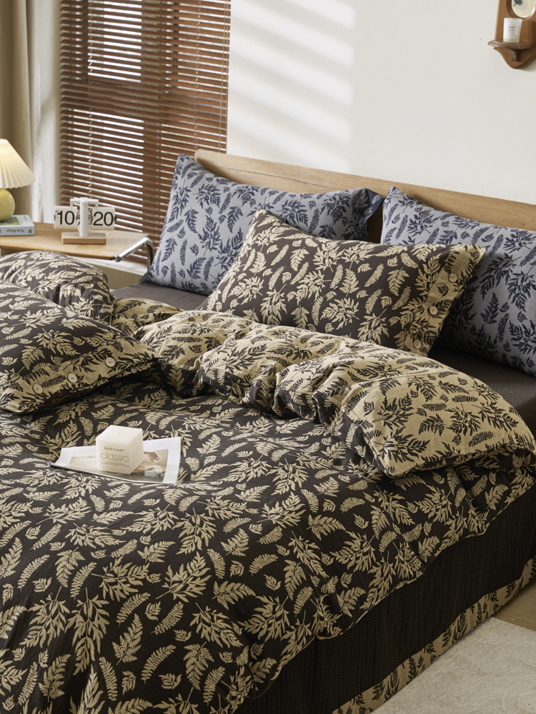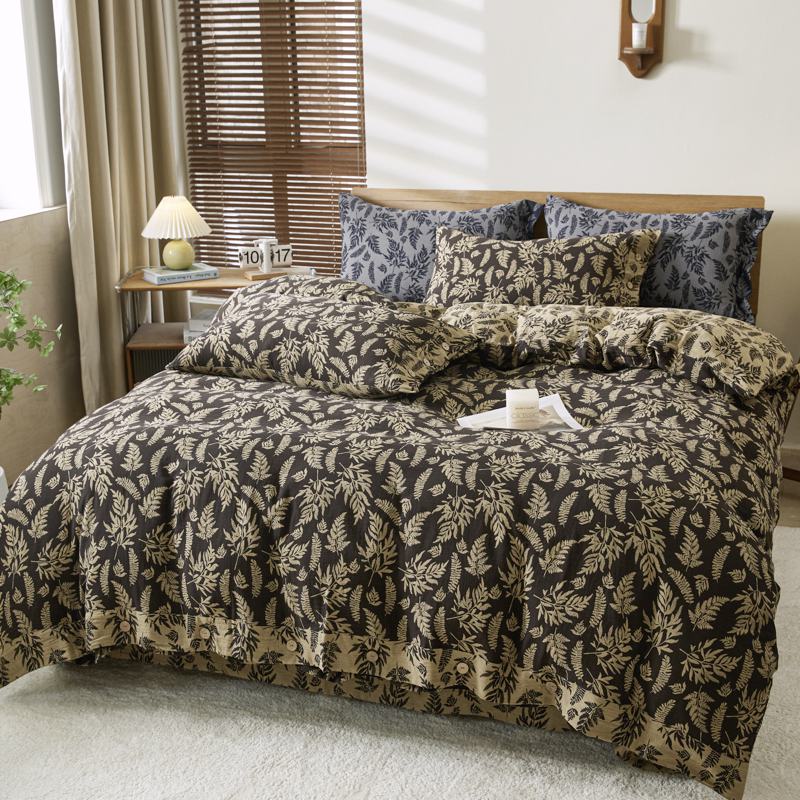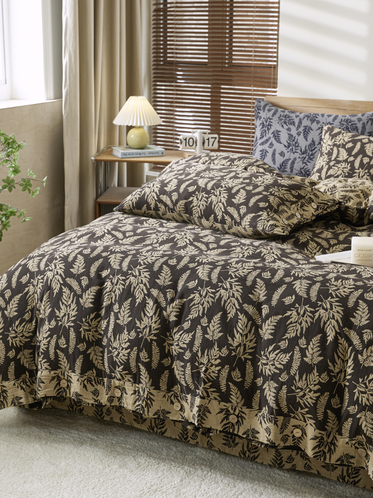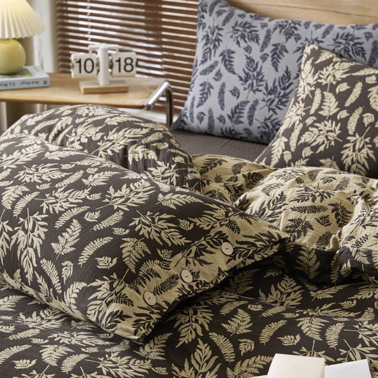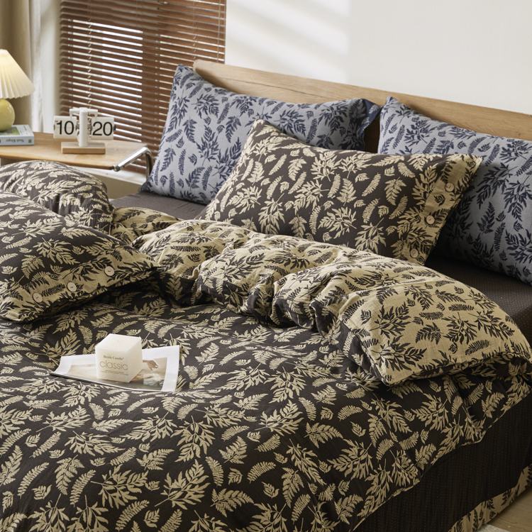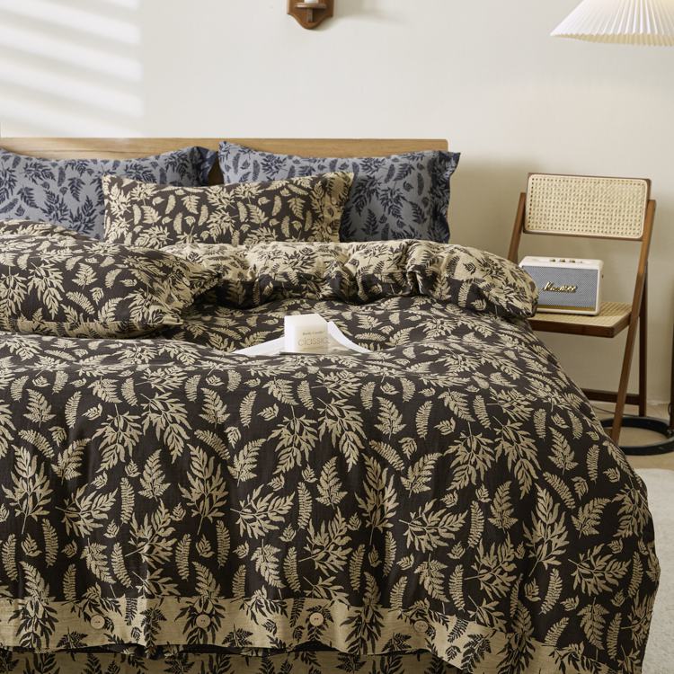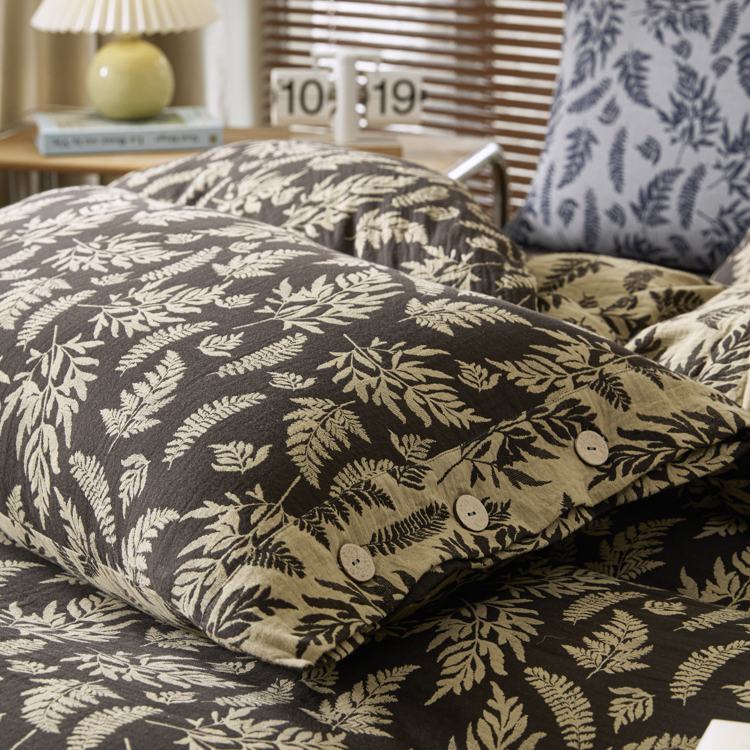 商品名称:2025新款全棉色织双层纱纽扣款四件套 扶苏-深咖