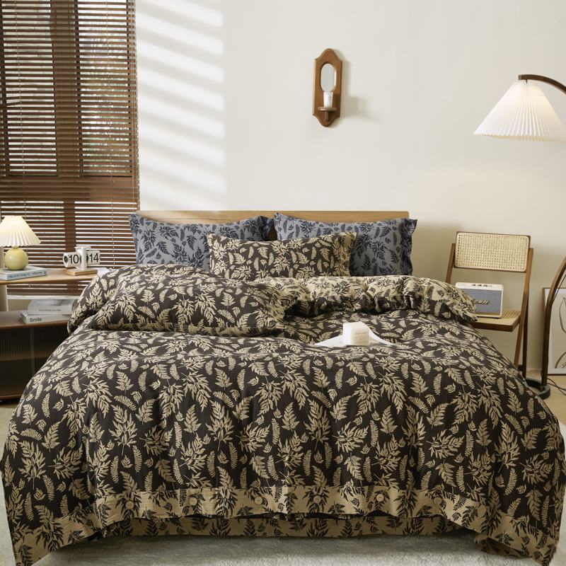 (总)鲁爱家纺供货 2025新款全棉色织提花简易款四件套(纯跑量),醉云间-咖,醉云间-绿,醉云间-兰,鸟语花香-豆沙,鸟语花香-浅咖,兰亭序-咖