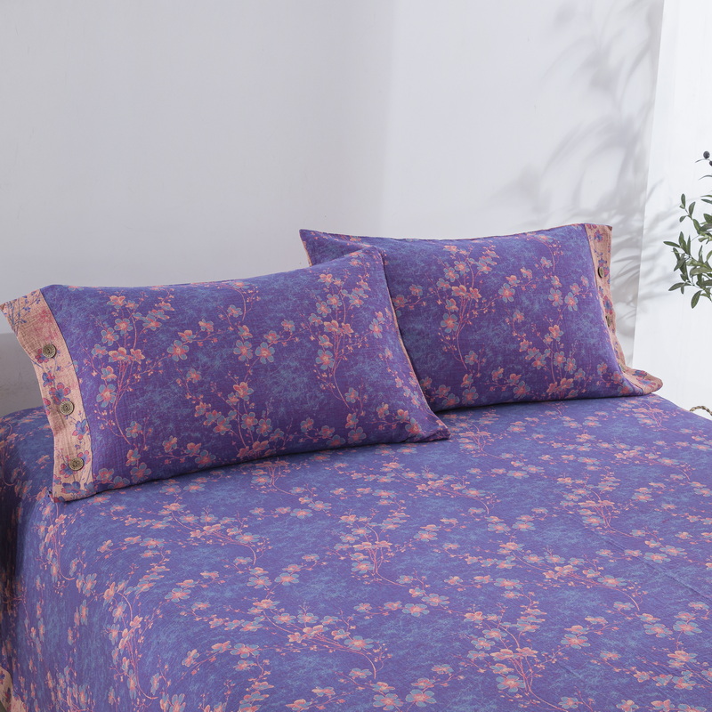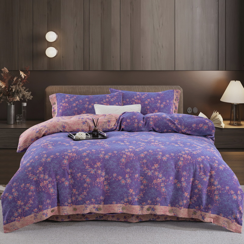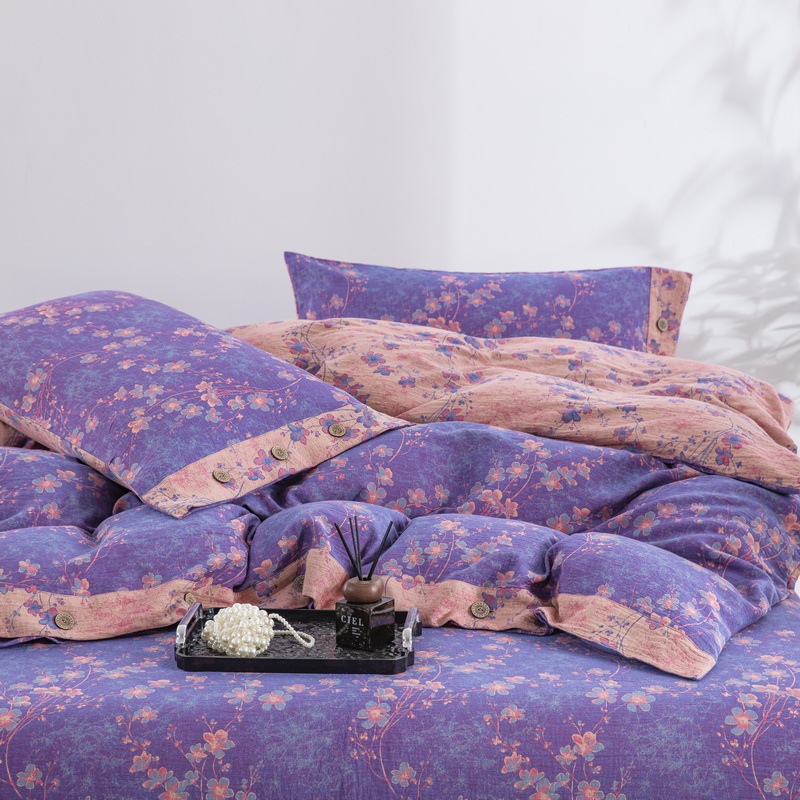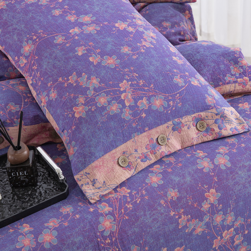 商品名称:2025新款全棉色织双层纱纽扣款四件套 织梦-紫罗兰