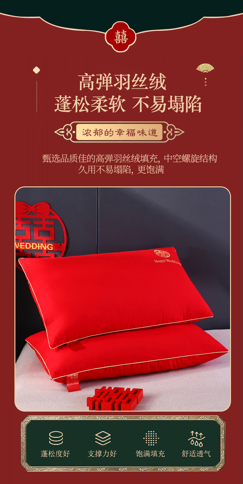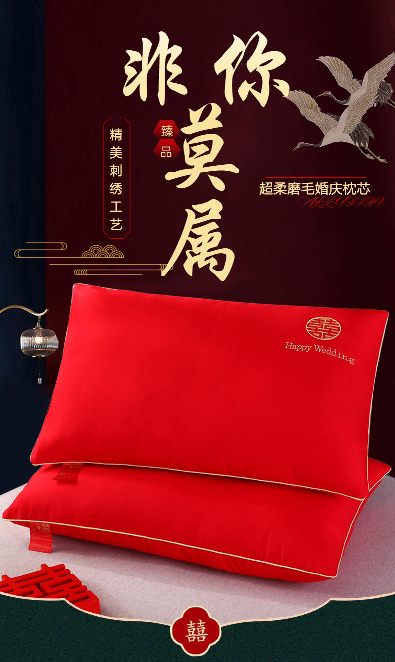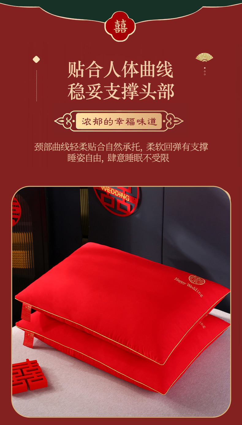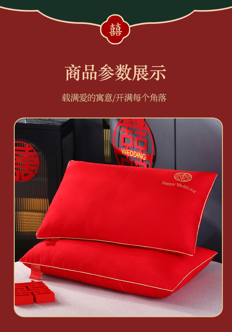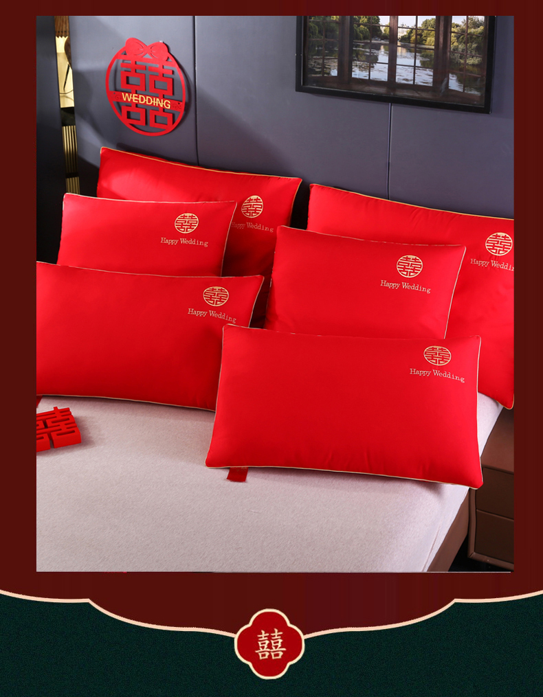 (总)贤内助家纺 2025新款全棉大红婚庆枕芯枕头护肩枕舒适枕羽丝枕,永结同心 48*74cm/只,欢喜你 48*74cm/只,水晶之恋 48*74cm/只,吾家有喜 48*74cm/只,喜上眉梢 48*74cm/只,新婚大喜 48*74cm/只