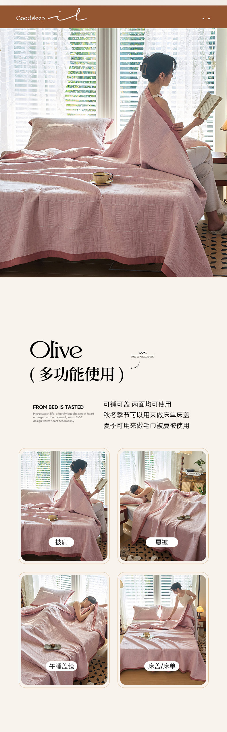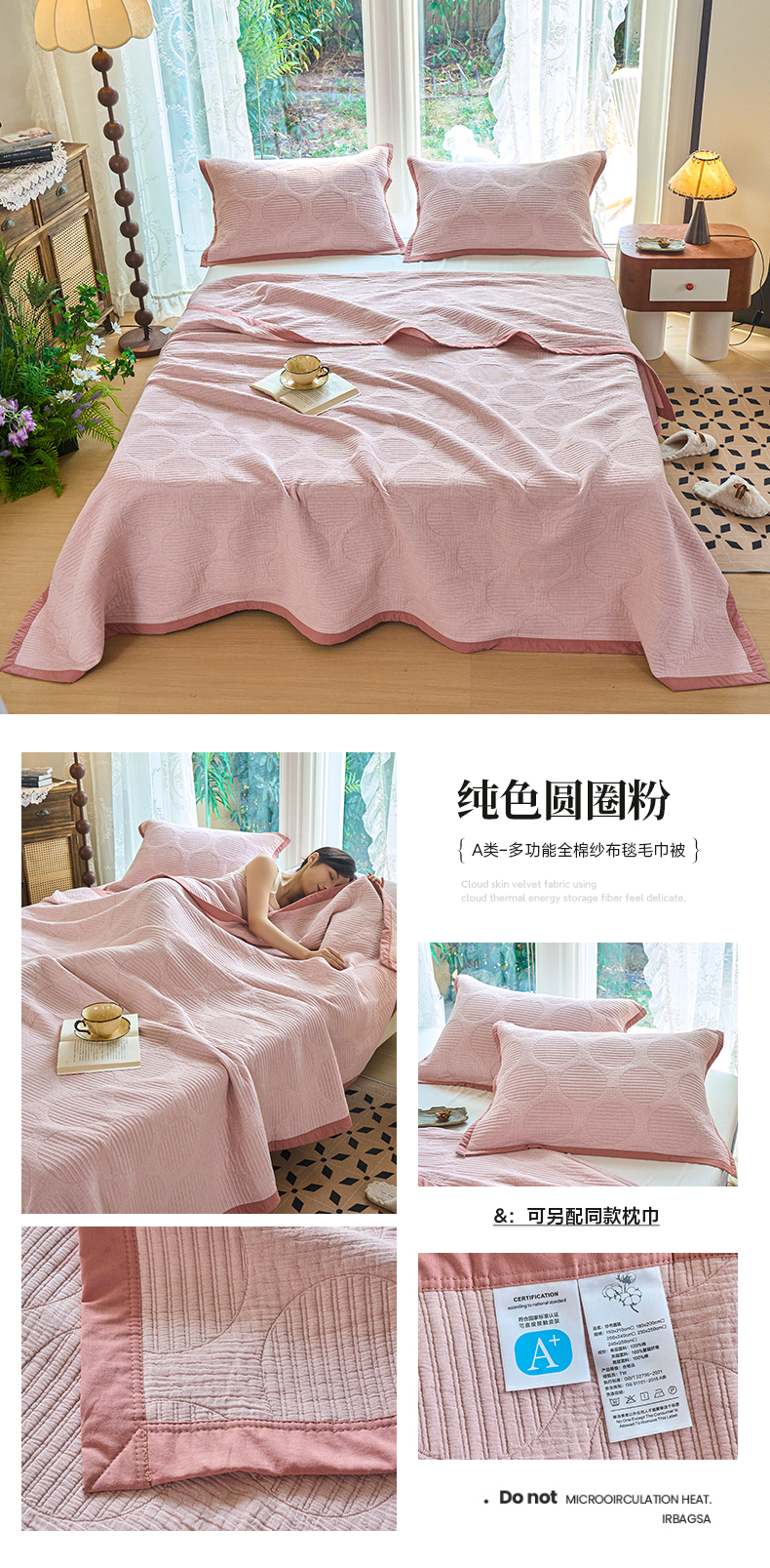 当前位置: 91家纺网 > 商品网购 > 毛毯休闲毯绒毯 > 毛毯 > 棠薇家纺 2025新款纯色纱布毯棉毛巾被包边款多功能毯三层纱双层纱夹棉床盖毯子可铺可盖 纯色圆圈粉