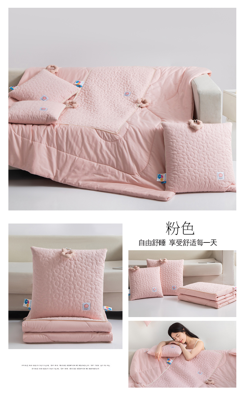 商品名称:雷娜家居 2025新款全棉花千朵系列抱枕被 粉色