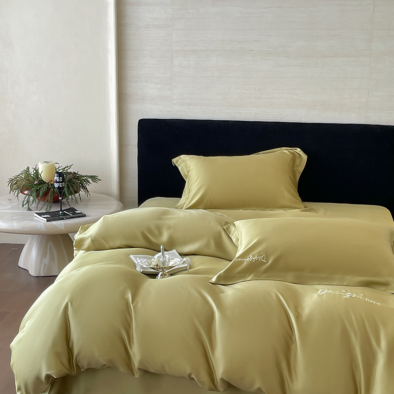 黛舒家居 2025新款60S兰精天丝纯色简绣四件套 丁香紫