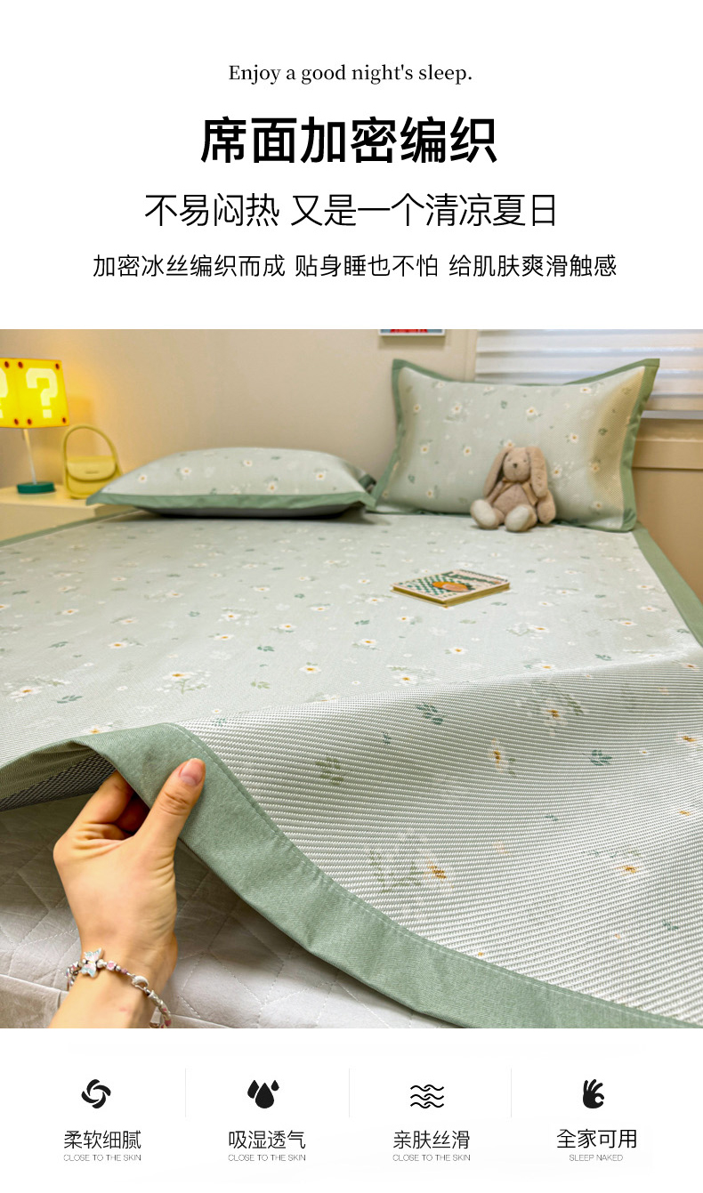 (总)慕尚家纺 2025春夏新款凉感冰丝提花凉席三件套,爱心圆点,海棠 粉,海棠 灰,海棠 蓝,花艺 红绿,花艺 灰红,花艺 灰绿,花艺 咖白,花语 灰,花语 蓝,花语 绿,水仙 粉,水仙 灰,水仙 蓝,水仙 绿,提花席 花香蓝,提花席 玫瑰之恋,提花席 棋盘格绿,提花席 树叶绿,提花席 直线绿,烟粉