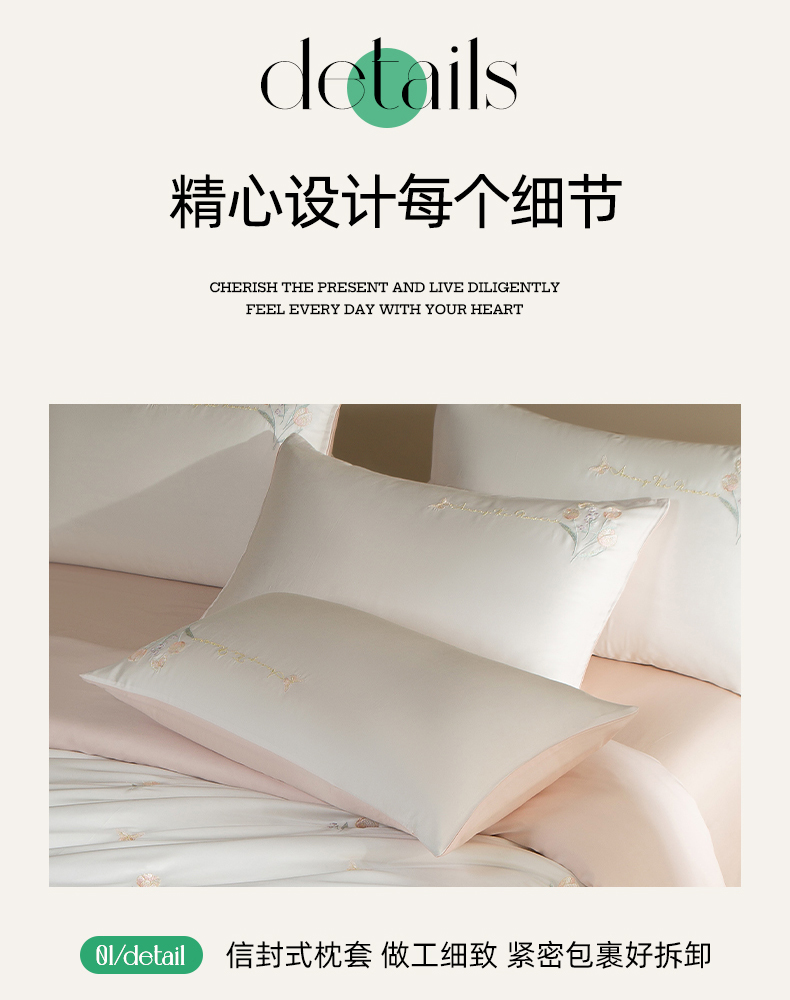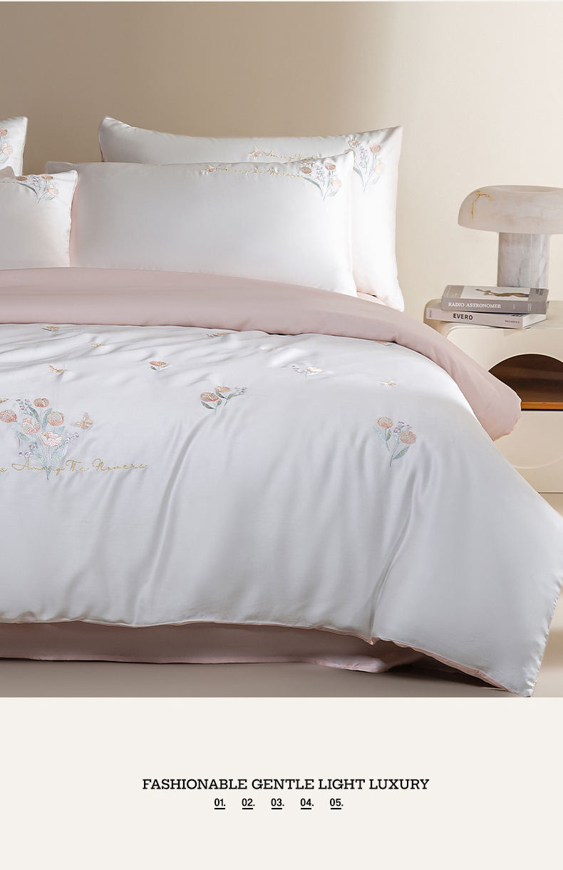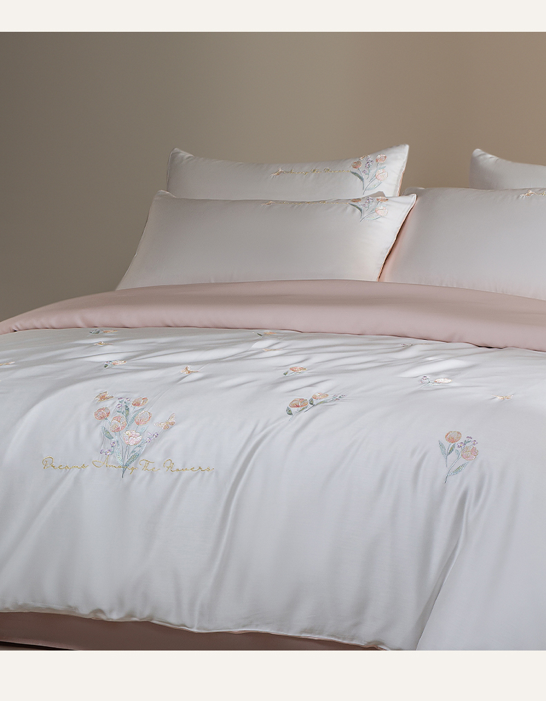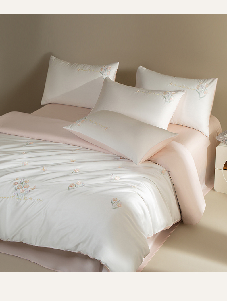 千朵森 2025新款60S奥地利兰精天丝四件套-春满郁金香 郁金香粉