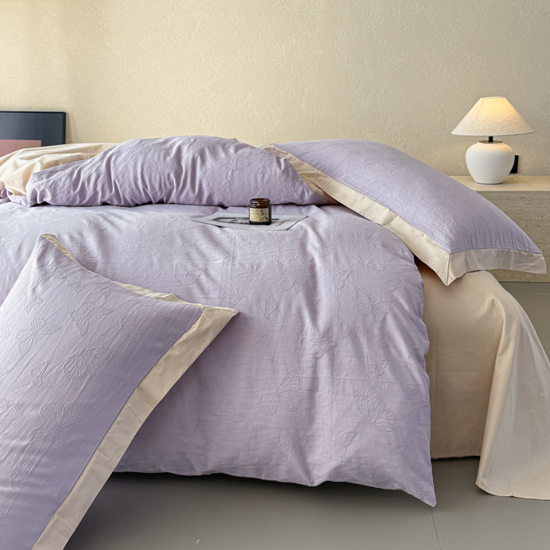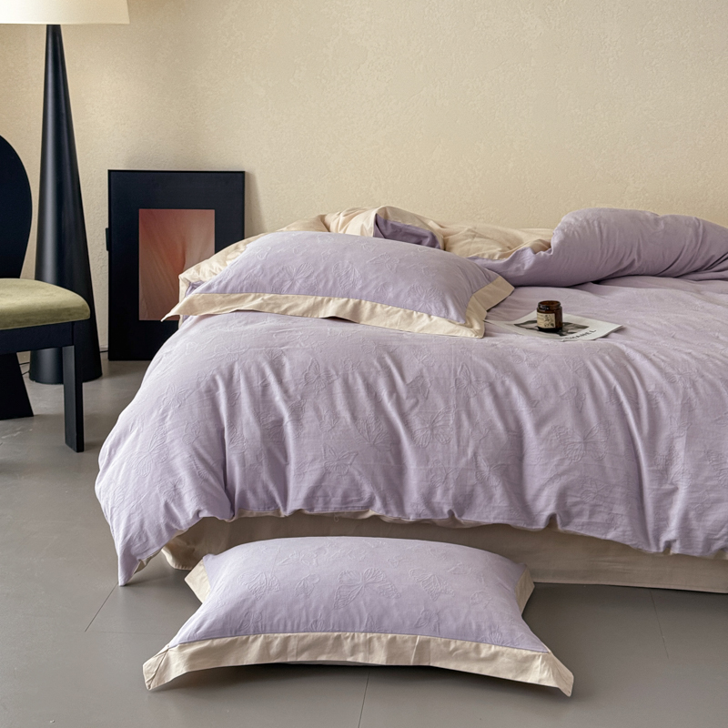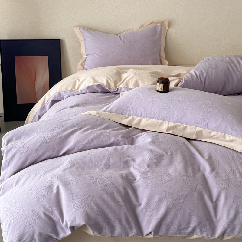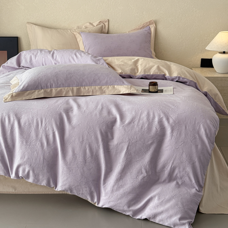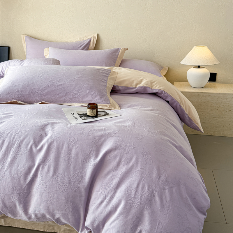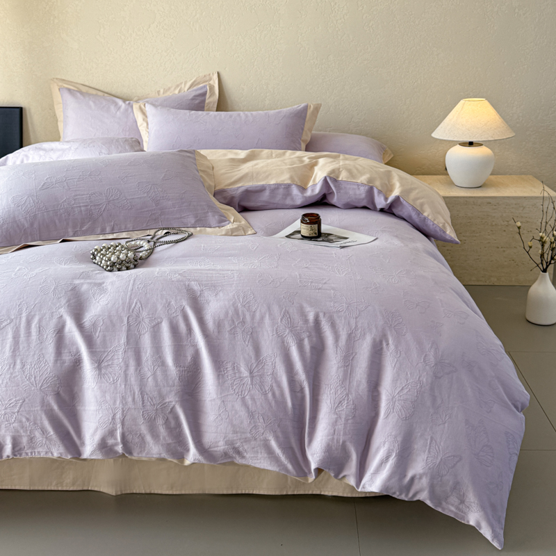 商品名称:若未家居 LOVEWE HOUSE 2025新款50S色织空气层水洗大提花全棉四件套 梦蝶-有氧紫