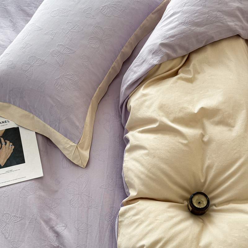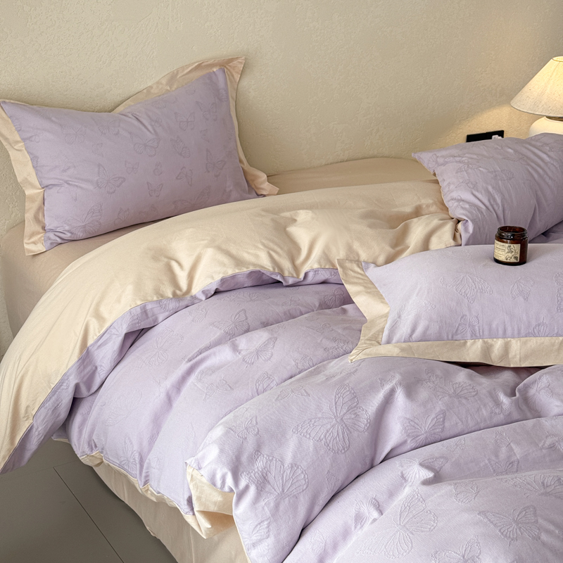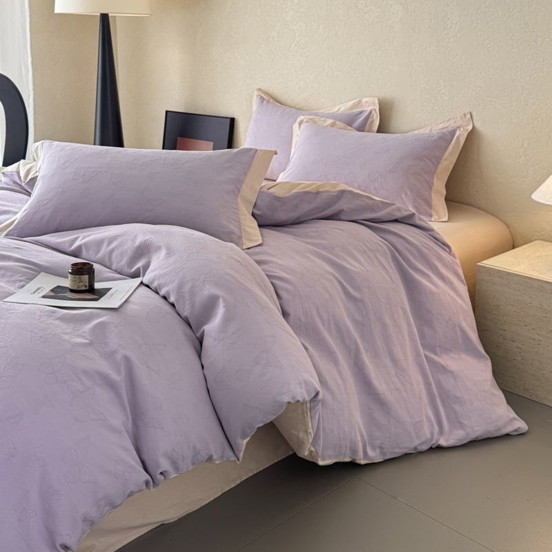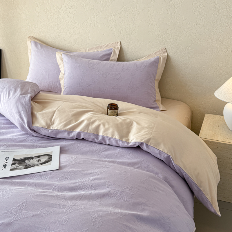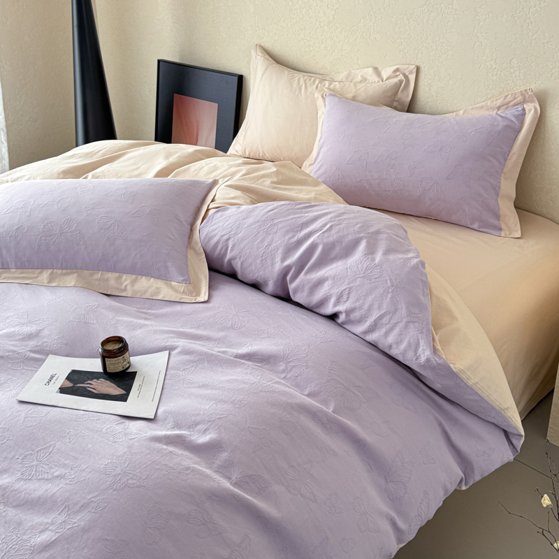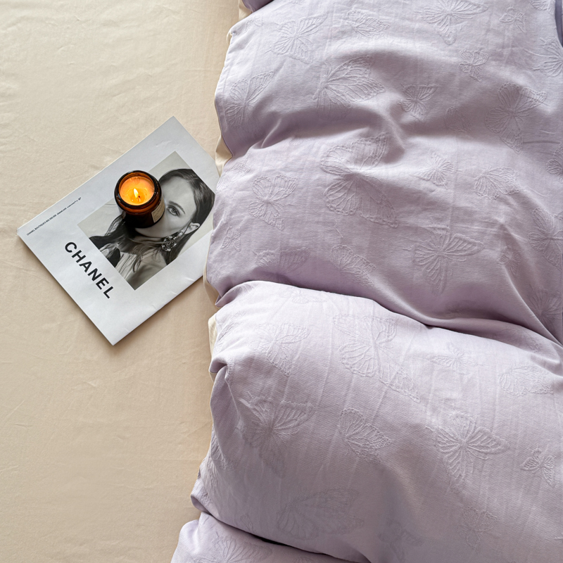 商品名称:若未家居 LOVEWE HOUSE 2025新款50S色织空气层水洗大提花全棉四件套 梦蝶-有氧紫