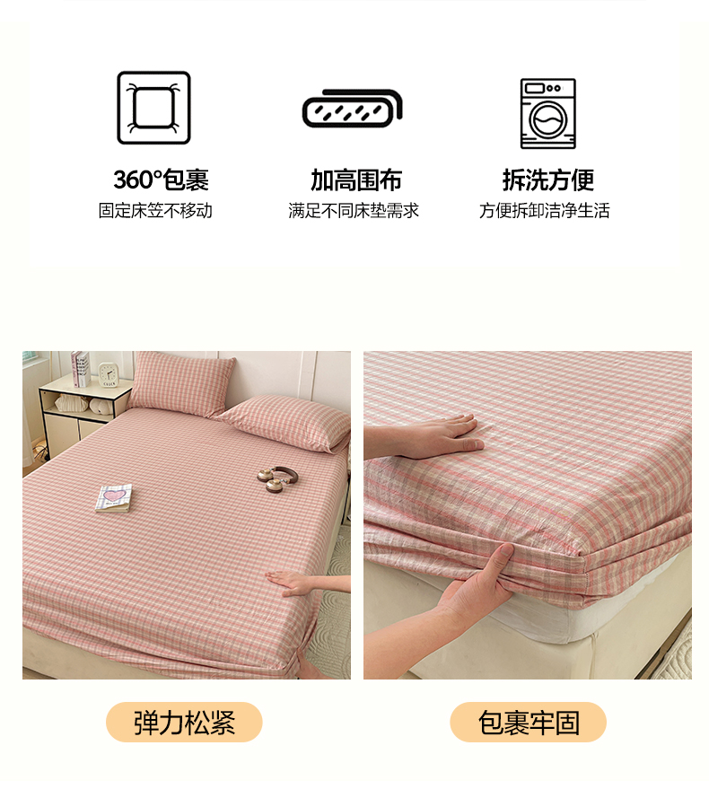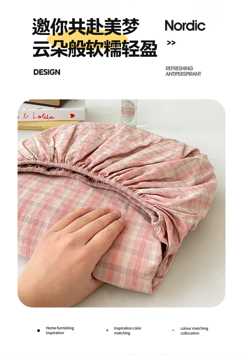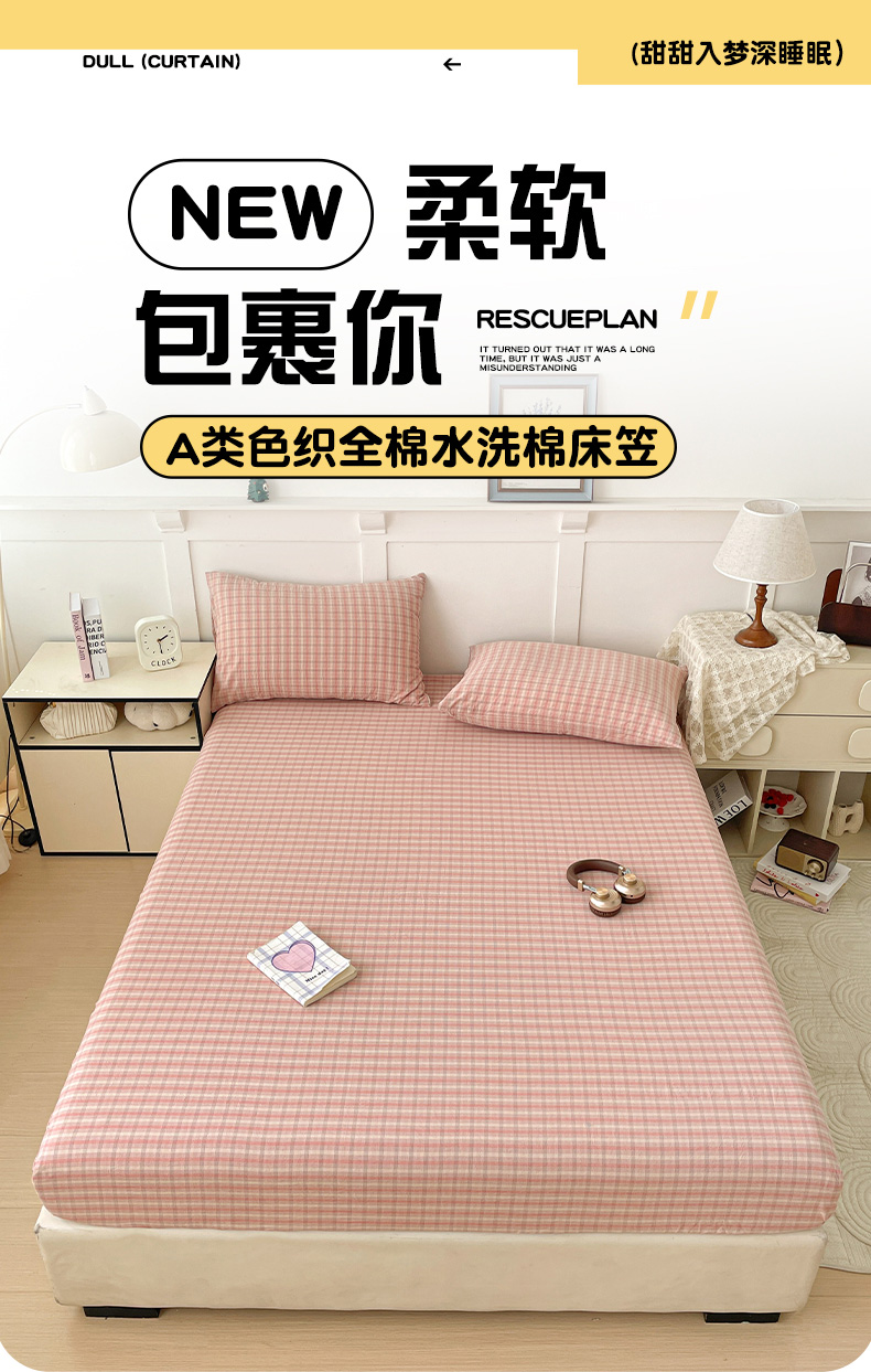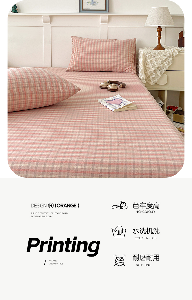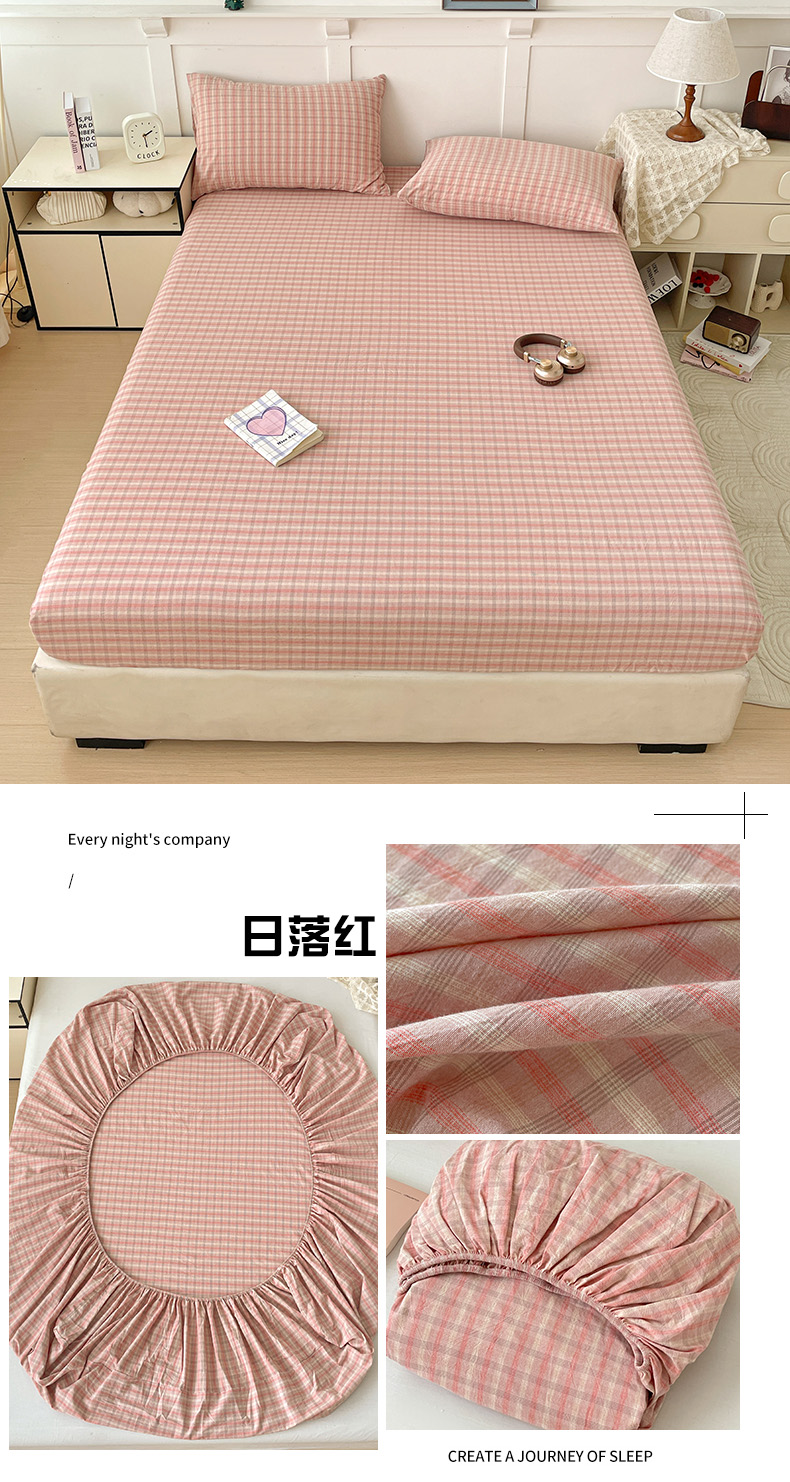 商品名称:2025新款全棉水洗棉套件-单床笠 日落红