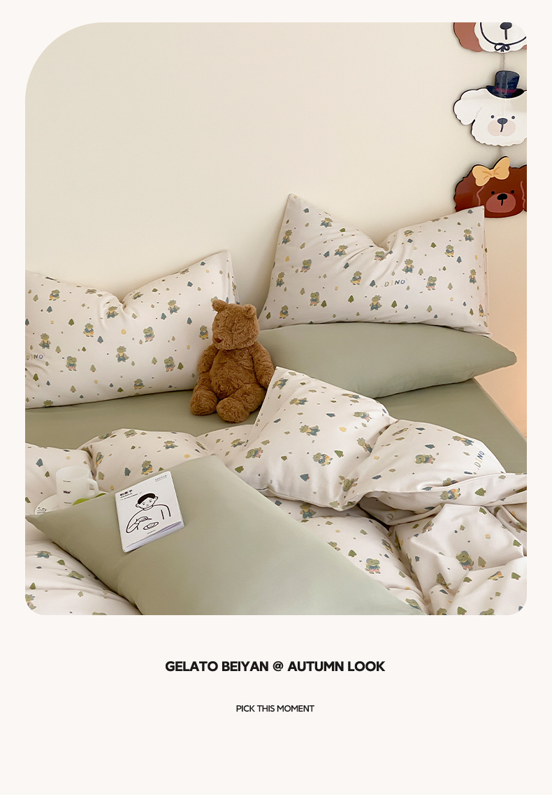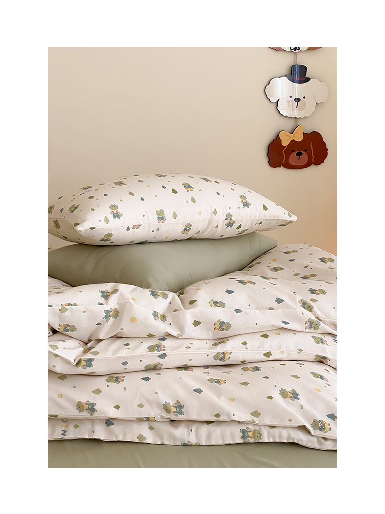 当前位置: 91家纺网 > 商品网购 > 床品套件 > 四件套 > 全棉普通四件套 > 时光里 2025新款A类全棉双层纱套件第一波 萌宠宝宝-绿