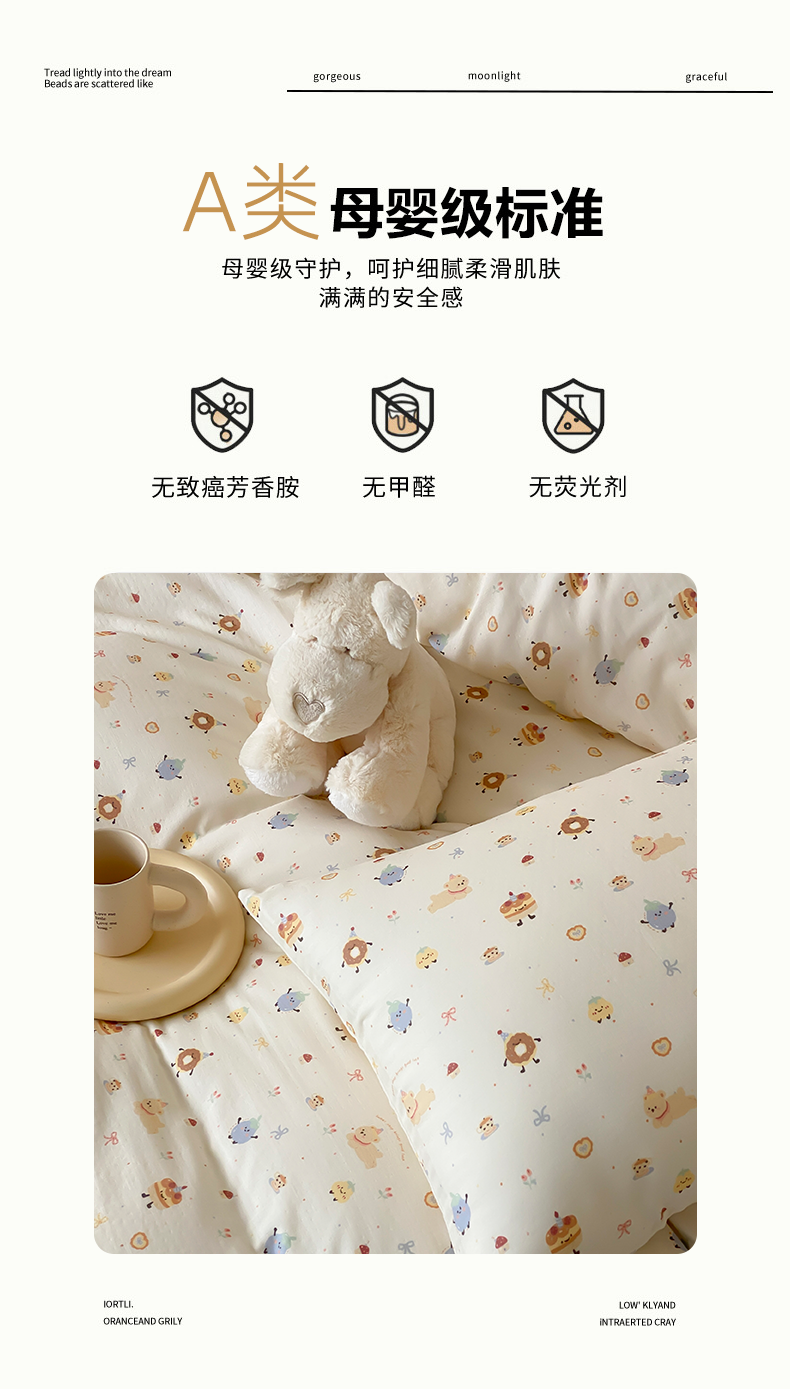 当前位置: 91家纺网 > 商品网购 > 床品套件 > 四件套 > 全棉普通四件套 > 时光里 2025新款A类全棉双层纱卡通风七色系列第二波 如甜初梦