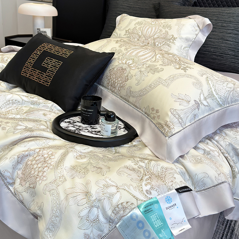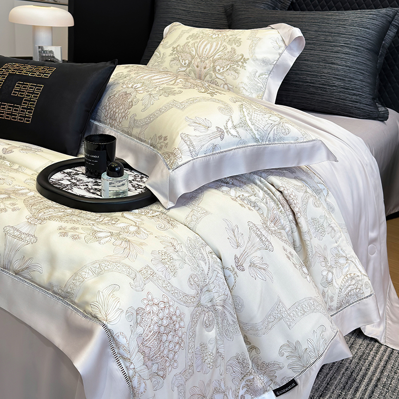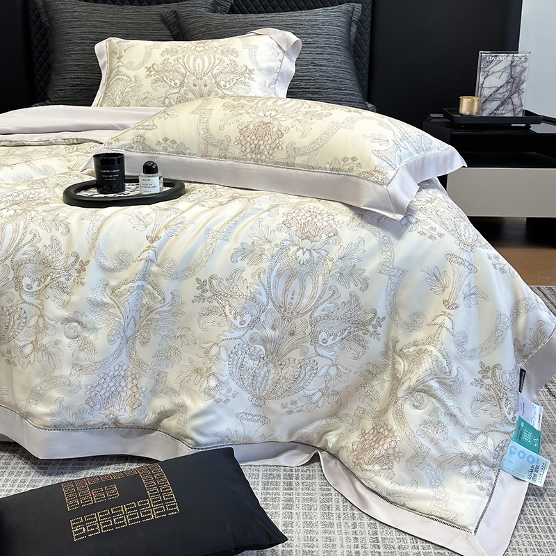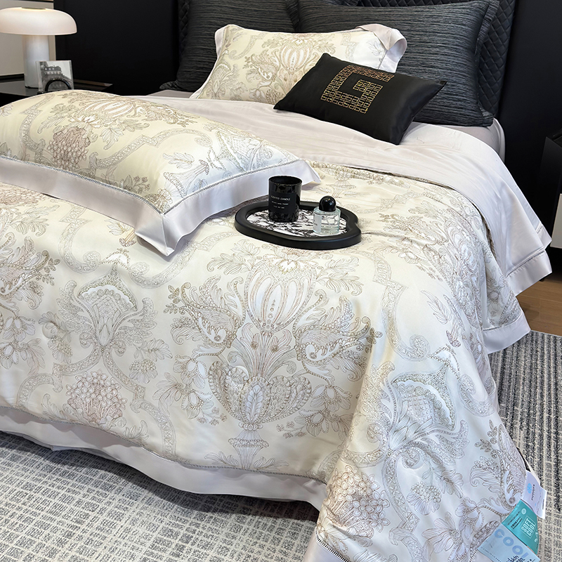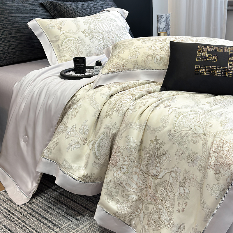当前位置: 91家纺网 > 商品网购 > 被子 > 夏被 > 若未家居 LOVEWE HOUSE 2025新款兰精天丝印花夏被及夏被四件套 宫廷华尔兹(床单款+床盖款)
