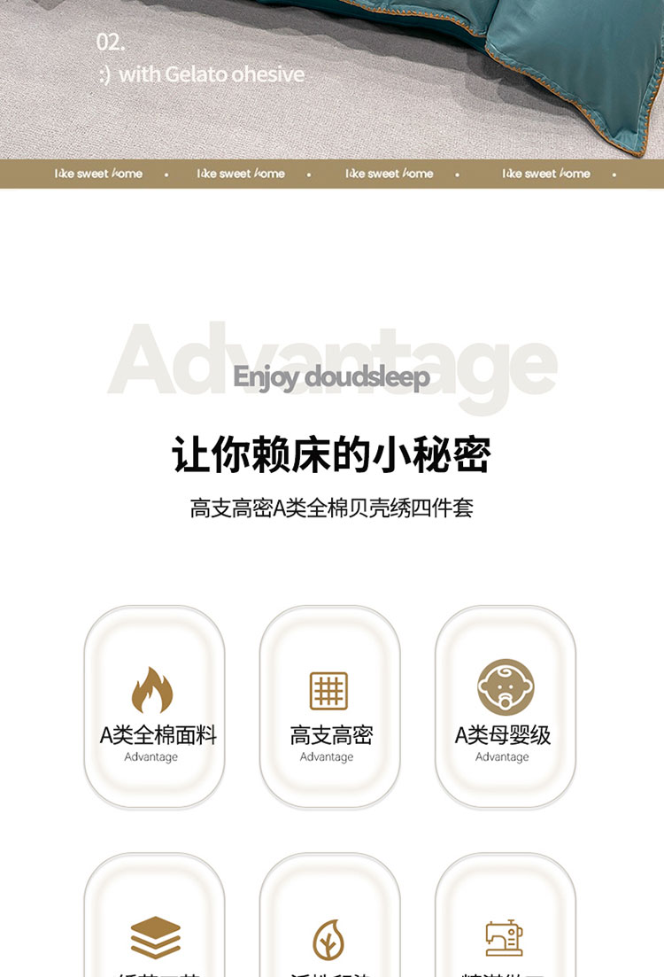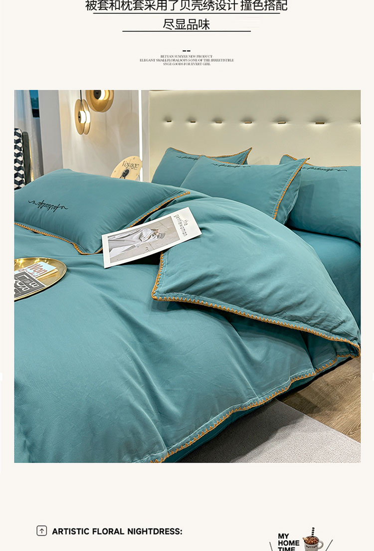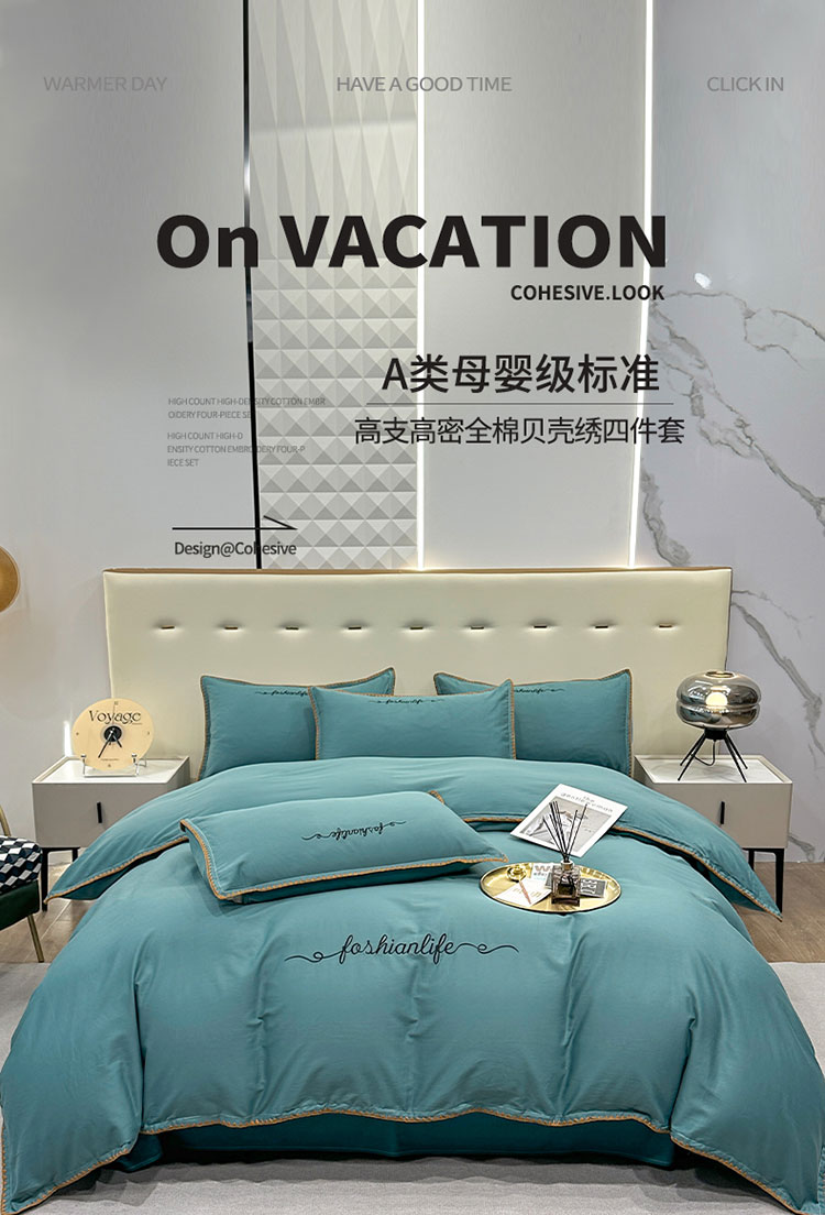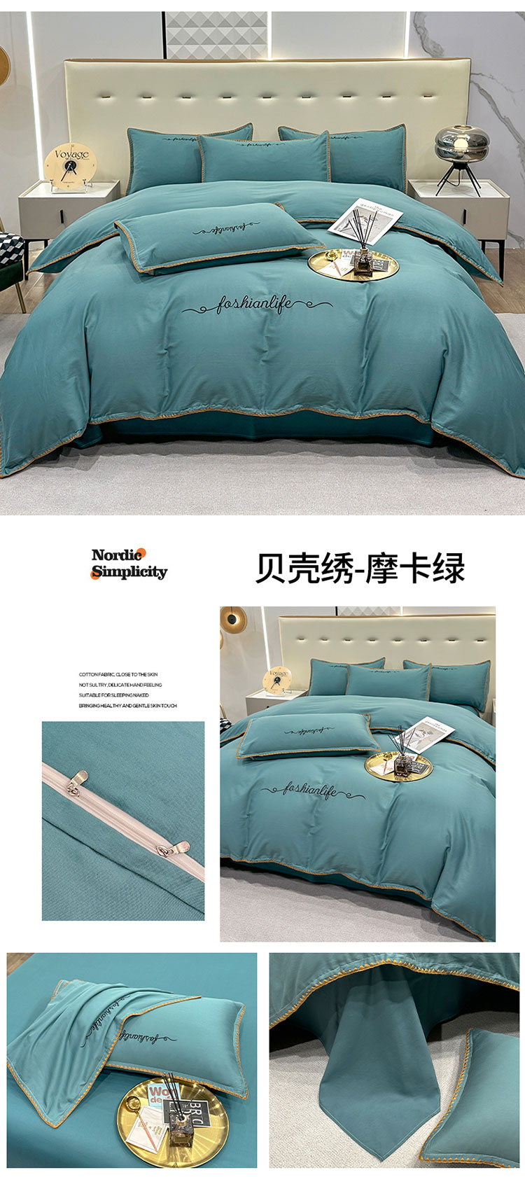 当前位置: 91家纺网 > 商品网购 > 床品套件 > 四件套 > 全棉普通四件套 > 2025新款13374全棉母婴级贝壳绣宽边枕套纯色刺绣三角针四件套全棉贡缎新疆长绒字母款 贝壳绣-摩卡绿
