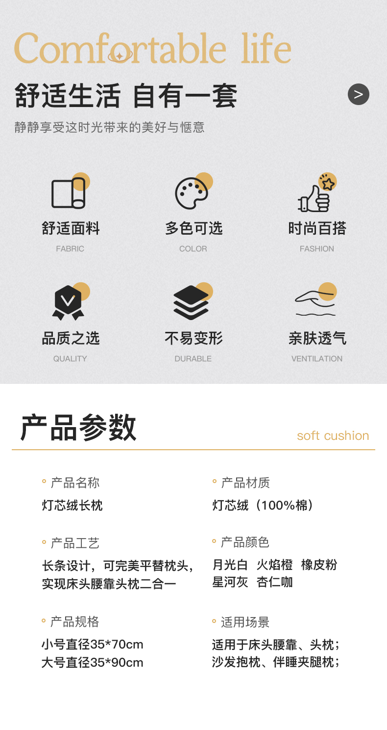 商品名称:美茉家居 2025新款灯芯绒长枕 杏仁咖