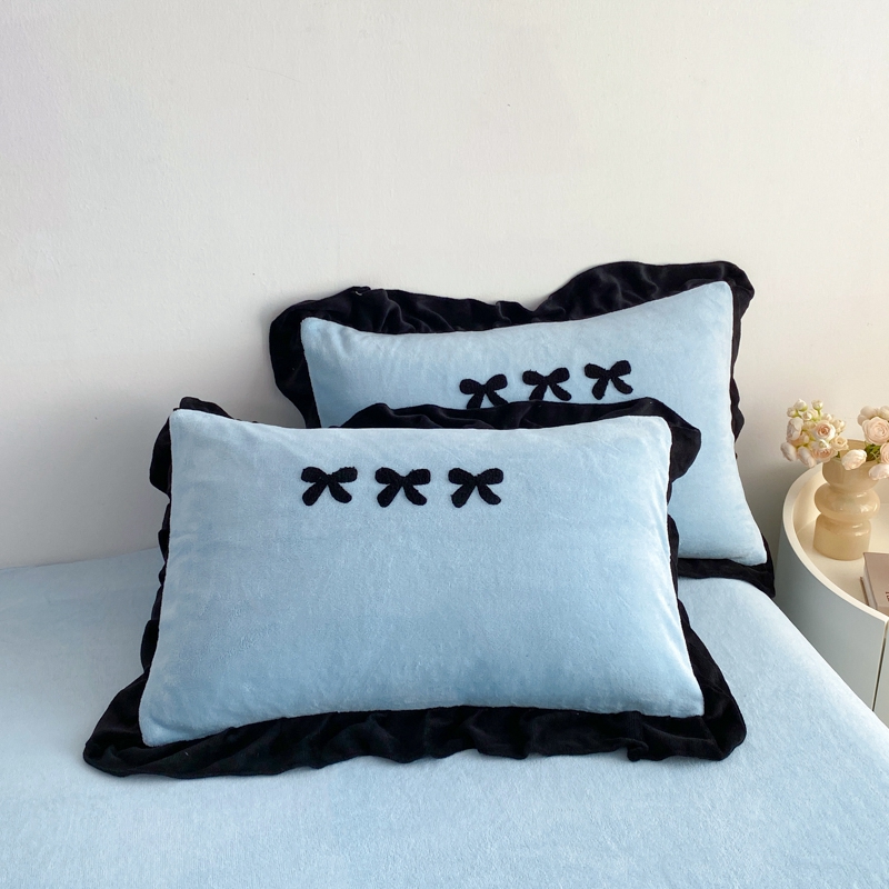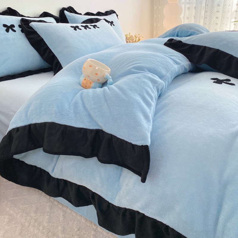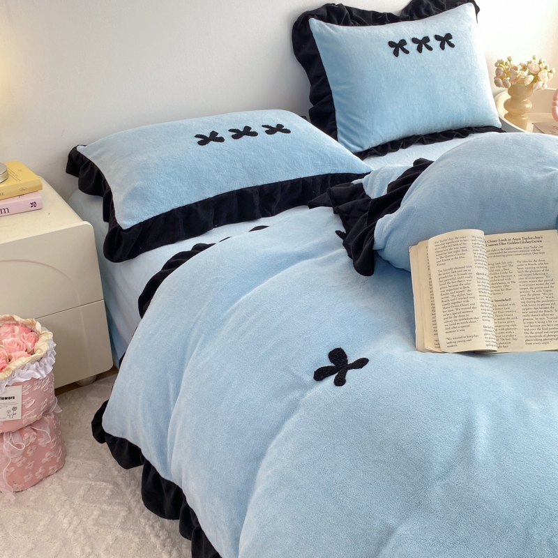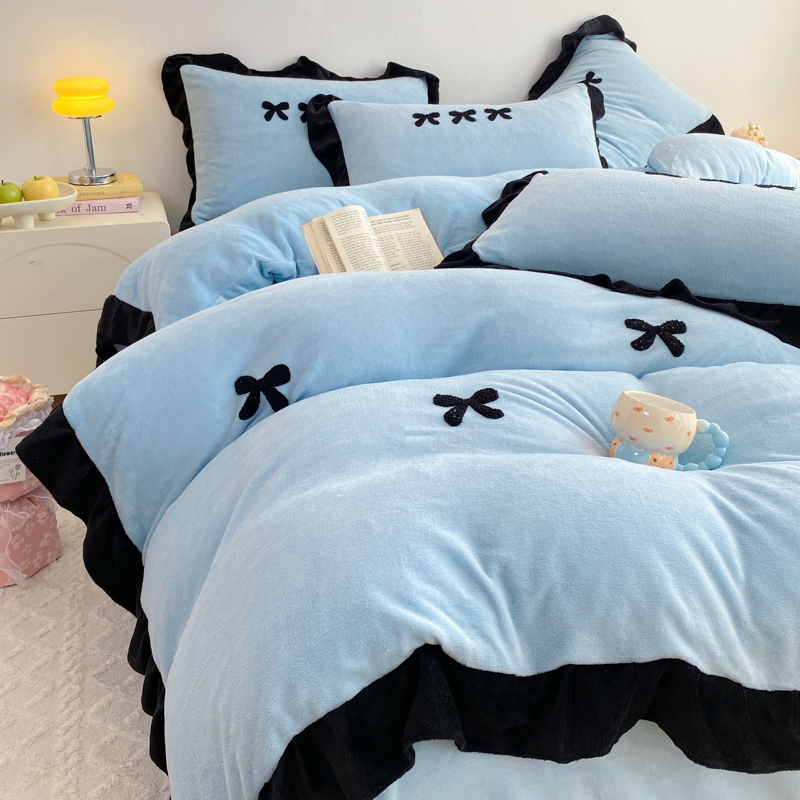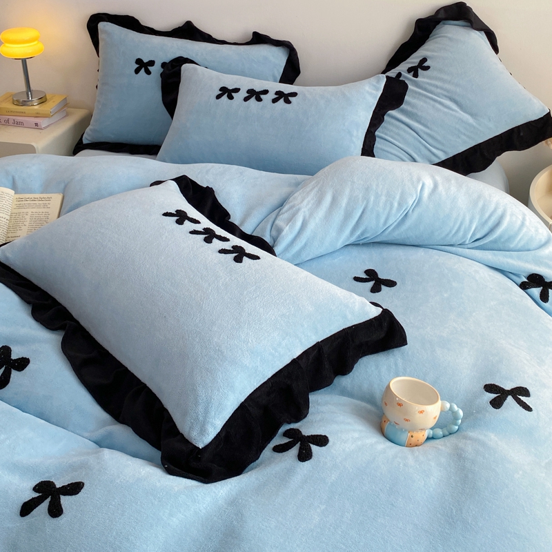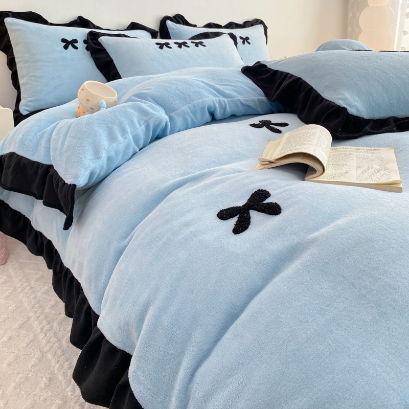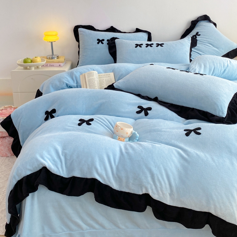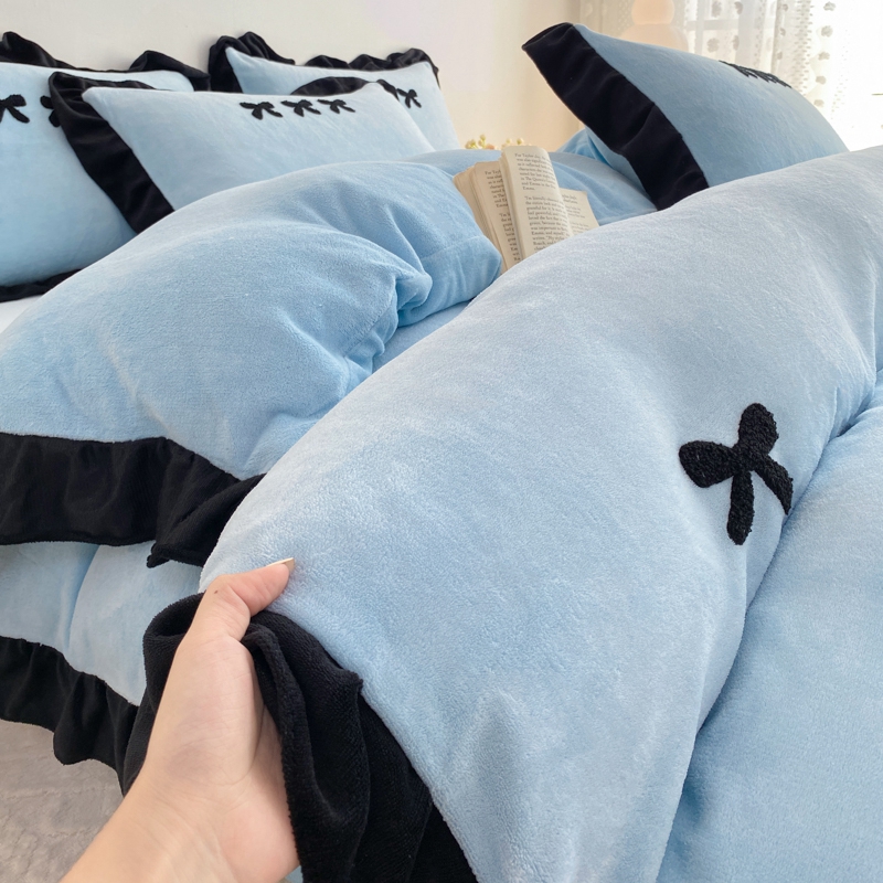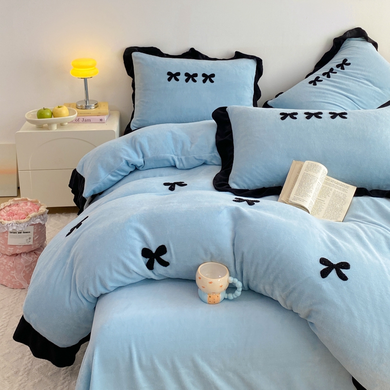 梦莱斯2025新款黑边绣花牛奶绒四件套 蝴蝶结-蓝