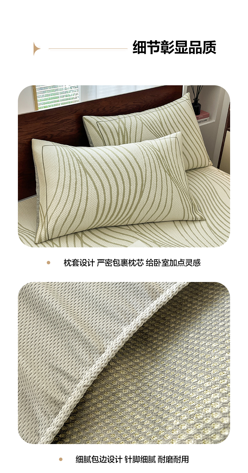 商品名称:雅居纺家纺 2025新款A类加厚三明治底简约提花凉感席系列-床笠款 曲线-绿
