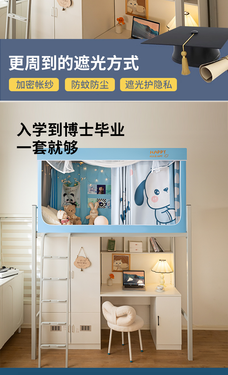 (总)觅妮家纺 2025新款99%强遮光涂银涂层大版数码印花宿舍学生床帘蚊帐