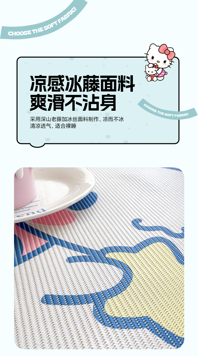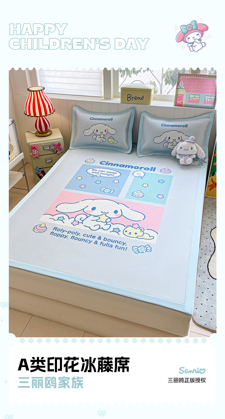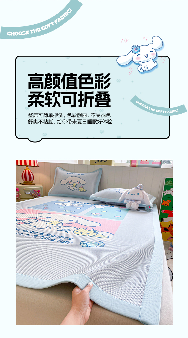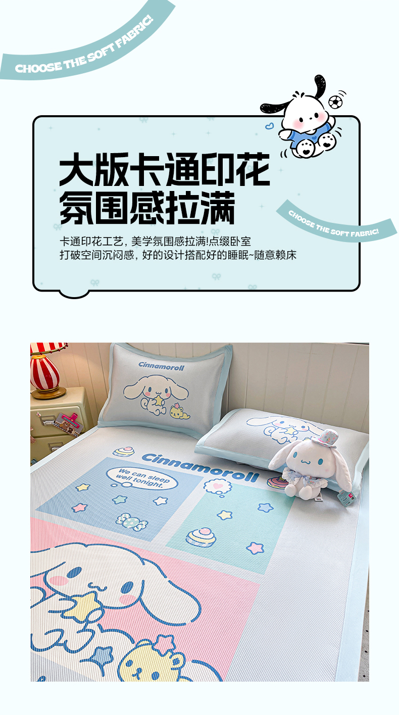 商品名称:蓝邻 2025春夏新款正版三丽鸥600D冰藤大版数码印花凉席-场景二 淘气大耳狗