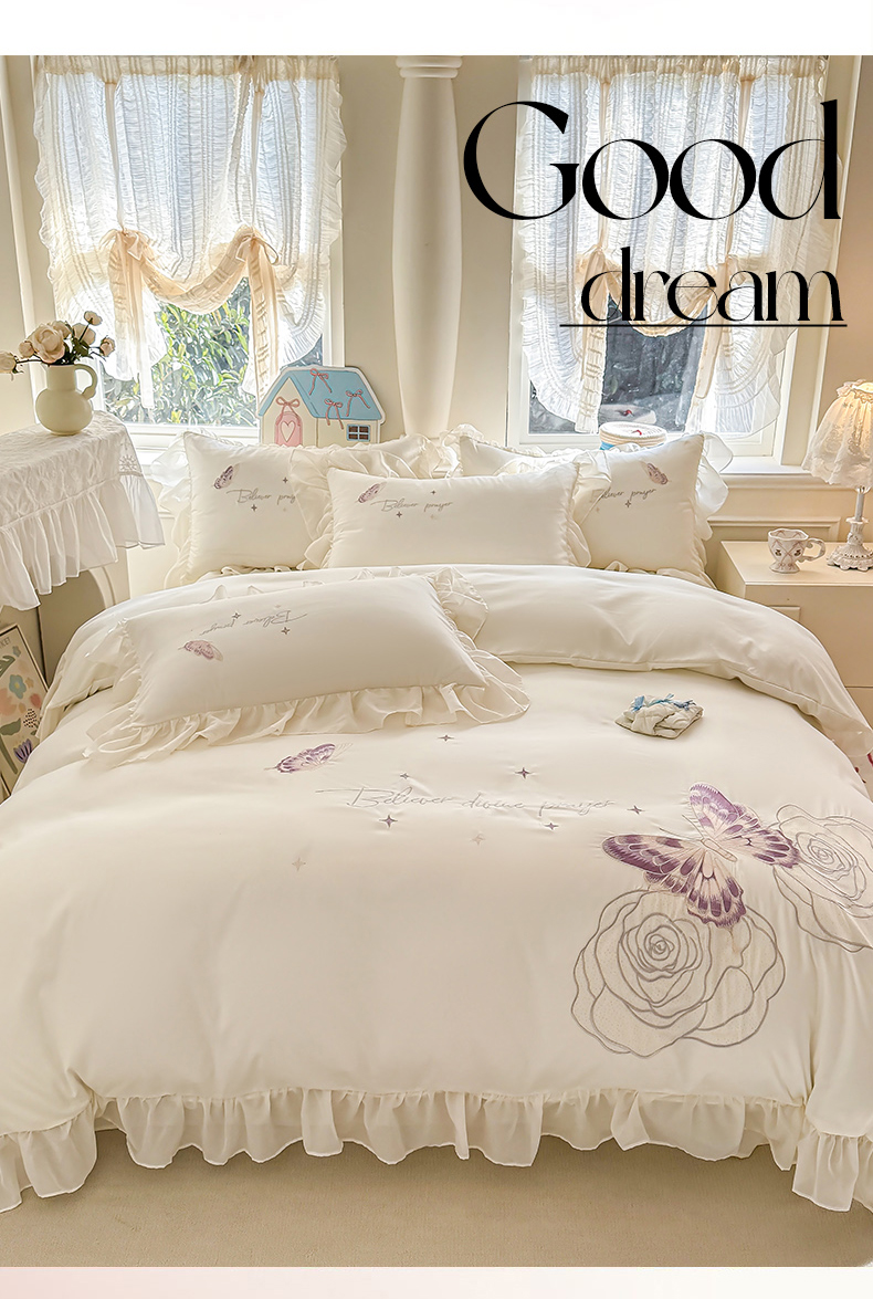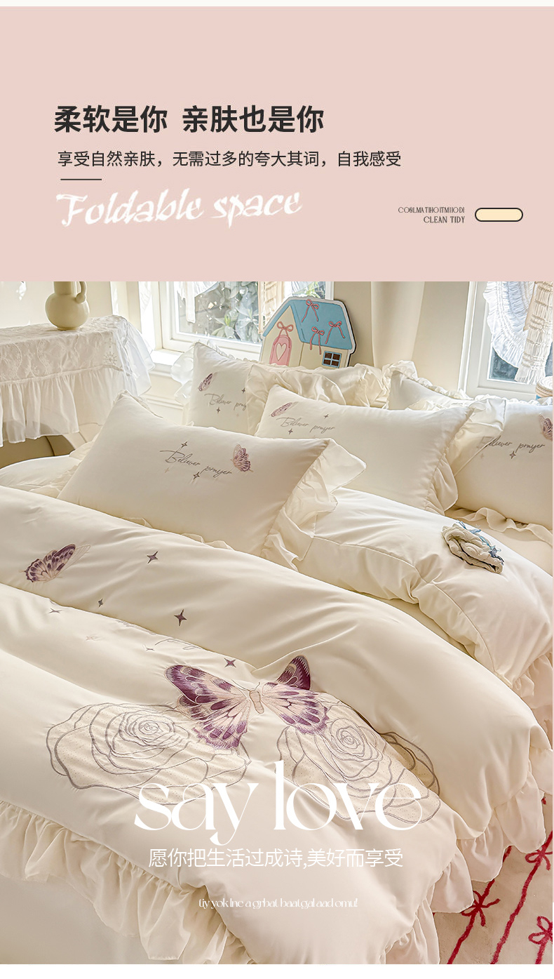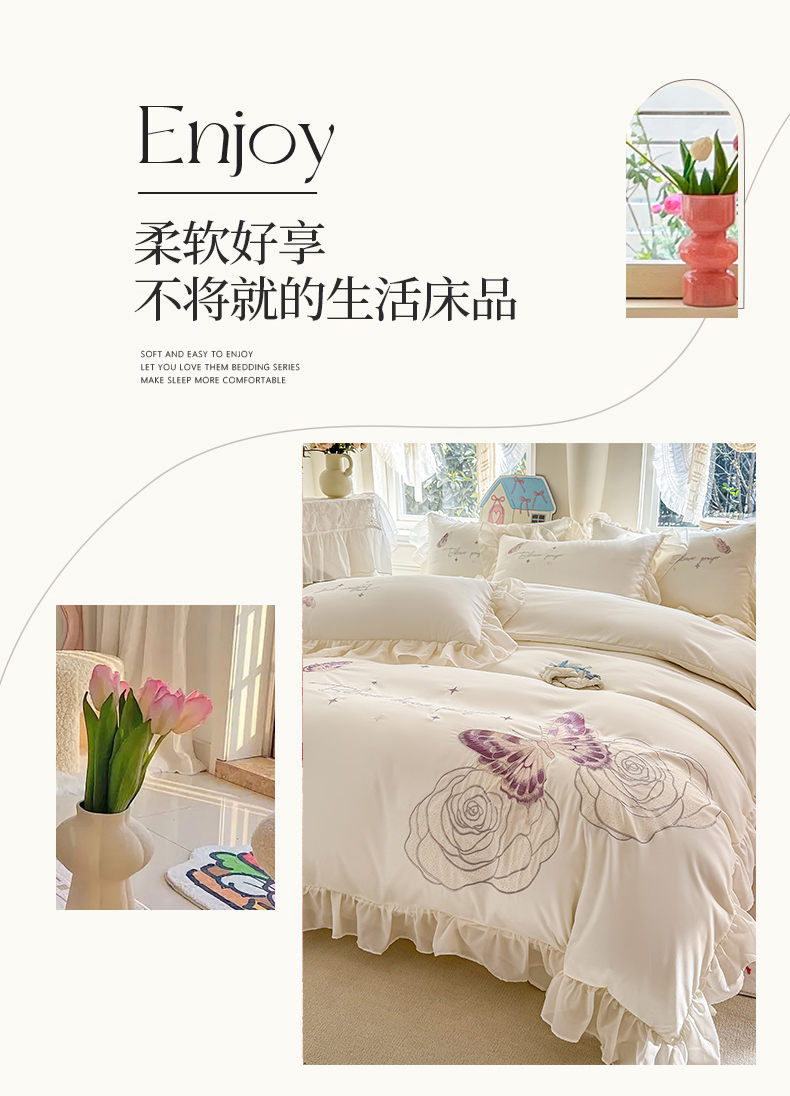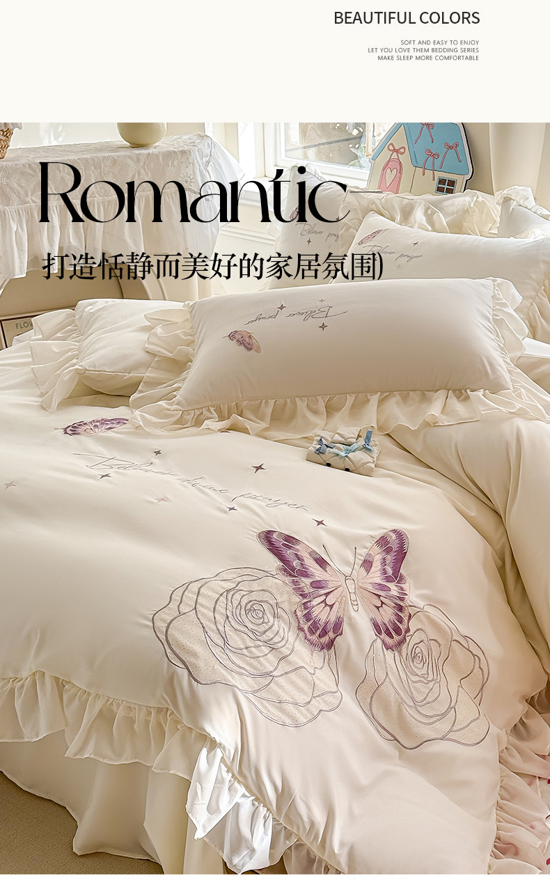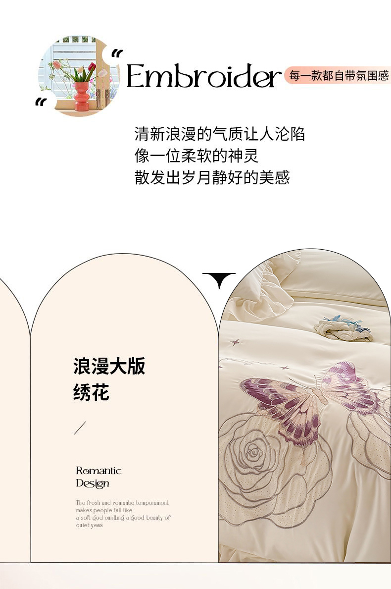 (总)凯美家居 2025新款A类水洗棉大版绣花四件套系列-蝶恋花