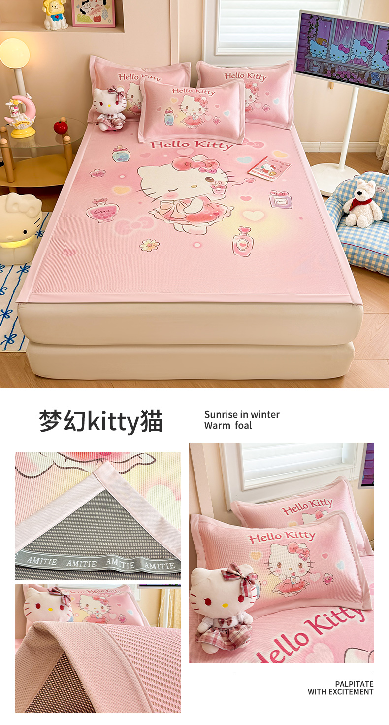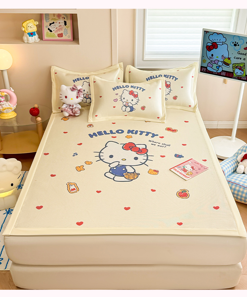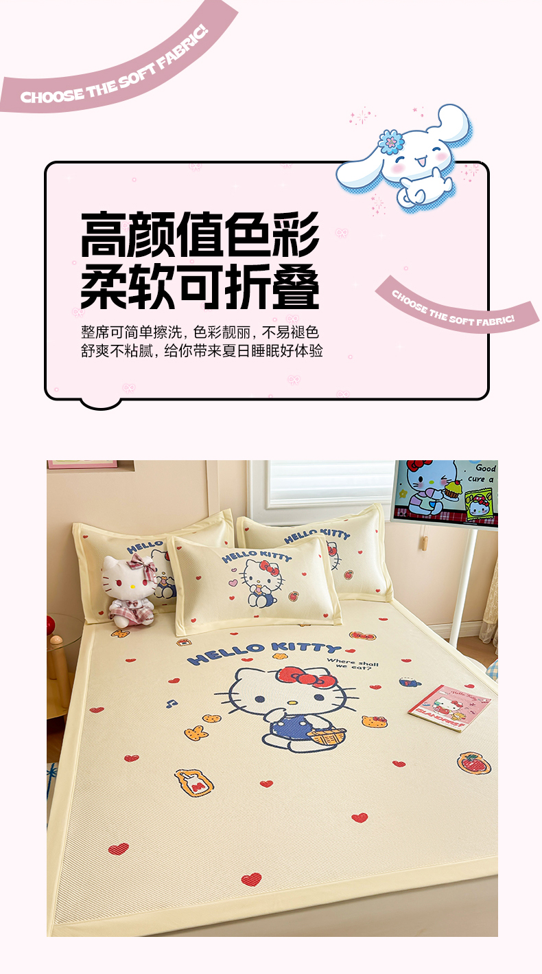 商品名称:(总)蓝邻 2025春夏新款正版三丽鸥600D冰藤大版数码印花凉席-场景一