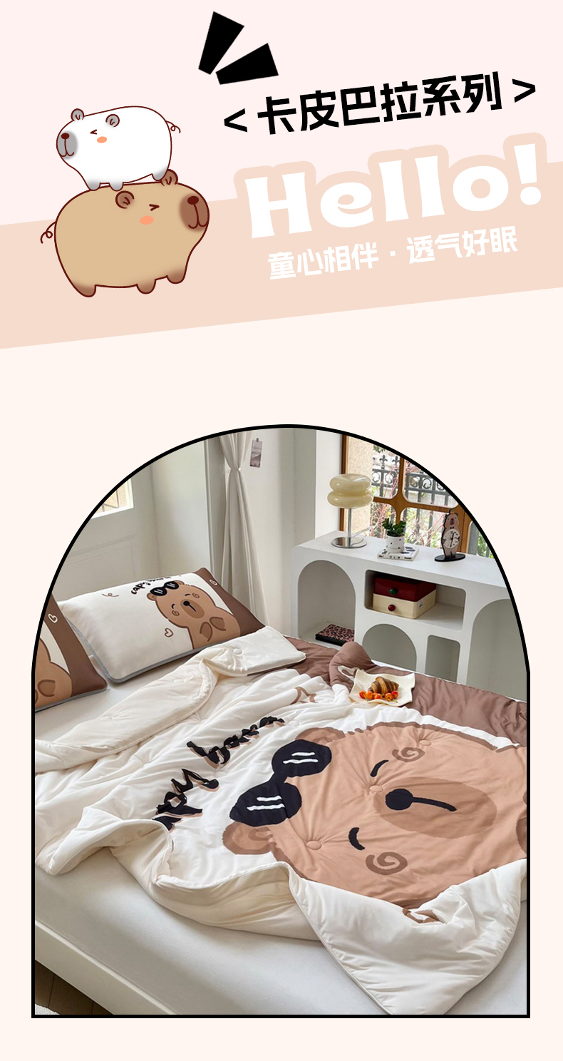 (总)蘭菲家纺 2025新款凉感丝卡皮巴拉夏被,爱滑板,爱皮卡,沉浸式,大美豚,拉不动,拉小鸭,陪伴拉,皮小蛋,皮小萌,豚世界,豚一家,小卡,小奶豚,熊巴拉,征服拉