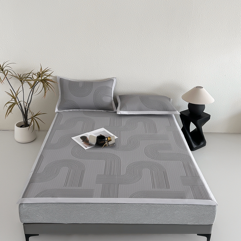禧禾 2025新款PE高分子A类泡小豆色织提花提花凉席三件套-悠米 悠米-深灰