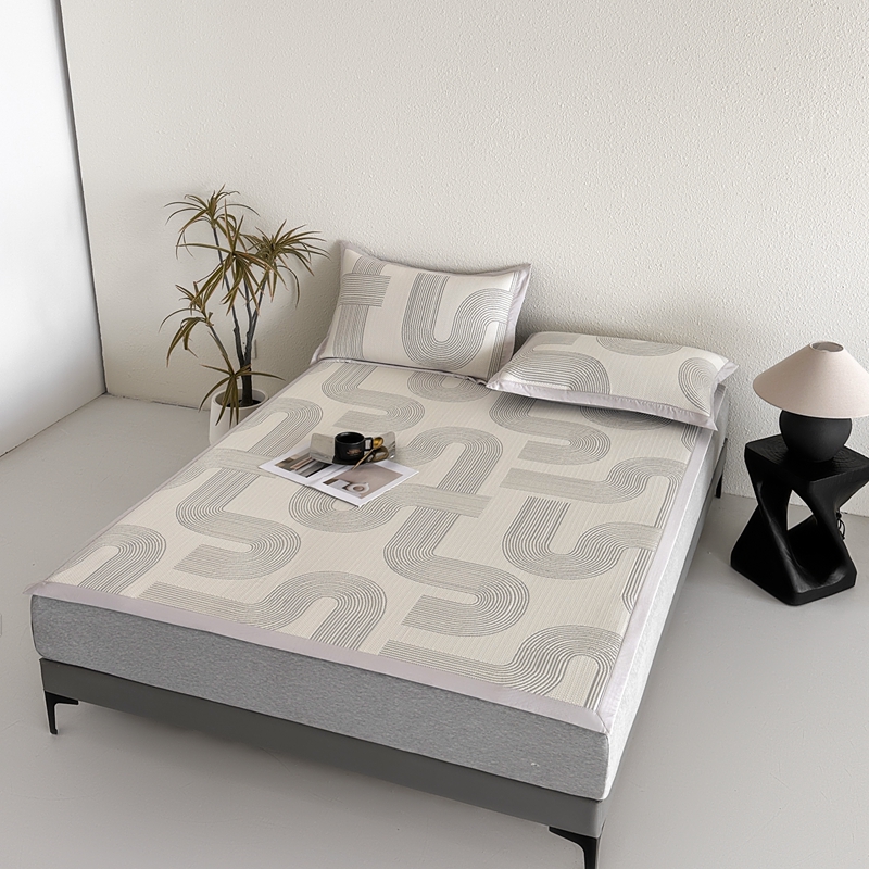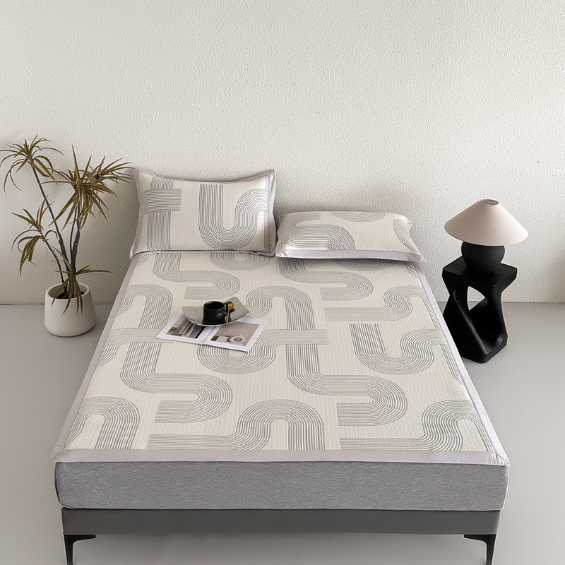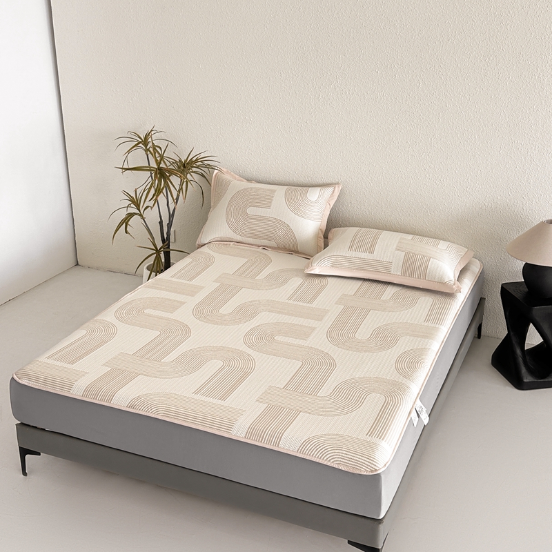 (总)禧禾 2025新款PE高分子A类泡小豆色织提花提花凉席三件套-悠米,悠米-浅灰,悠米-浅咖,悠米-深灰