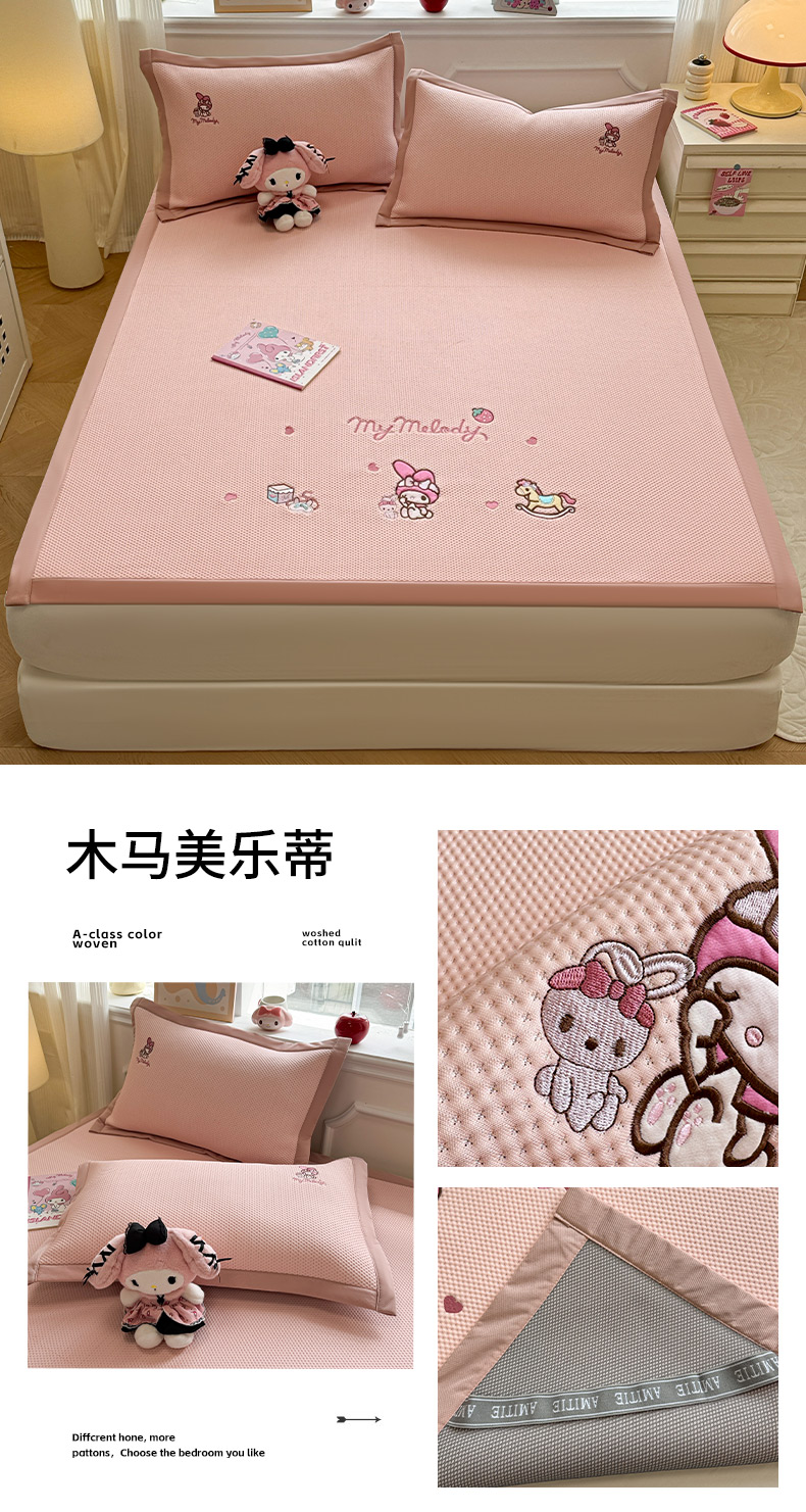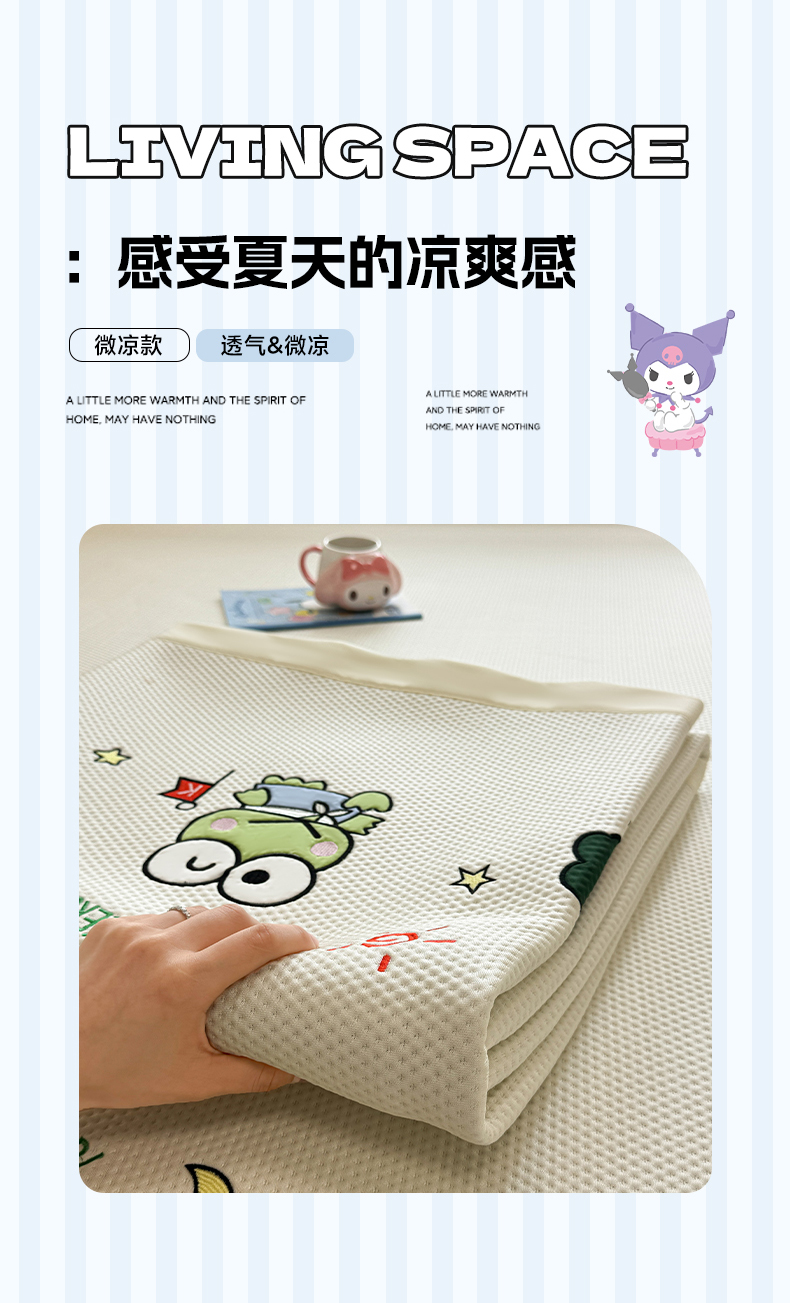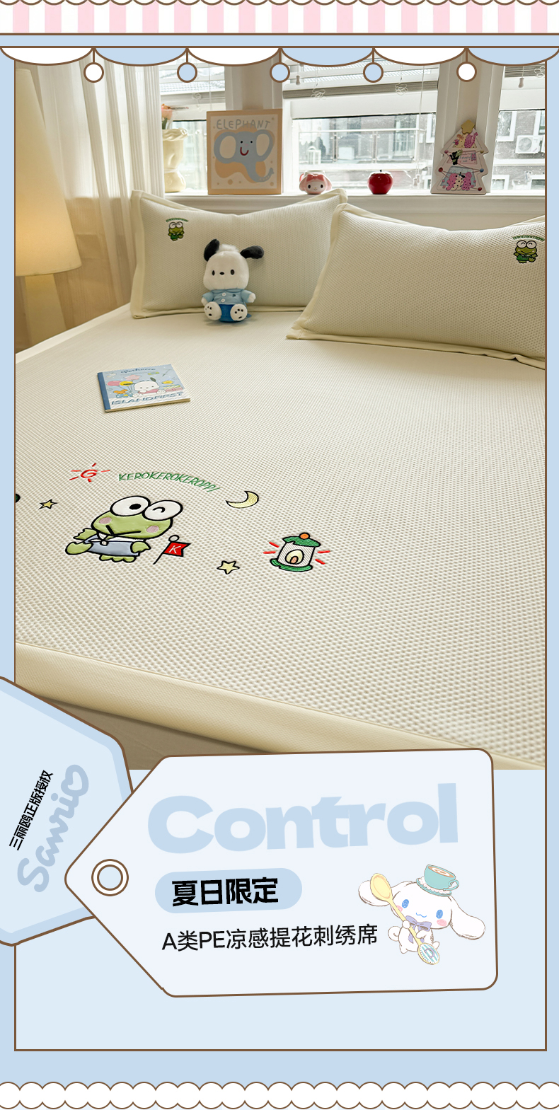 蓝邻家纺 2025年新款PE提花正版三丽鸥刺绣凉席系列-场景二 三眼仔