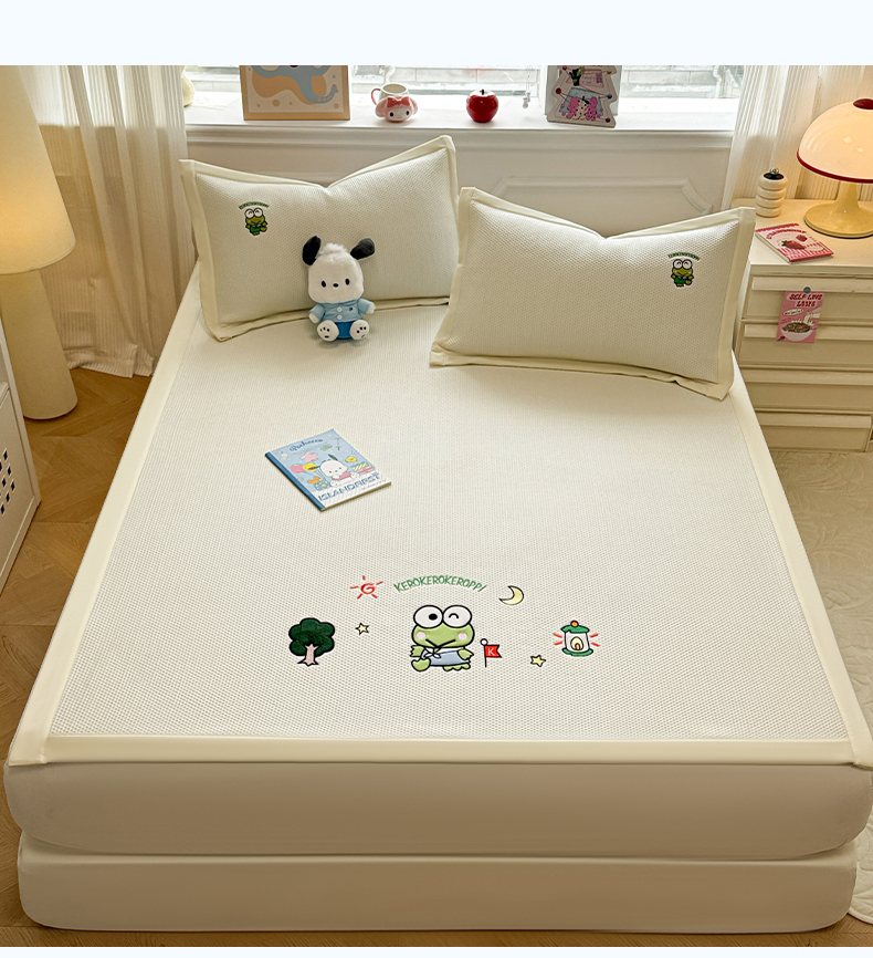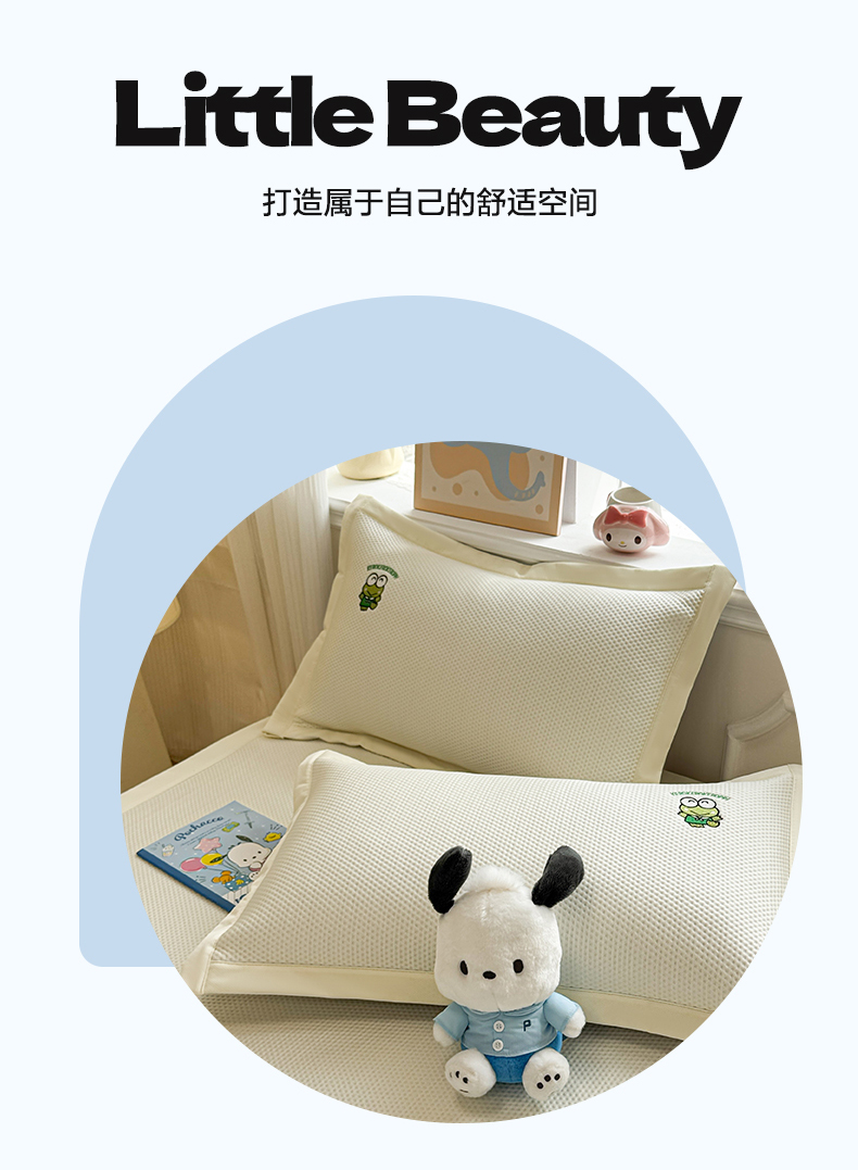 商品名称:蓝邻家纺 2025年新款PE提花正版三丽鸥刺绣凉席系列-场景二 三眼仔