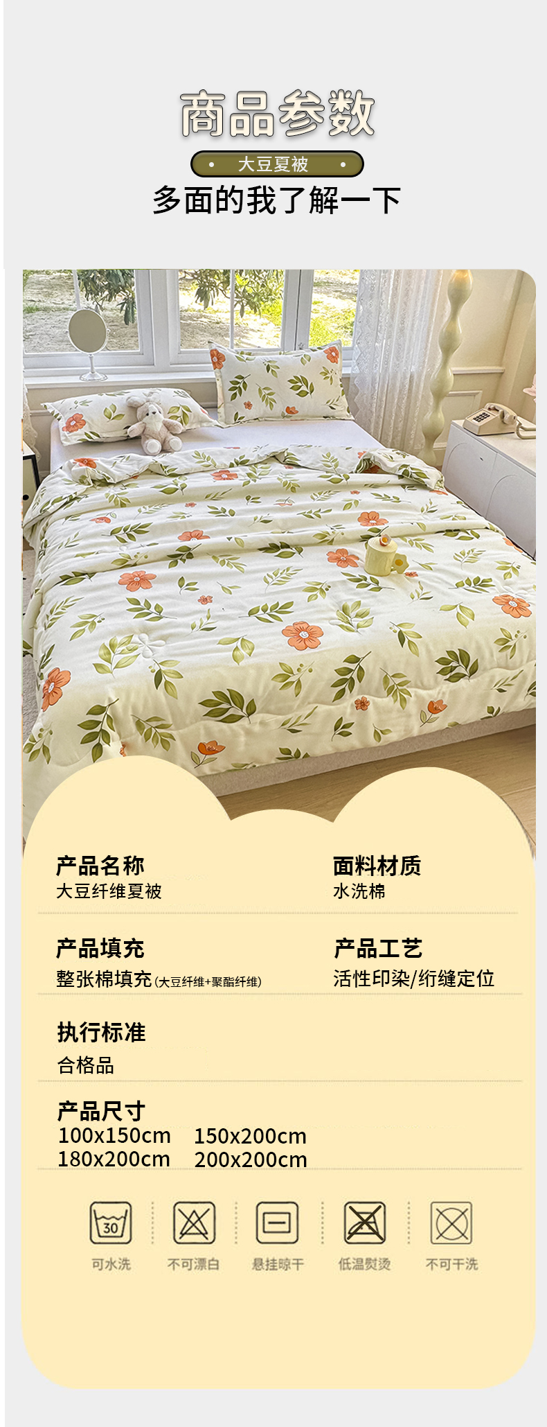 商品名称:友承家纺 2025新款A类母婴级大豆夏被夏凉被空调被 青柠薄荷