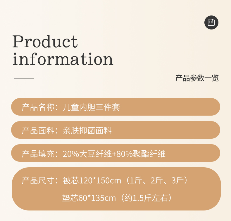 商品名称:(总)2025新款儿童幼儿园大豆内胆抑菌大豆被芯
