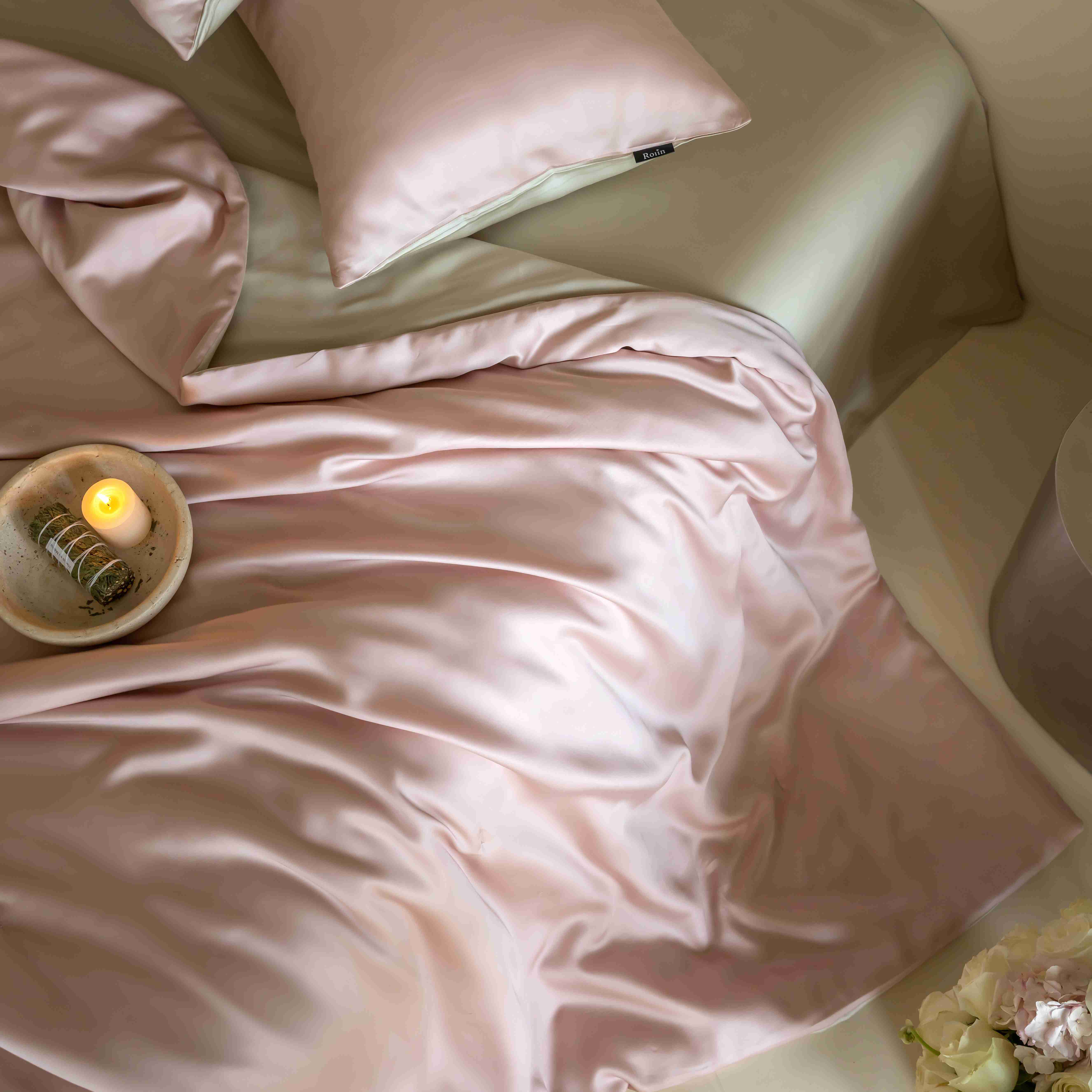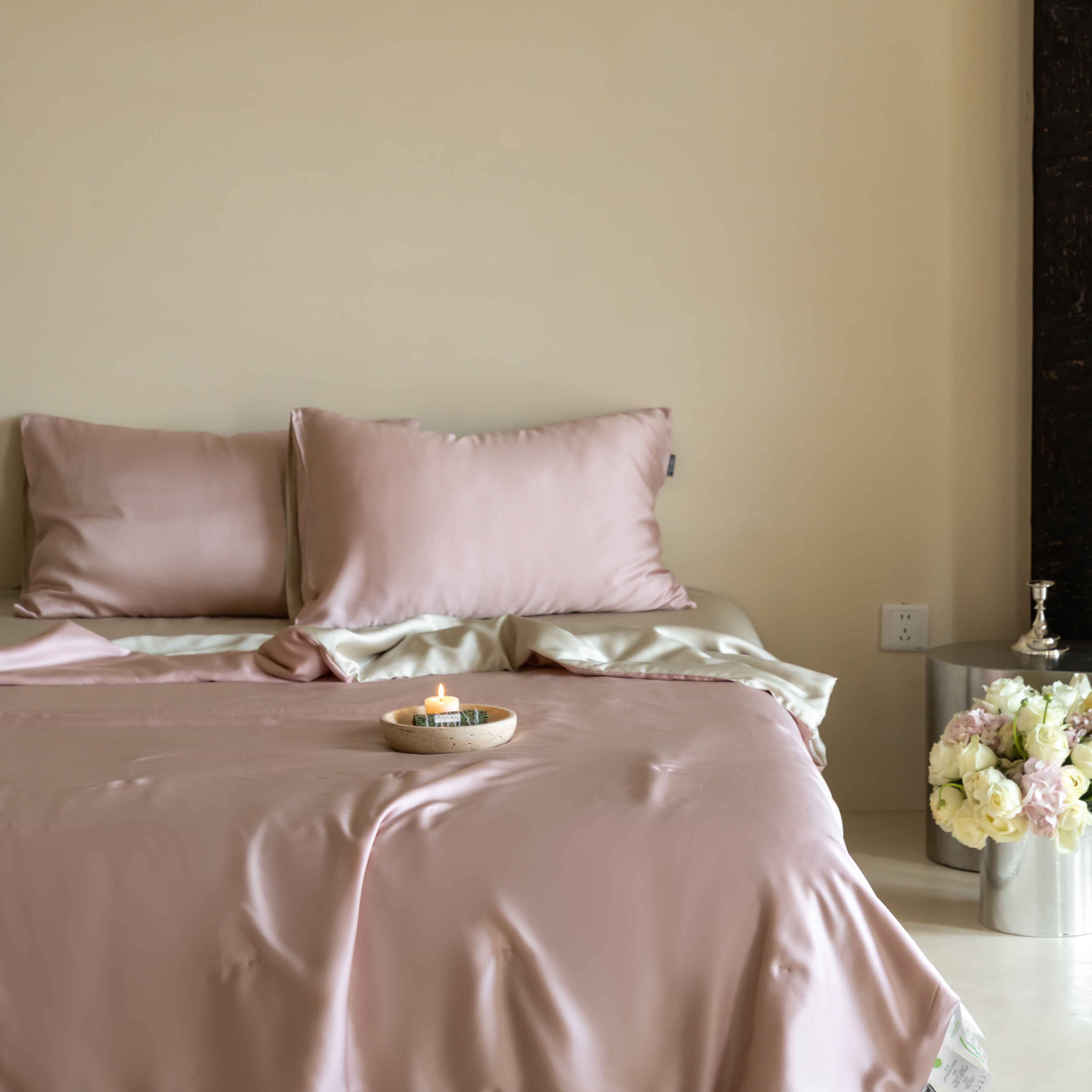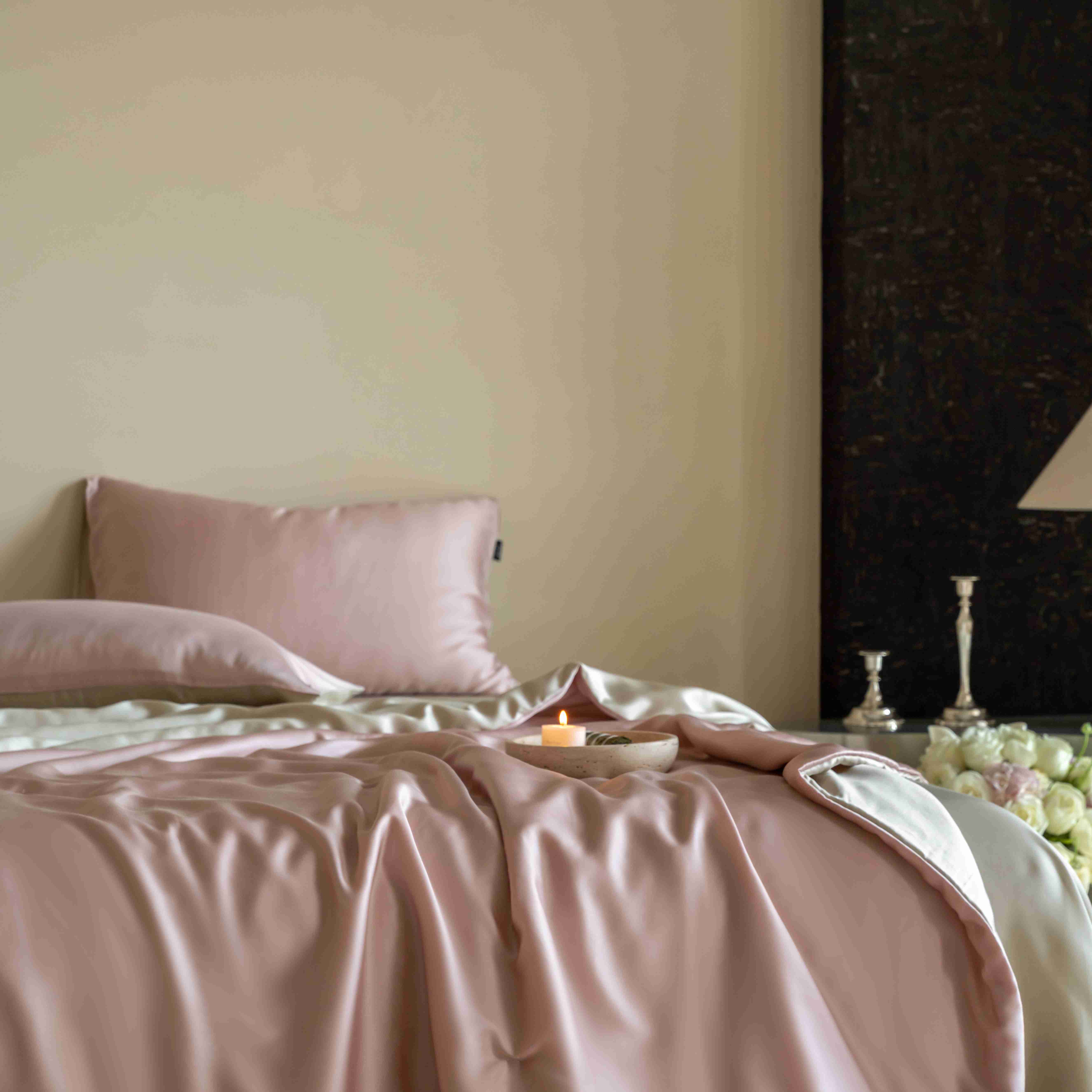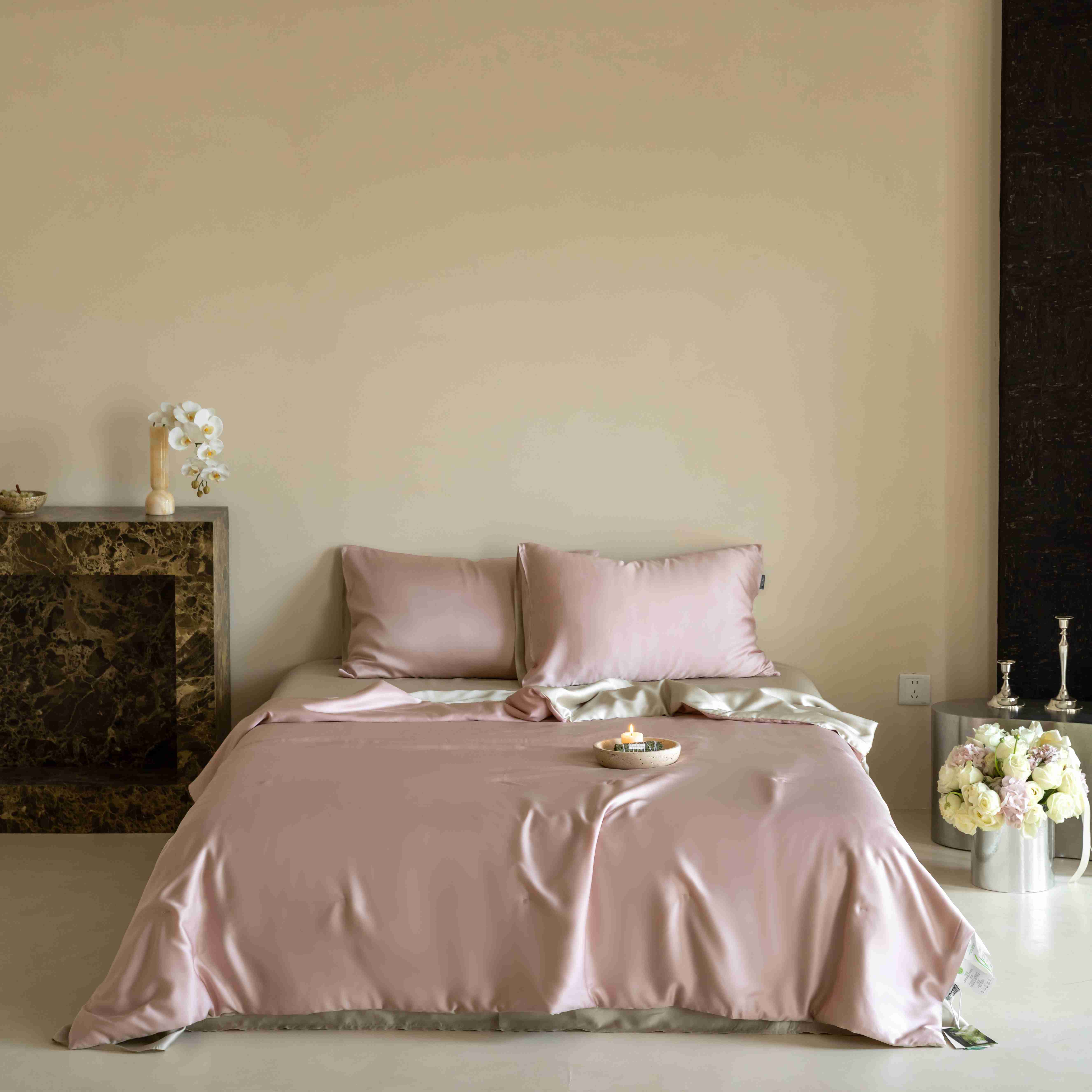 玉宇阁家居 2025天丝拼色夏被四件套 裸粉香槟