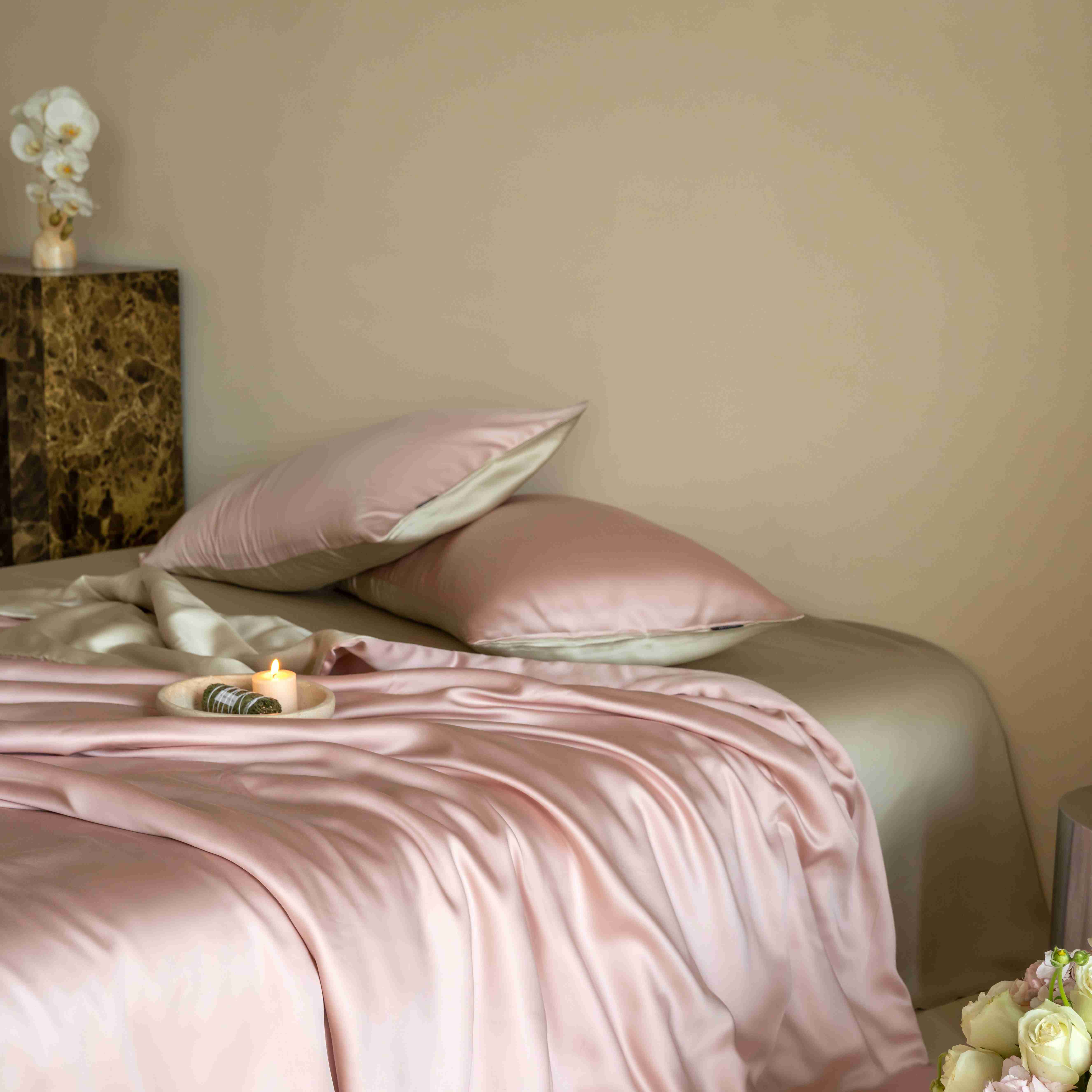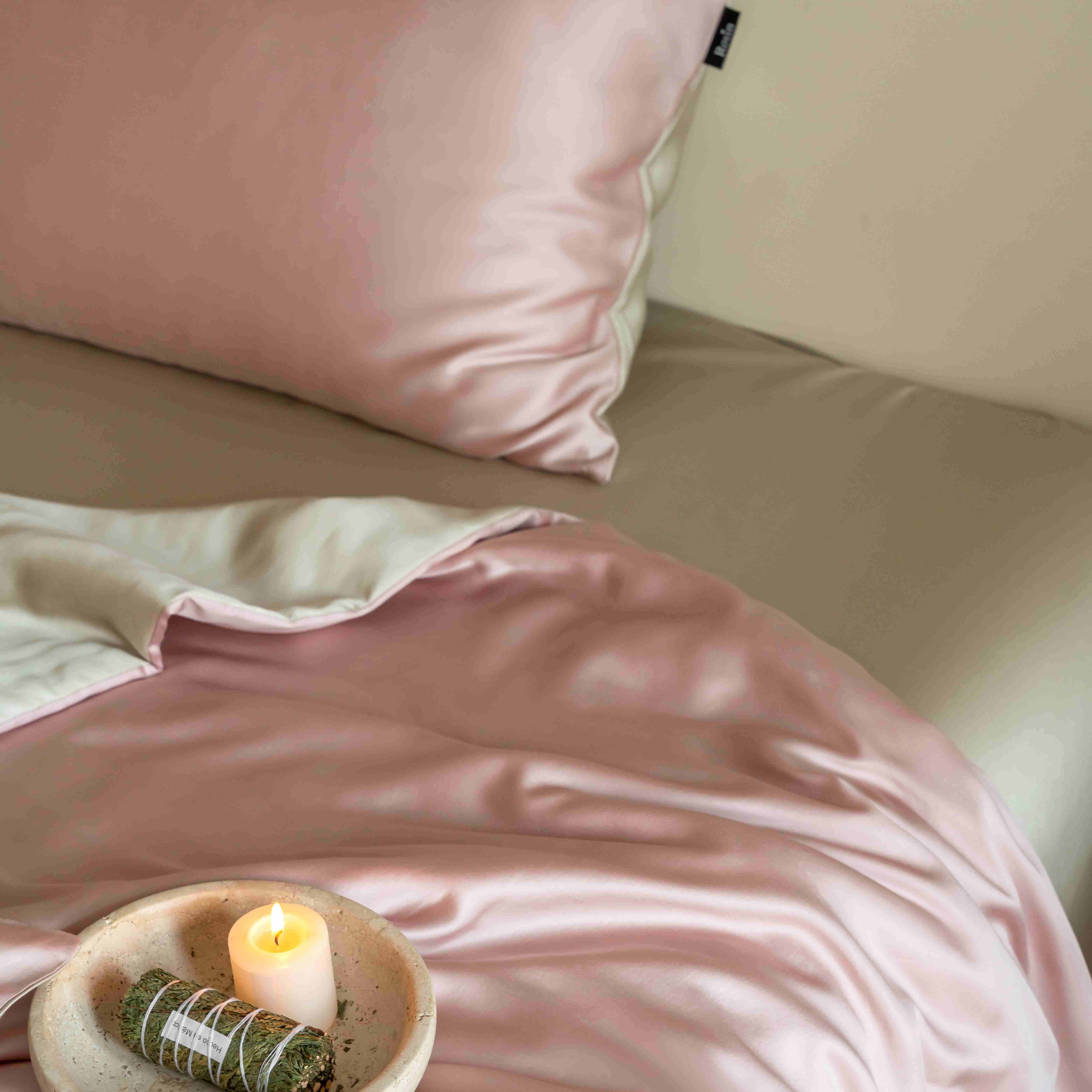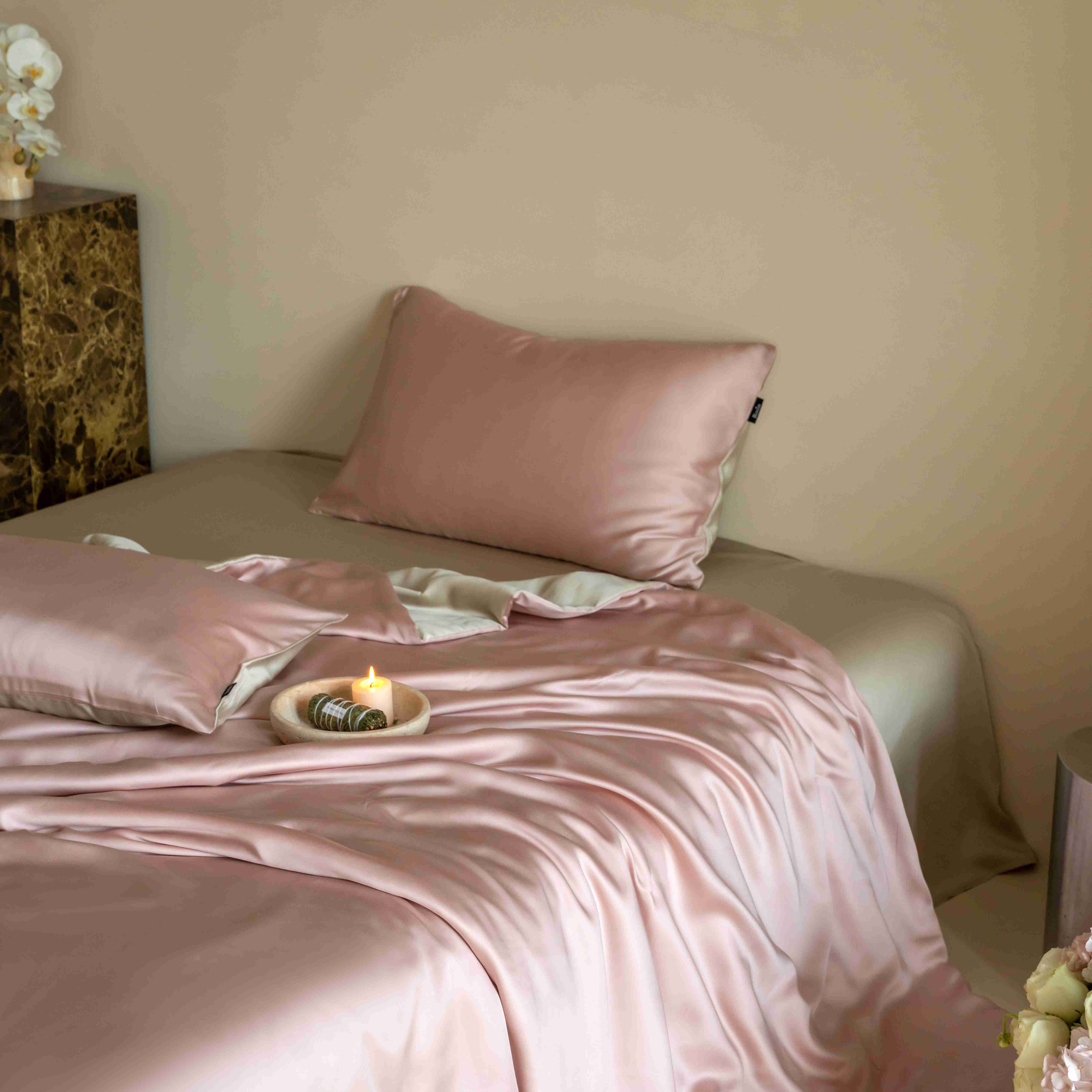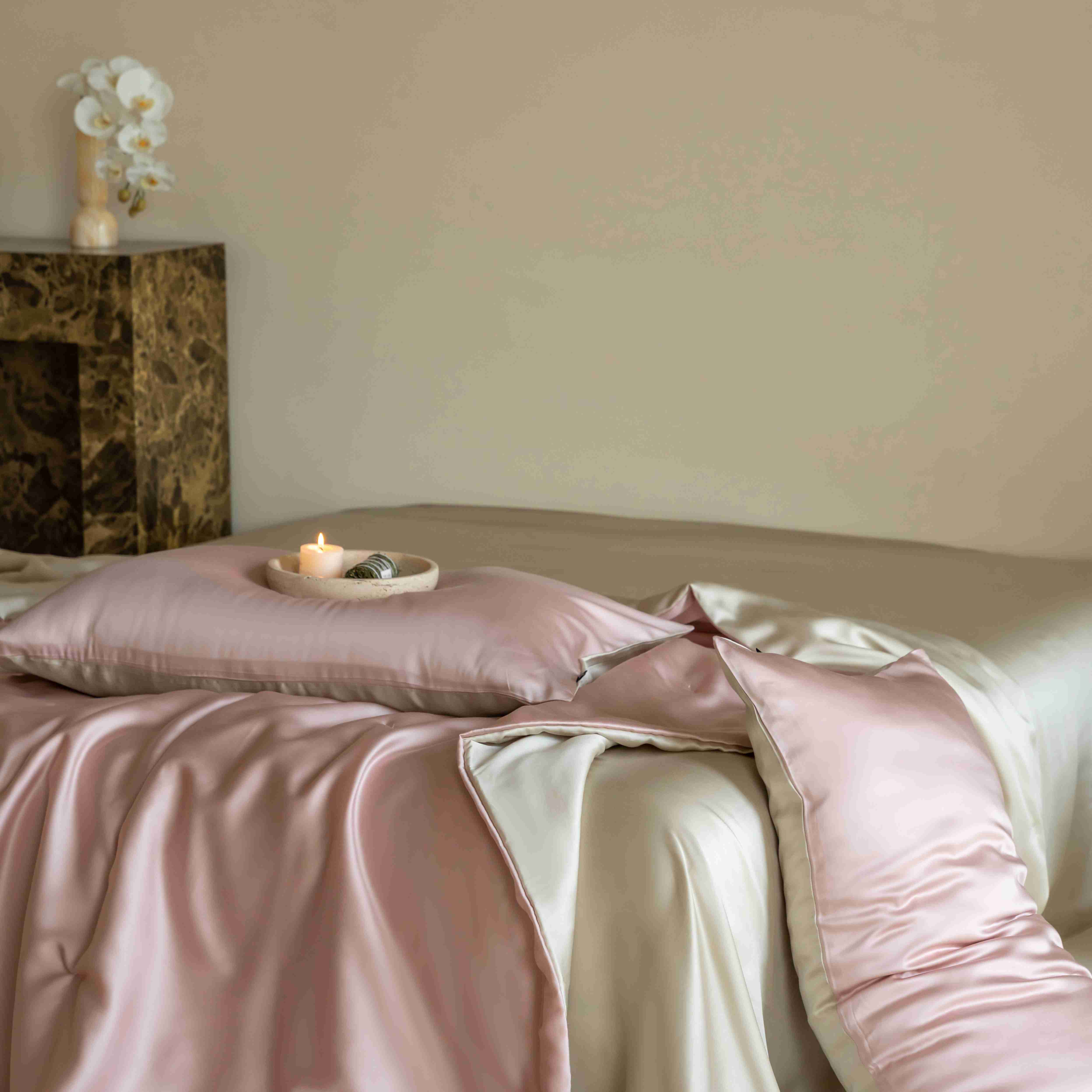玉宇阁家居 2025天丝拼色夏被四件套 裸粉香槟