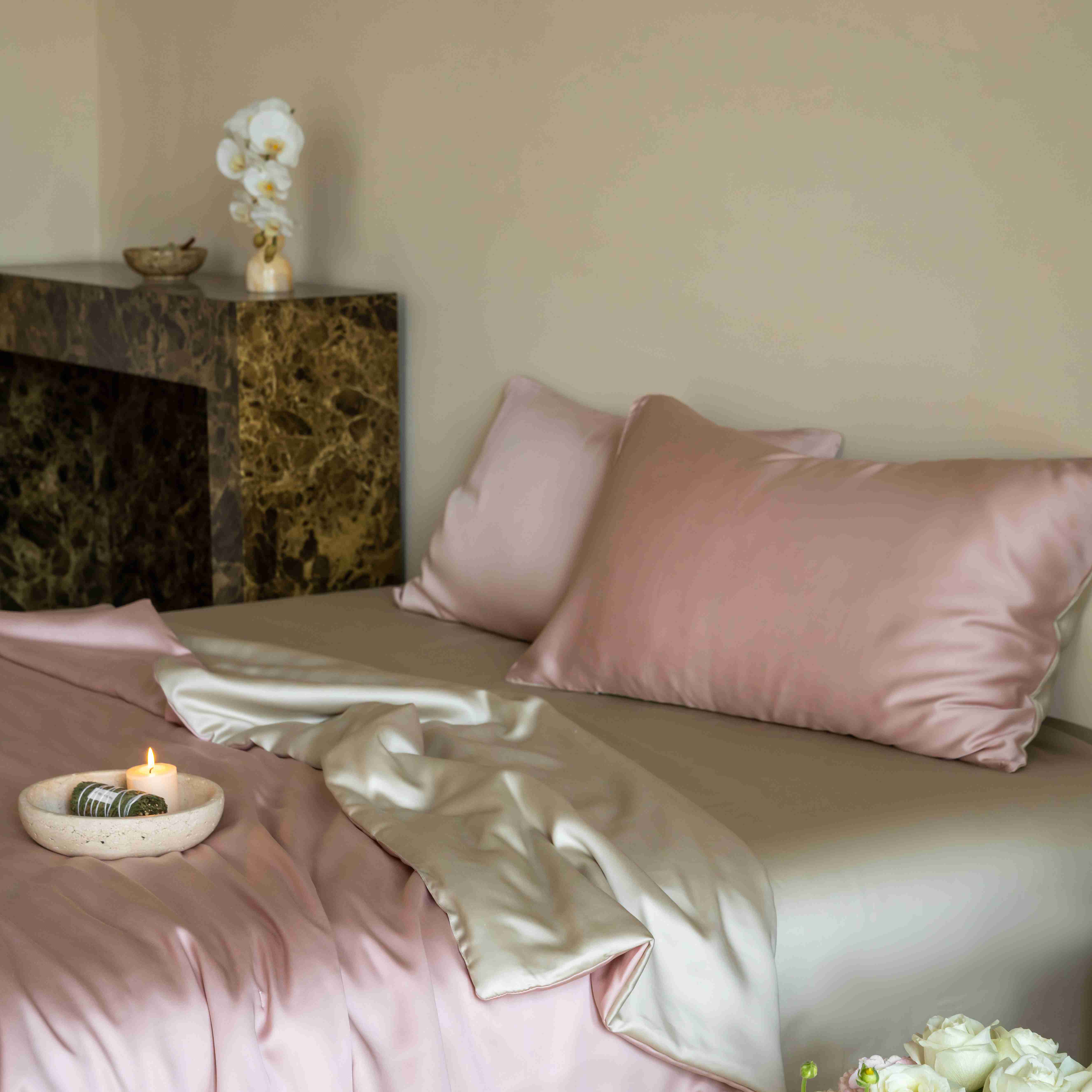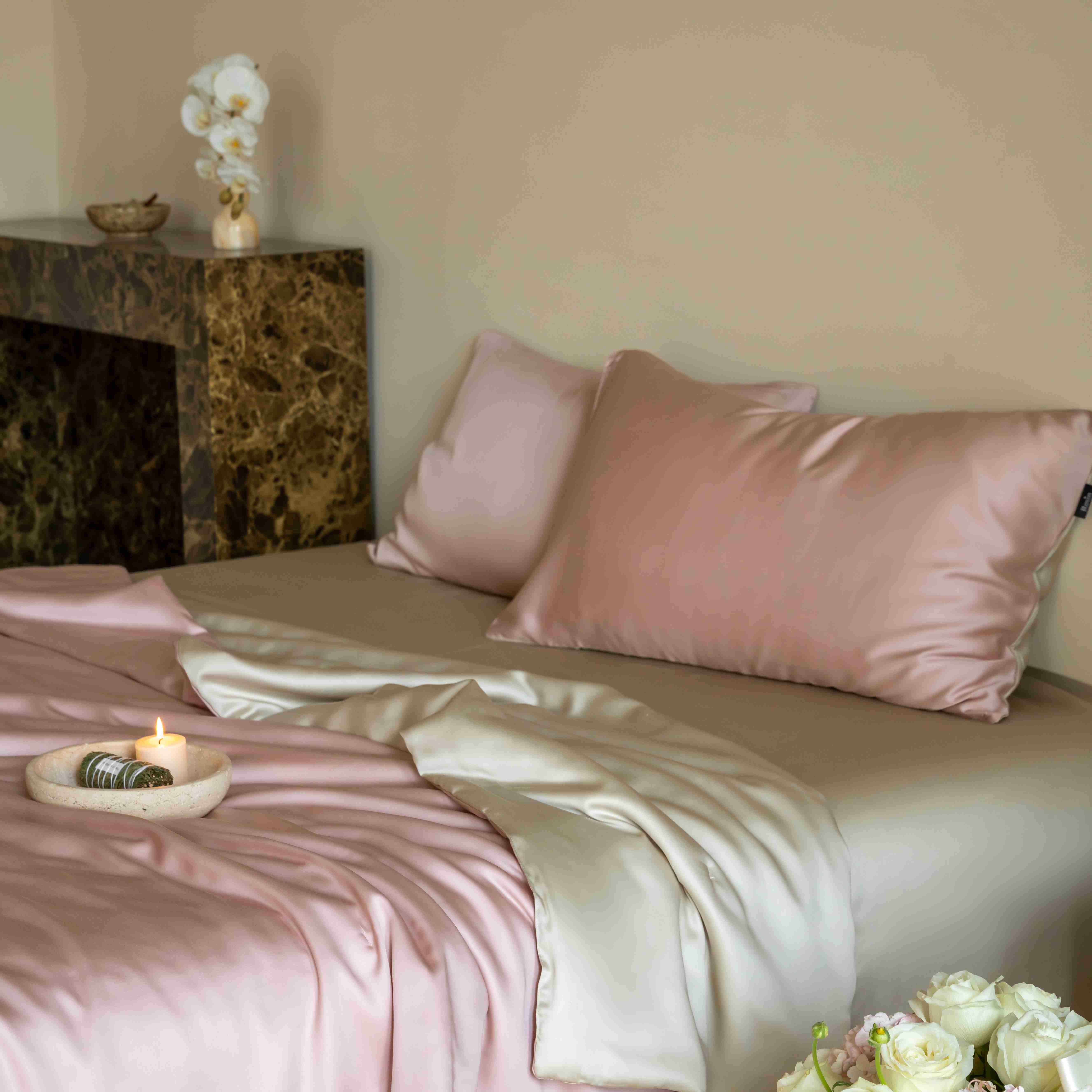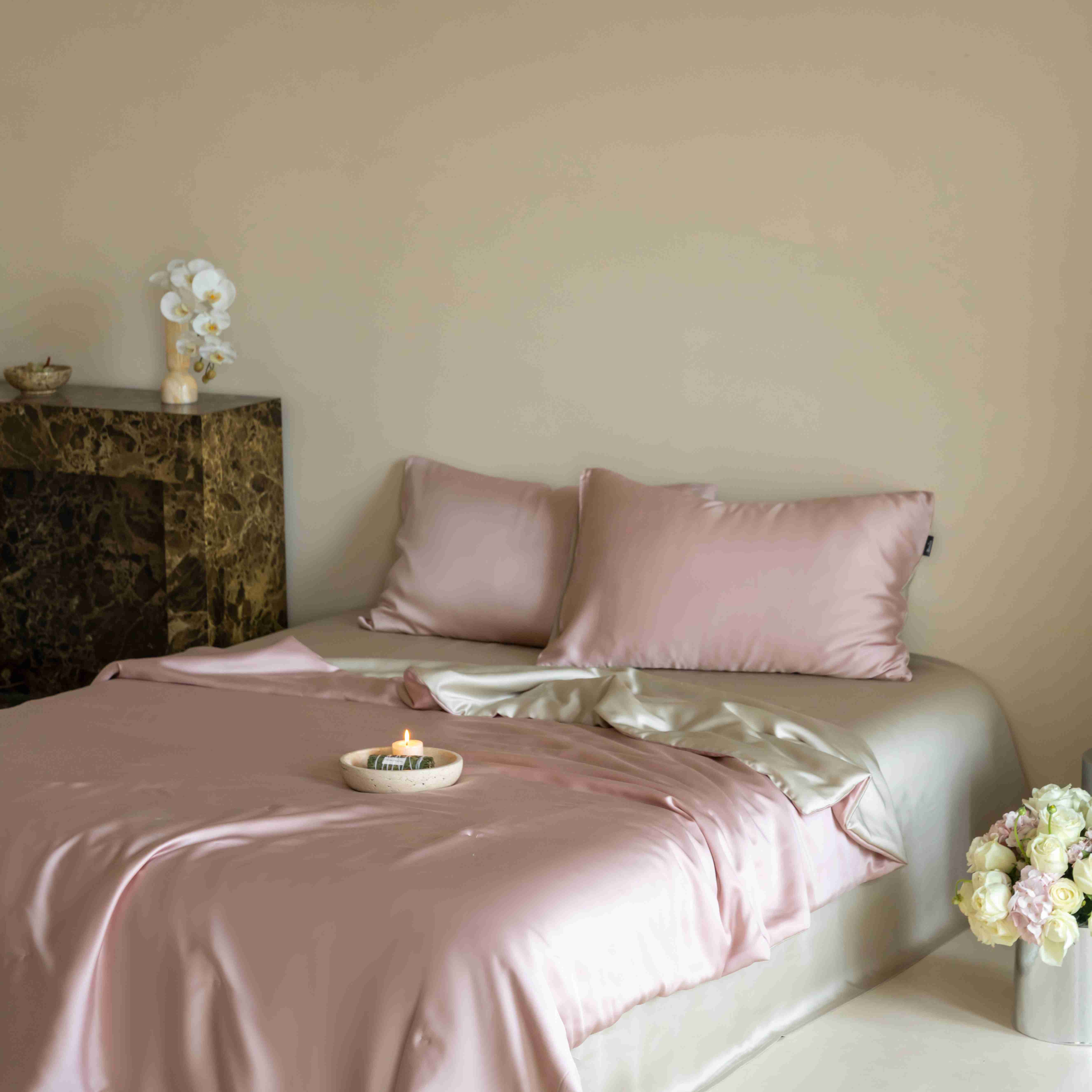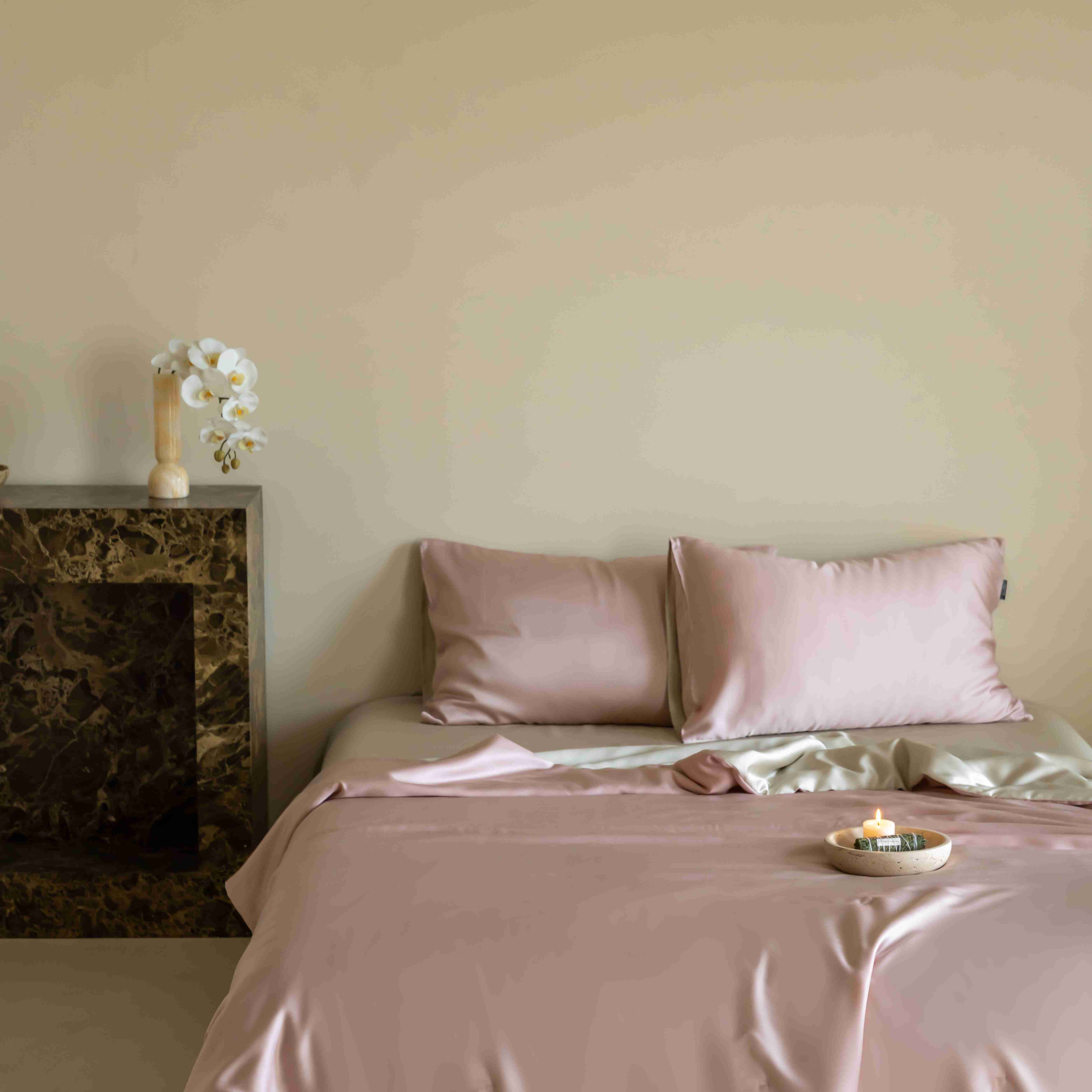 玉宇阁家居 2025天丝拼色夏被四件套 裸粉香槟