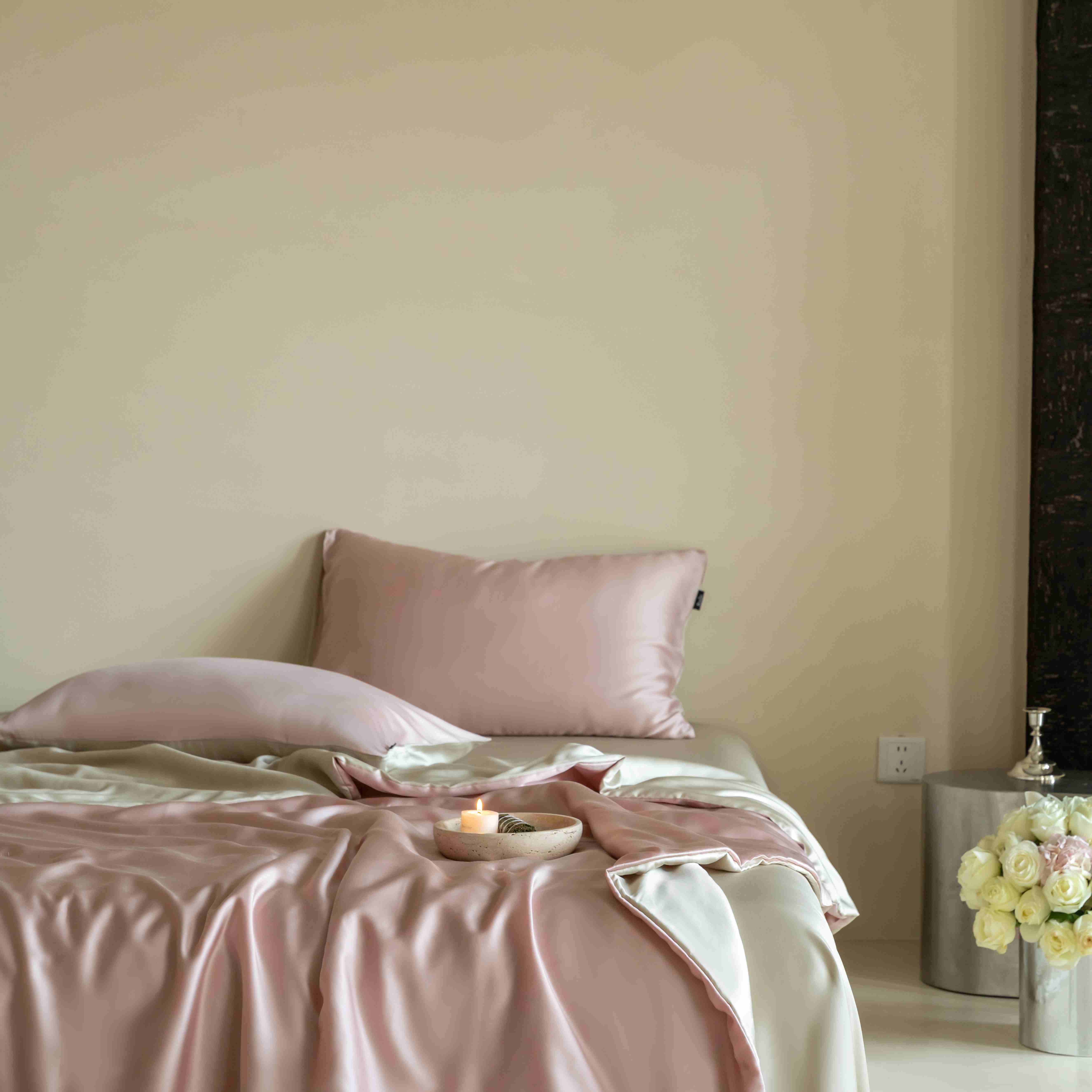 商品名称:玉宇阁家居 2025天丝拼色夏被四件套 裸粉香槟