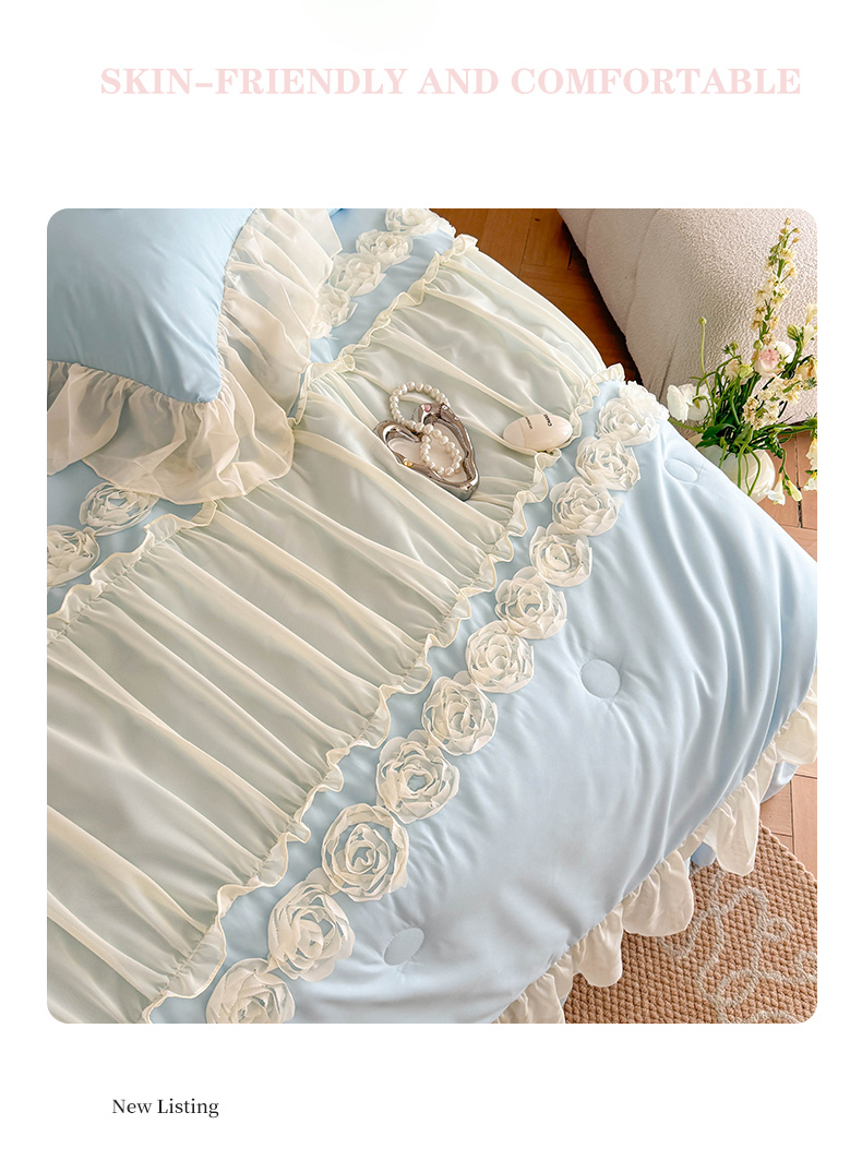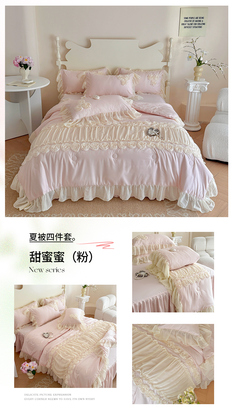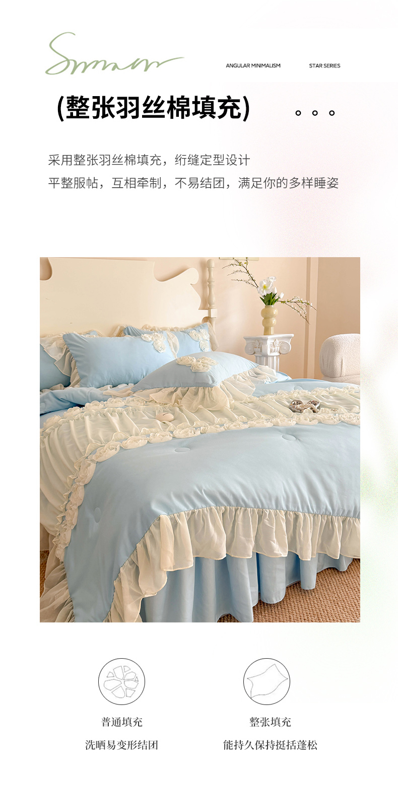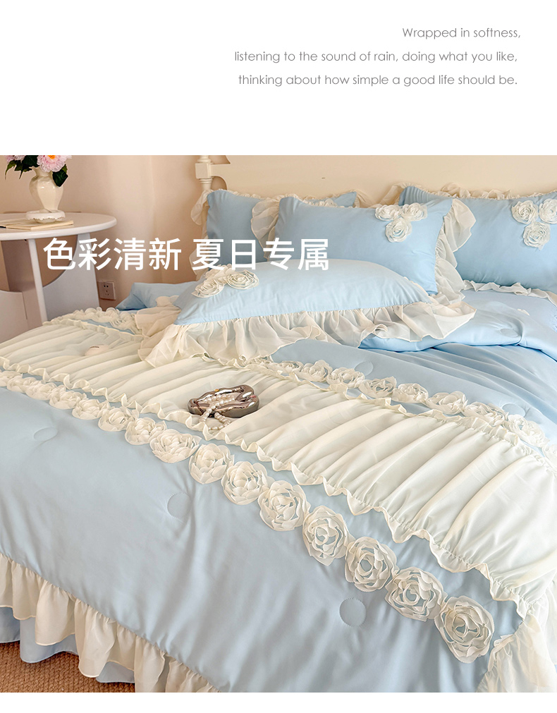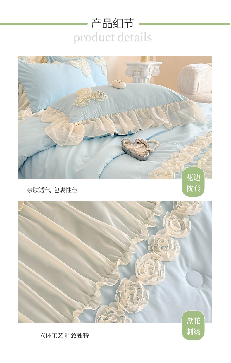 当前位置: 91家纺网 > 商品网购 > 床品套件 > 四件套 > 夏被四件套 > 富盛家纺 2025新款水洗亲肤棉盘花特种刺绣夏被夏凉被空调被床裙款四件套 甜蜜蜜-蓝