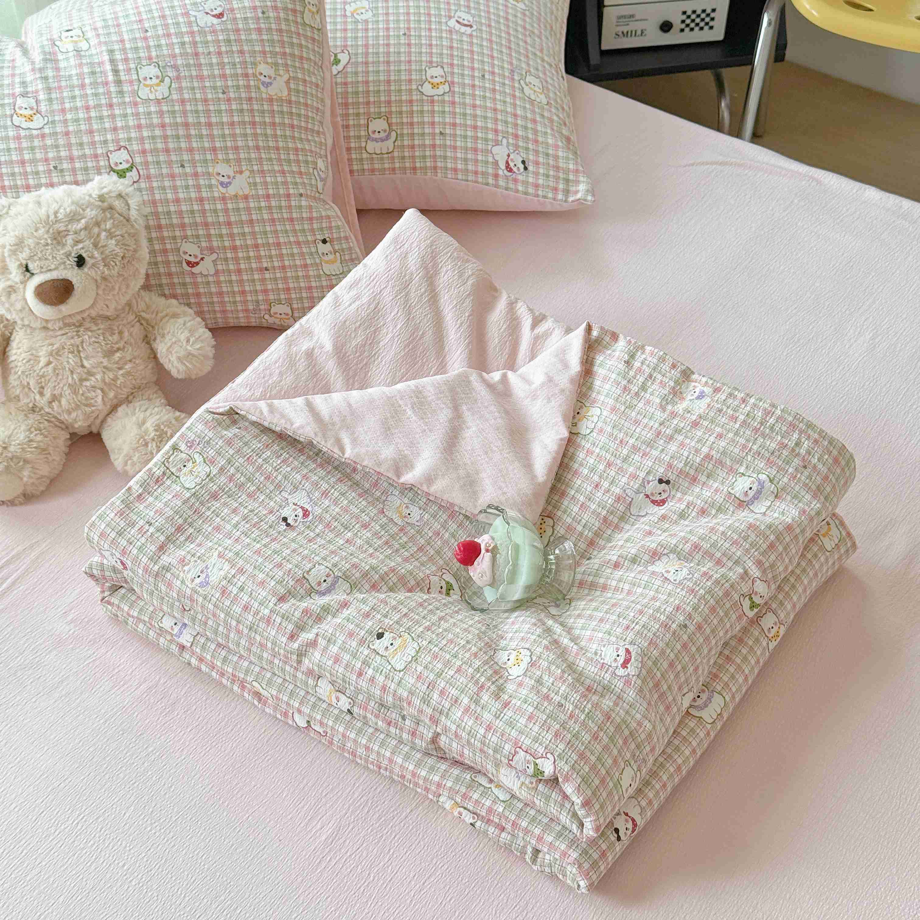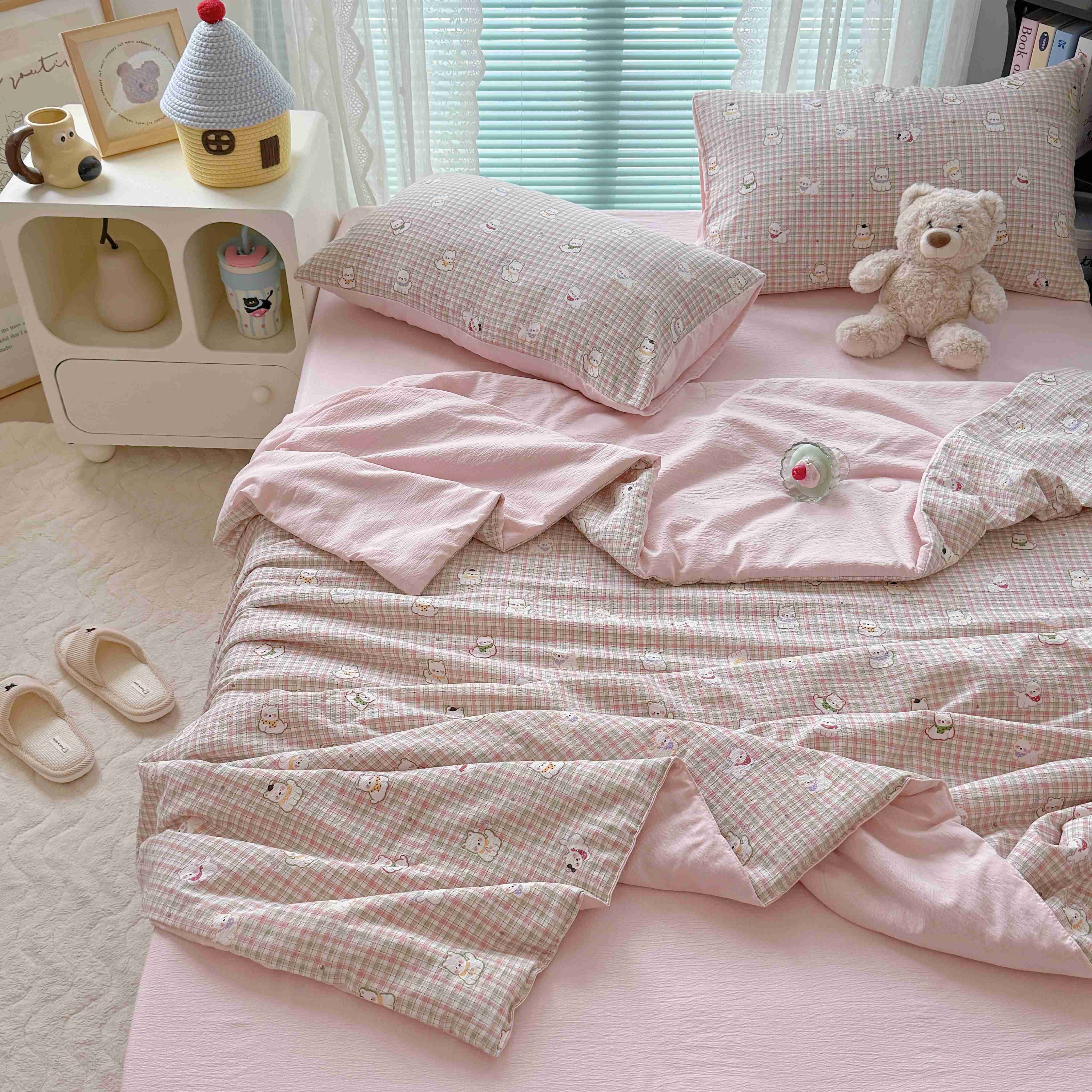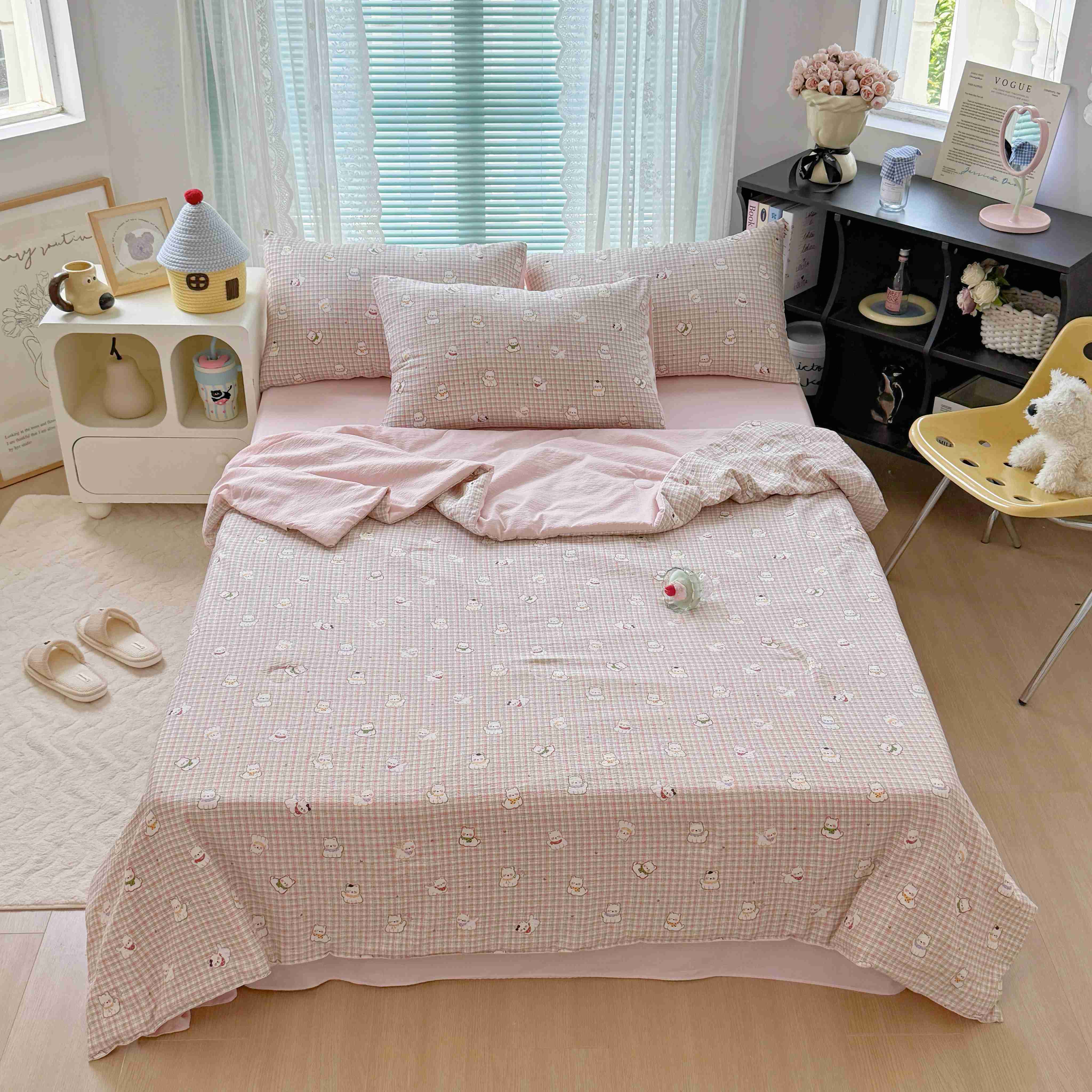 商品名称:暖伊家居 2025新款云感双层纱夏被四件套 呆萌西高地