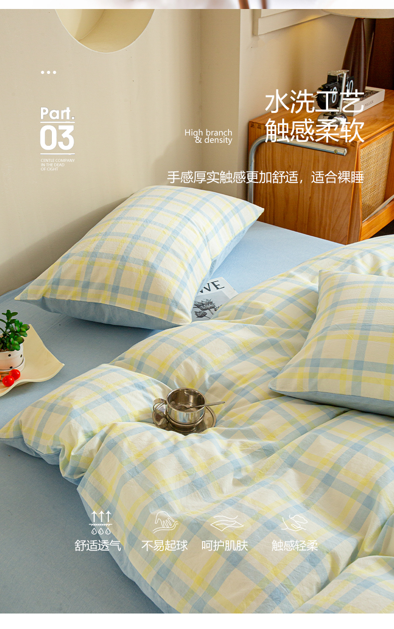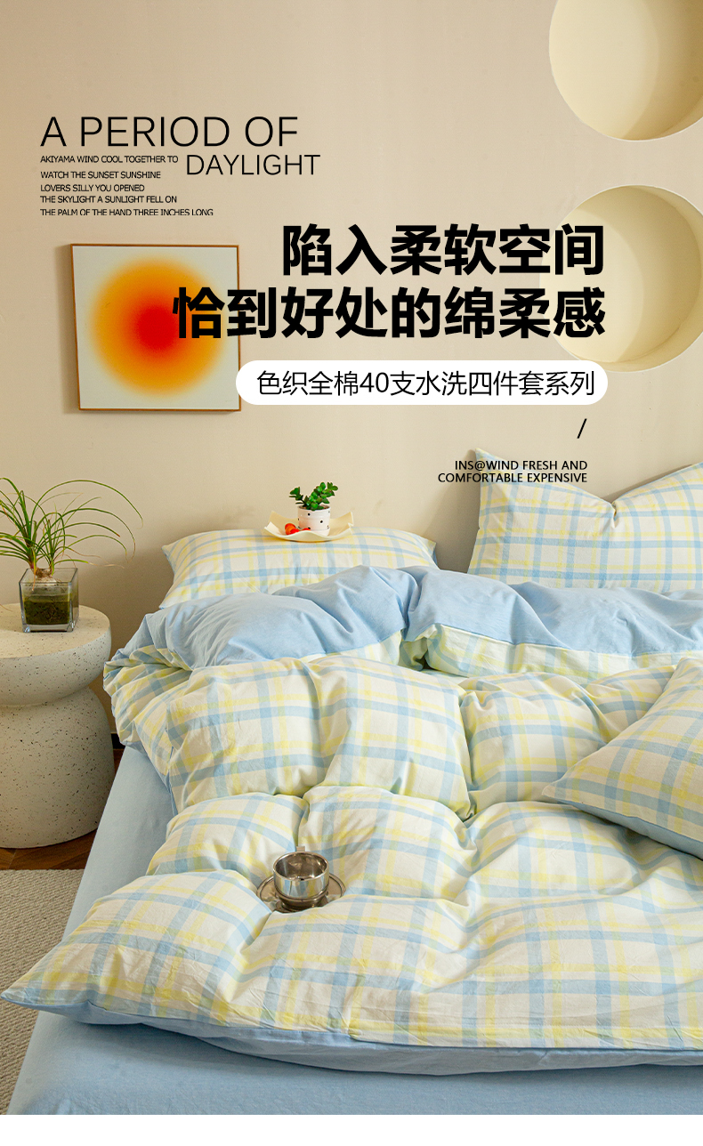 优米家纺 2025新款色织全棉纯棉40支水洗四件套及床单系列-四件套 欢乐歌兰