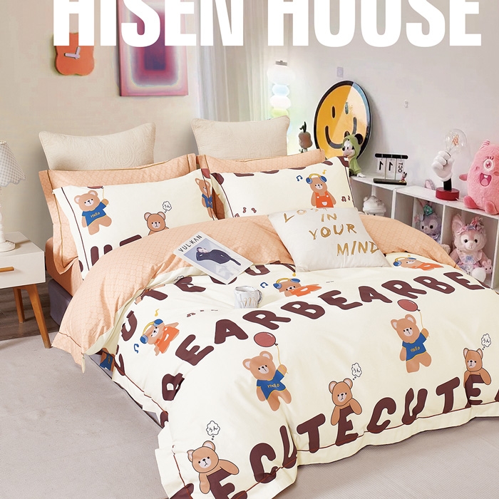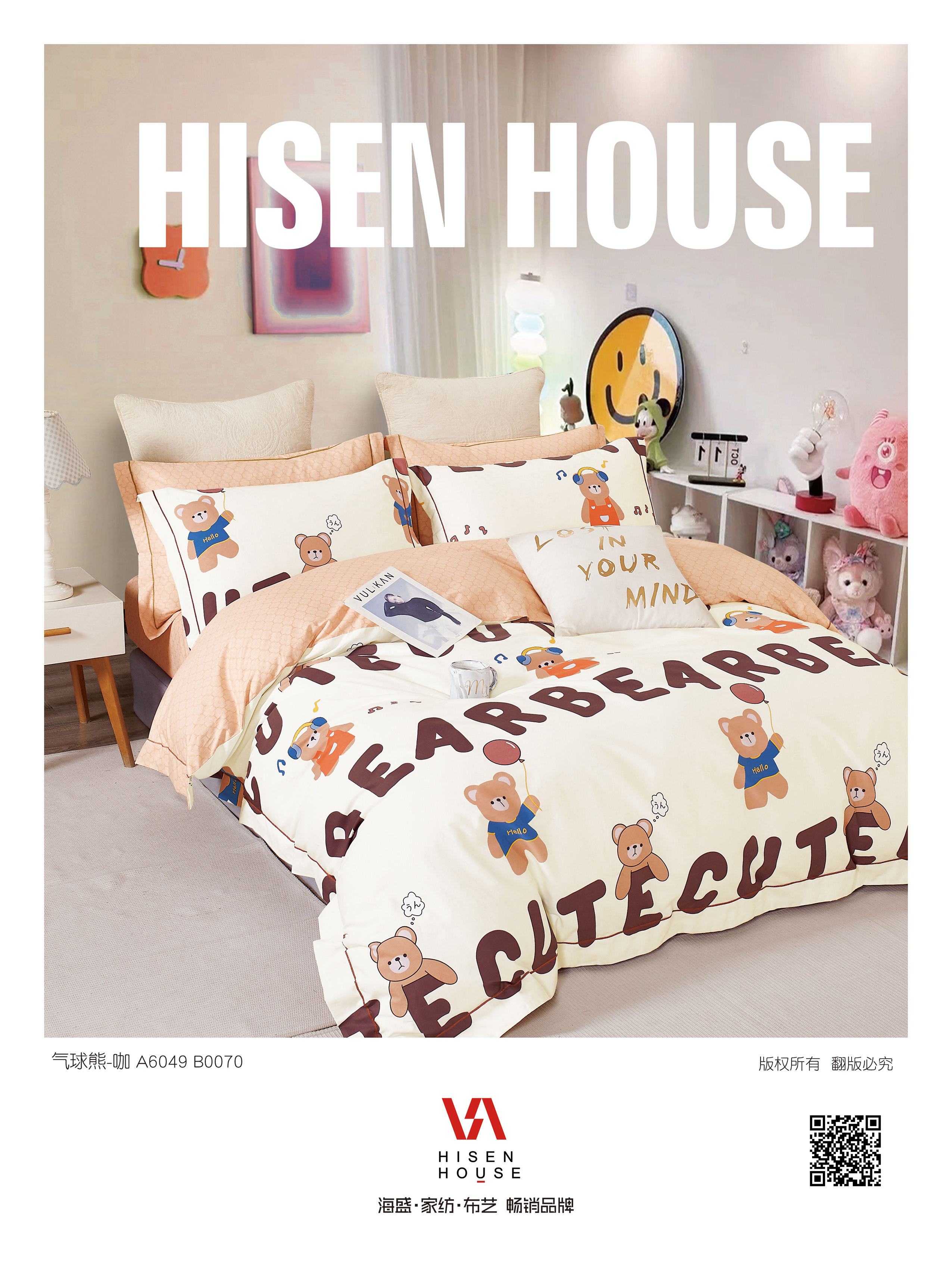 海盛 2025新款套件面料全棉13376印花系列 气球熊-咖