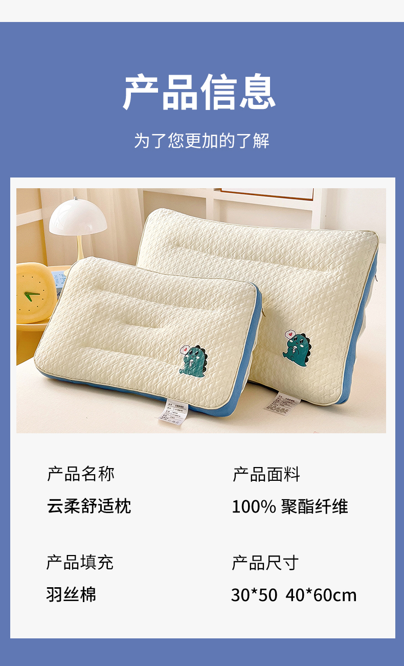 商品名称:(总)乐秀家纺 2025新款儿童卡通云柔舒适枕芯幼儿园午睡枕头枕芯