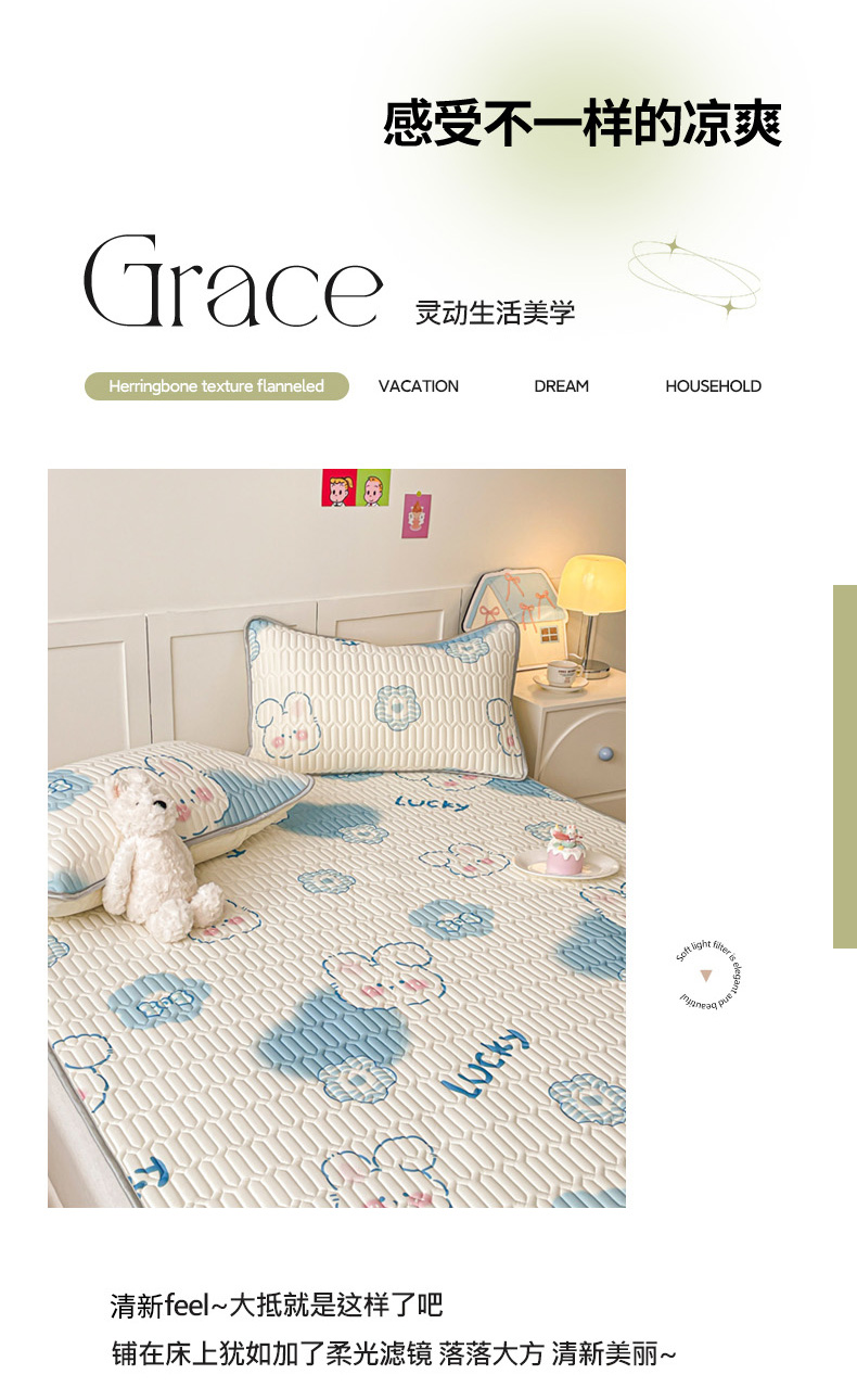 沐慕 2025新款高克重小清新乳胶凉席-风格一 碎花小猫