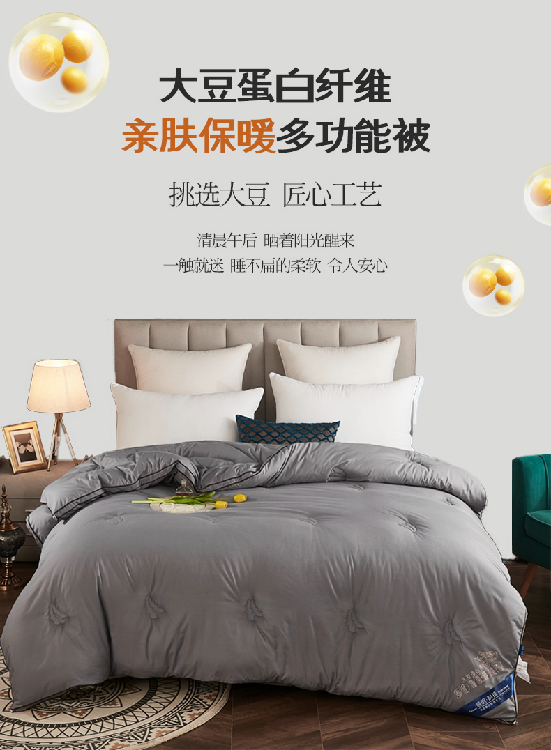 • 91家纺网 家纺一手货源 找家纺 啊雅家居 2025新款立体正宗大豆纤维被 天使灰
