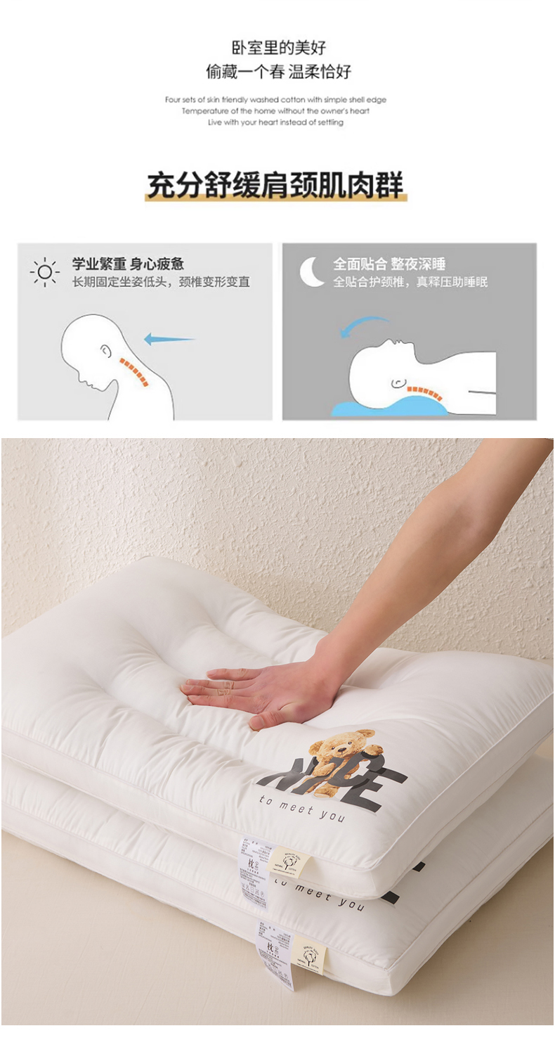 (总)大熊枕芯 2025新款全棉纯棉小熊亲子护颈款枕芯枕头