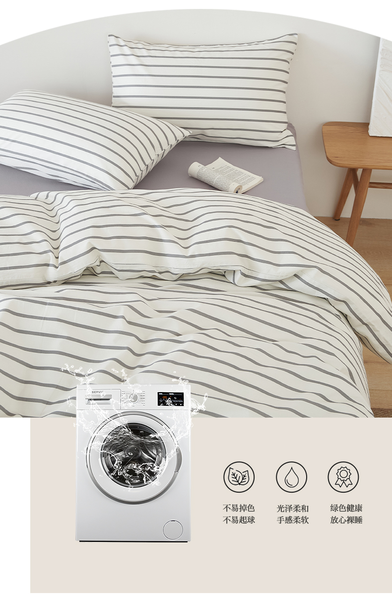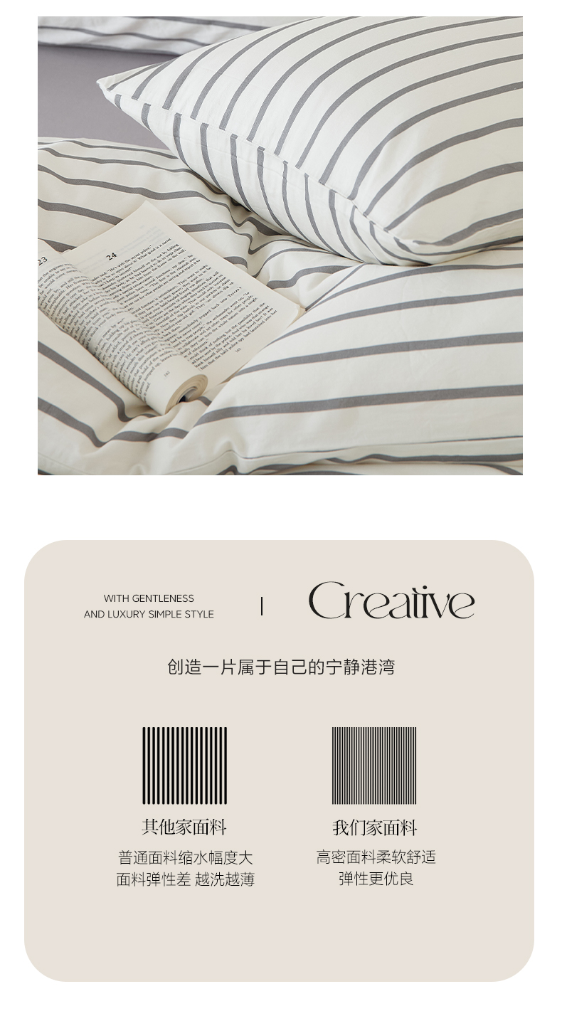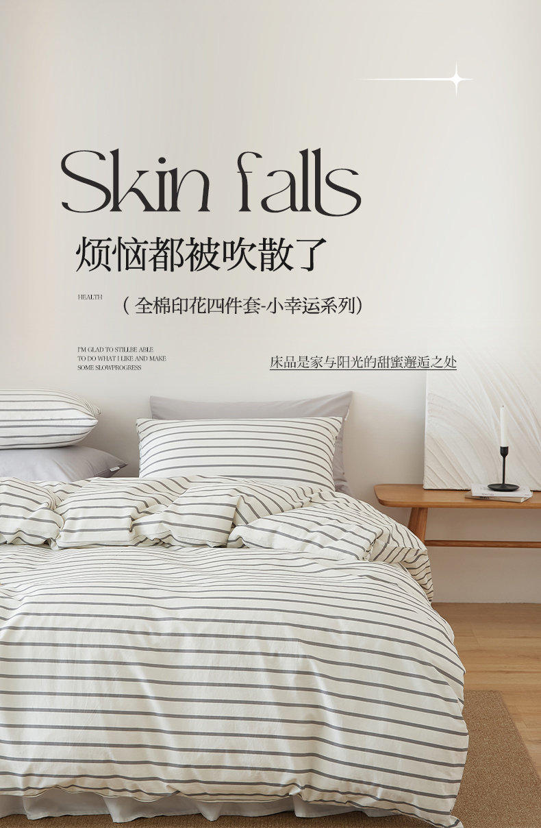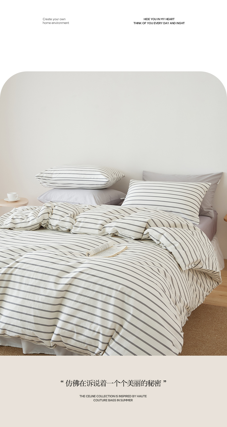 当前位置: 91家纺网 > 商品网购 > 床品套件 > 四件套 > 全棉普通四件套 > EH家居 2025春夏新款40s全棉纯棉印花四件套-小幸运 经典条纹
