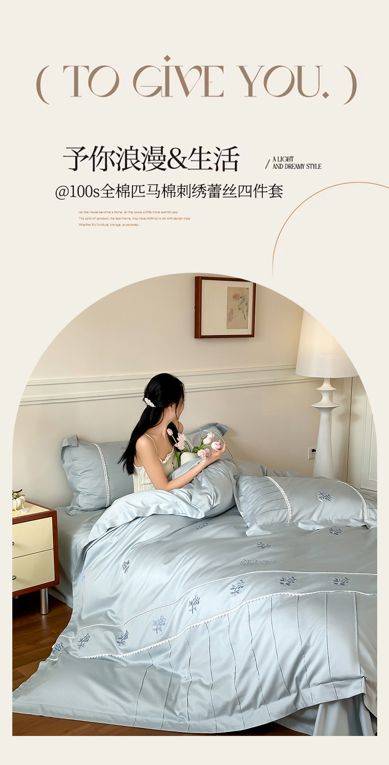 (总)红番天家居馆 2025新款全棉纯棉贡缎长绒棉手工捏折刺绣蕾丝四件套-觅春,觅春-夹心粉,觅春-午后清晨,觅春-云朵吐司