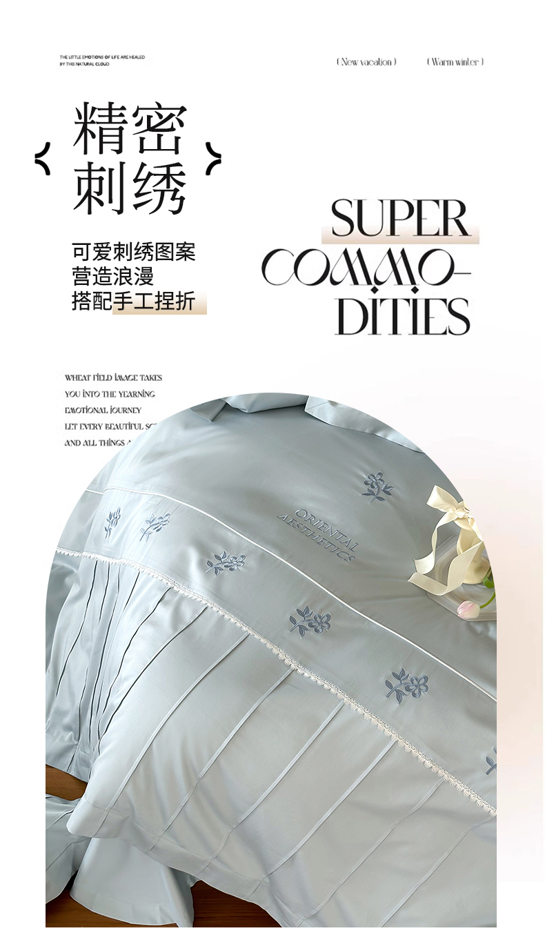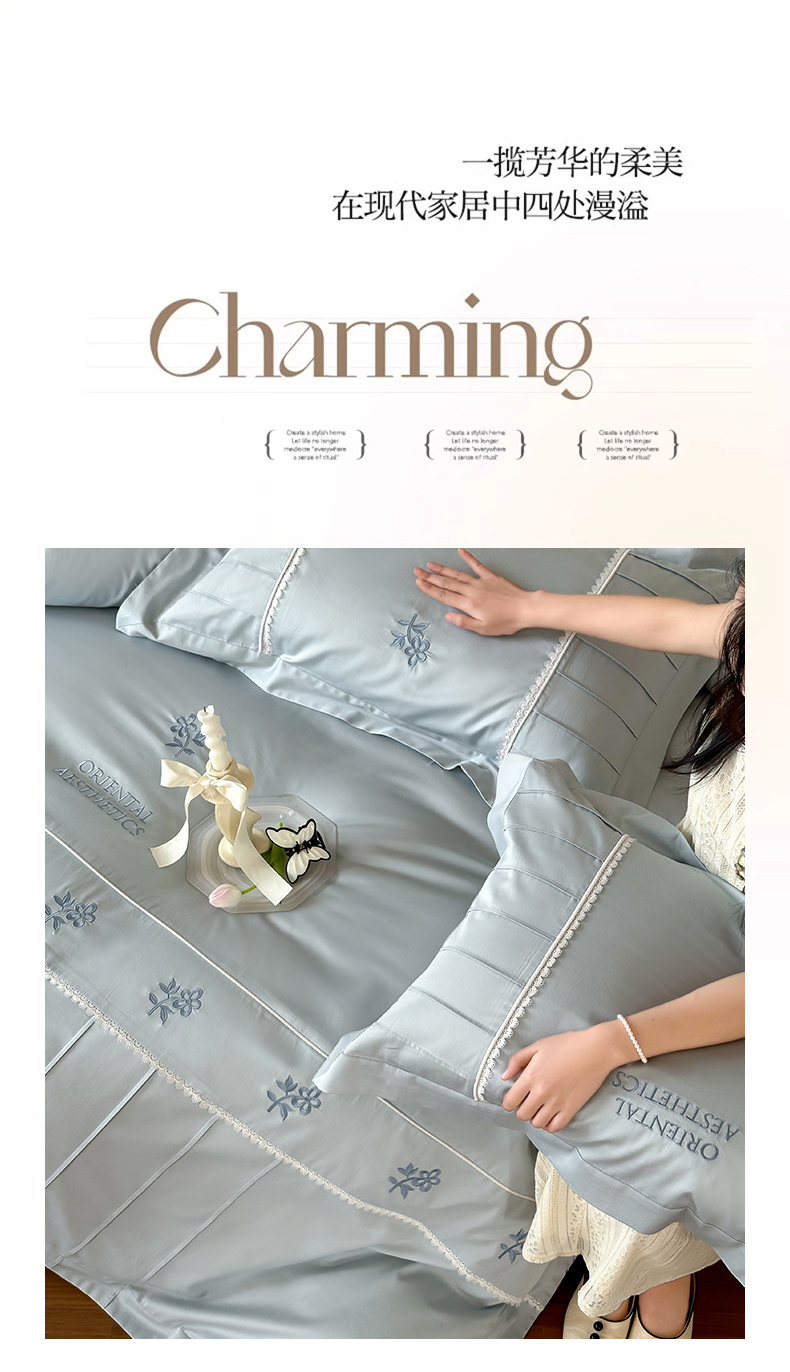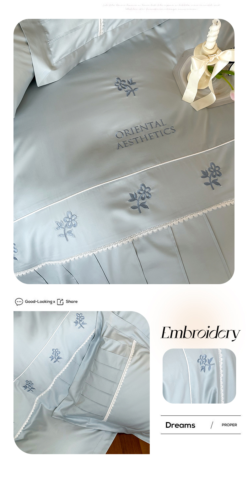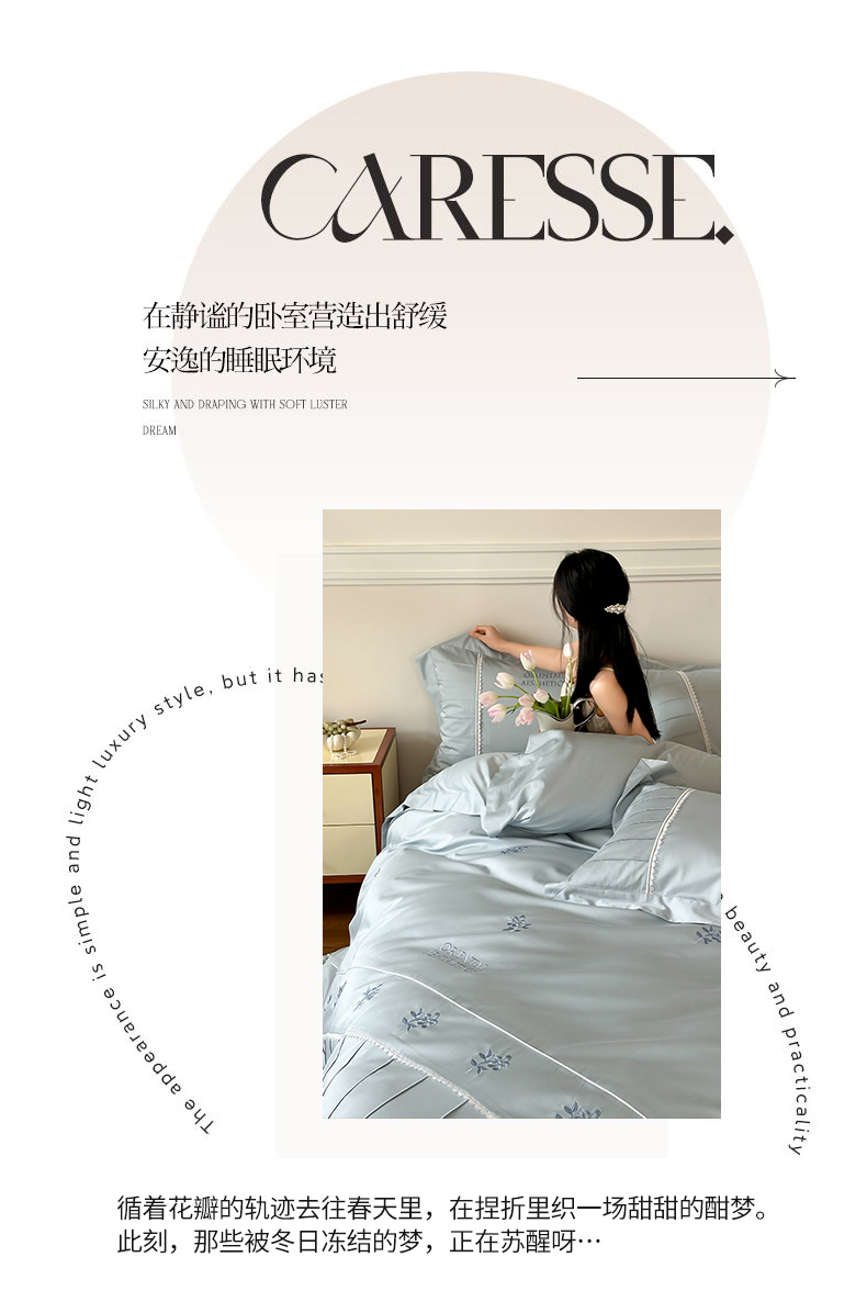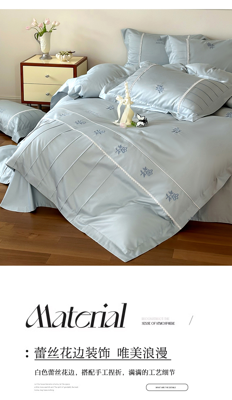 红番天家居馆 2025新款全棉纯棉贡缎长绒棉手工捏折刺绣蕾丝四件套-觅春 觅春-午后清晨